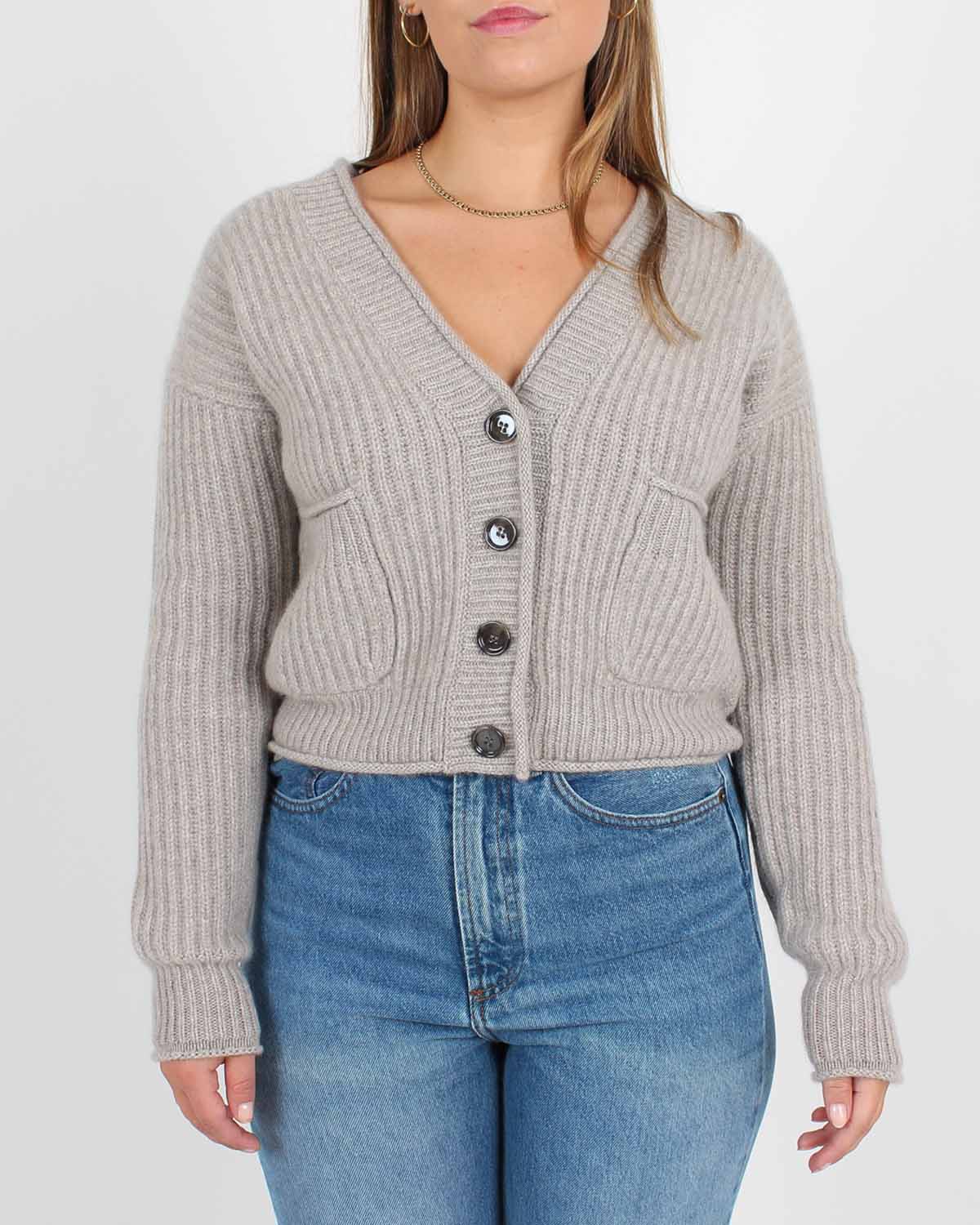V-cardigan fra Allude er laget av 100 % kashmir. Cardiganen er en middels vekt strikk og tilbyr en normal passform med lange ermer, V-hals og to lommer. Knappene gir cardiganen et stilig utseende.