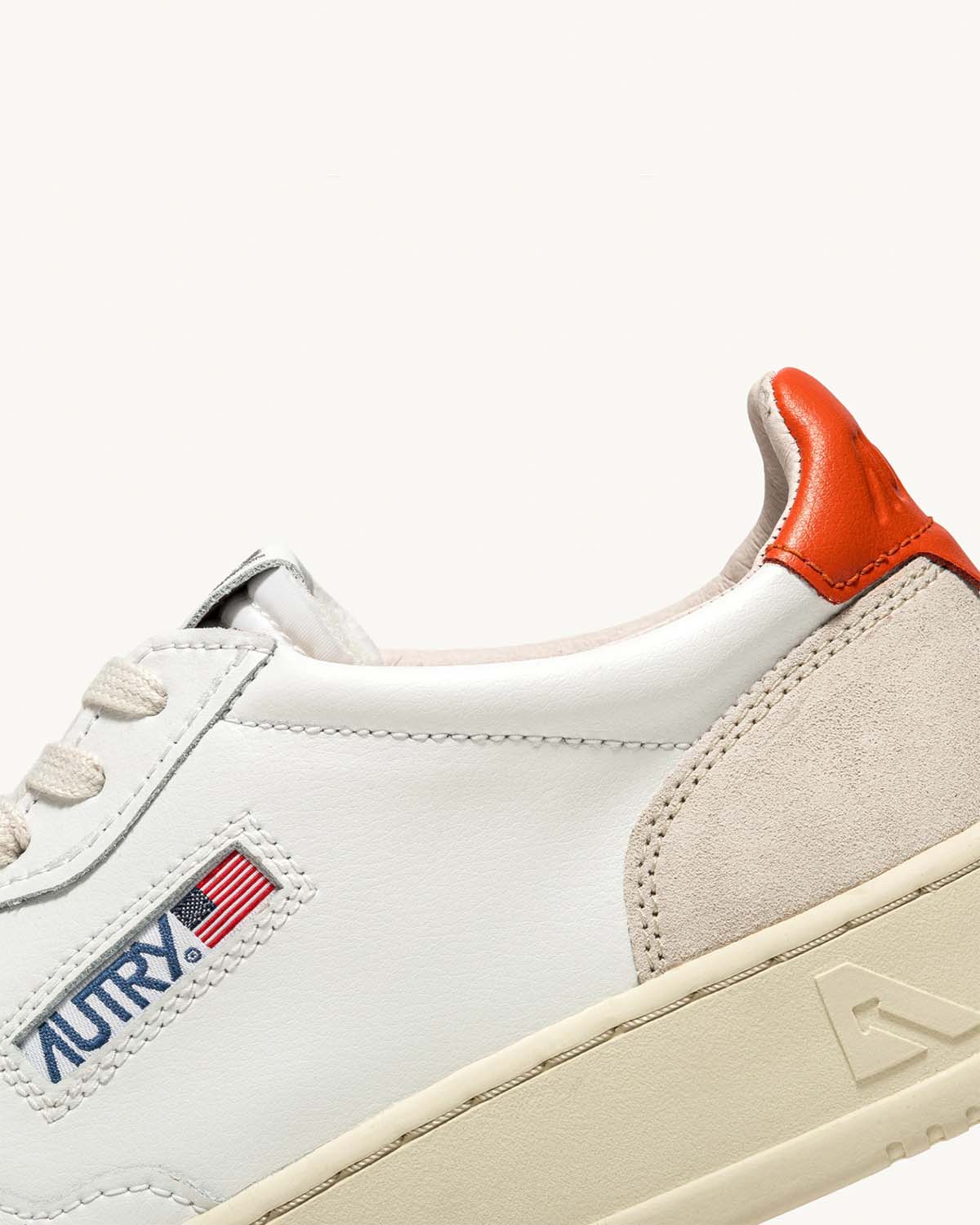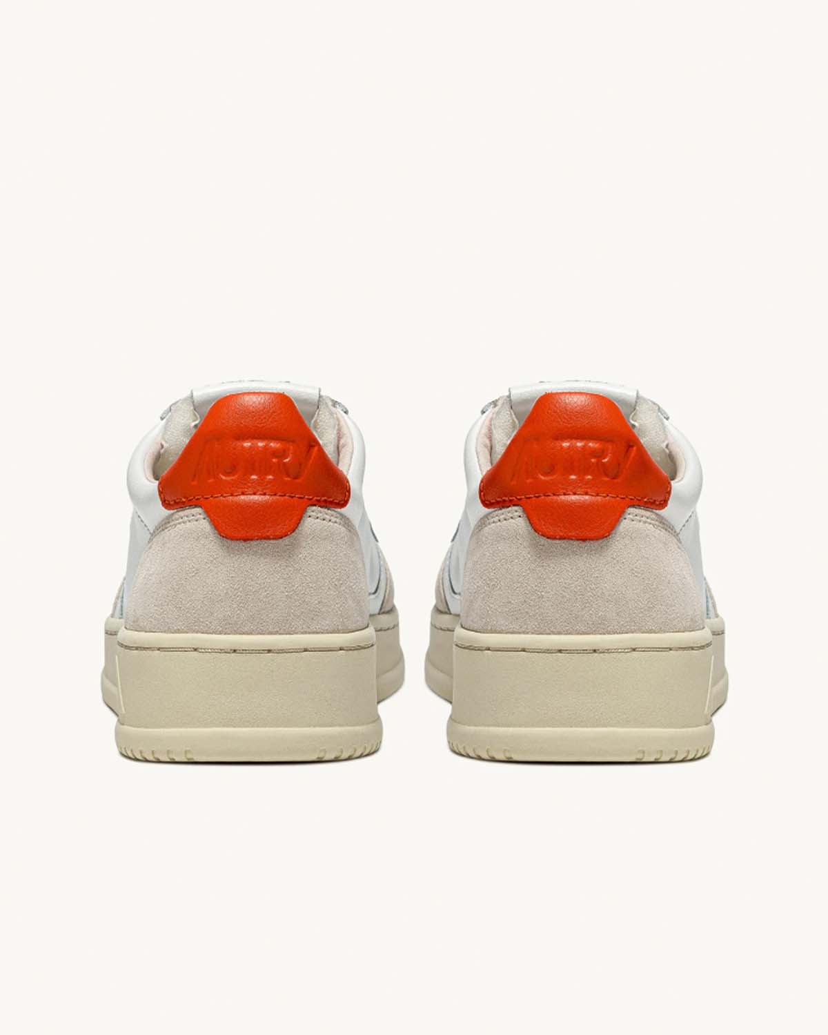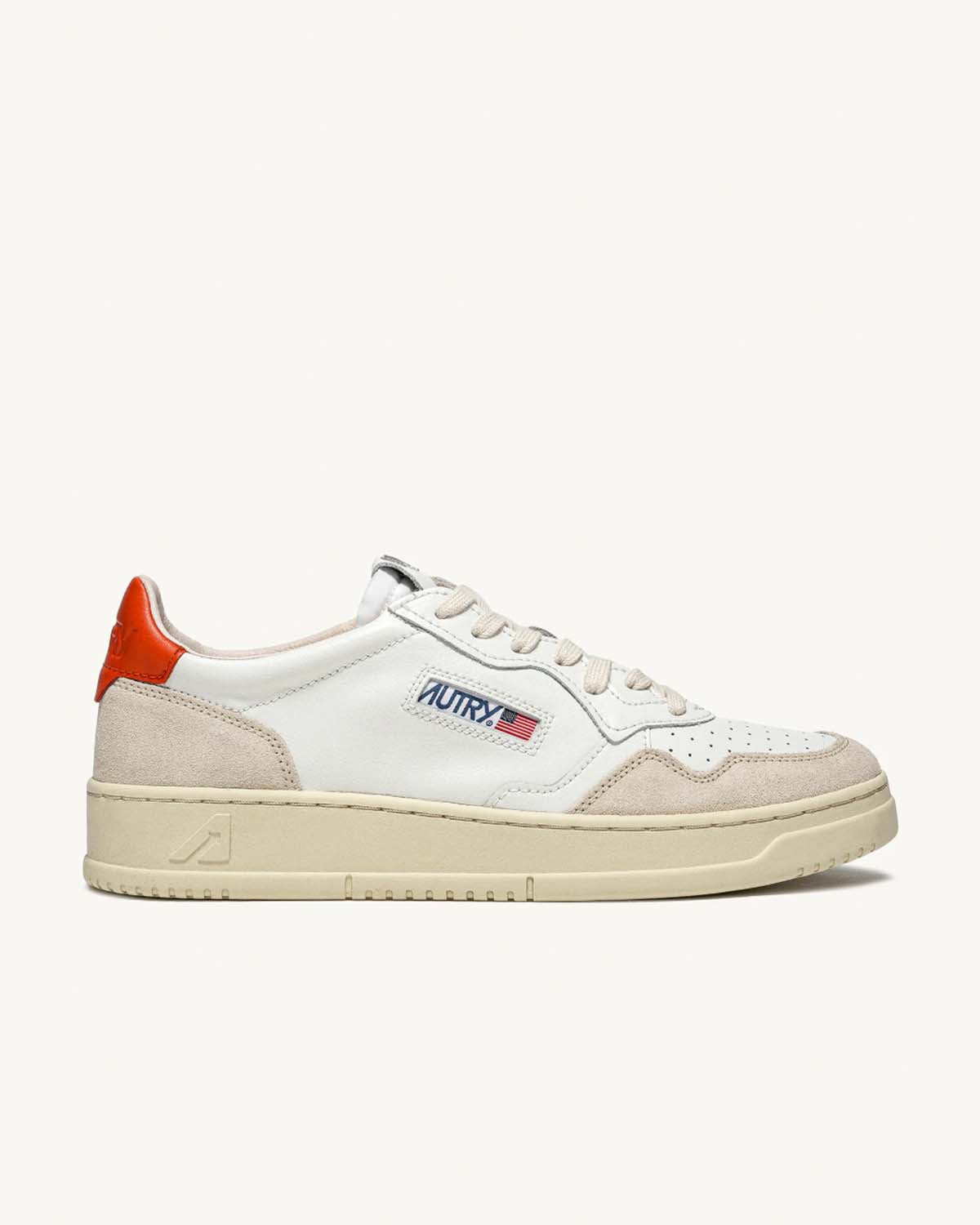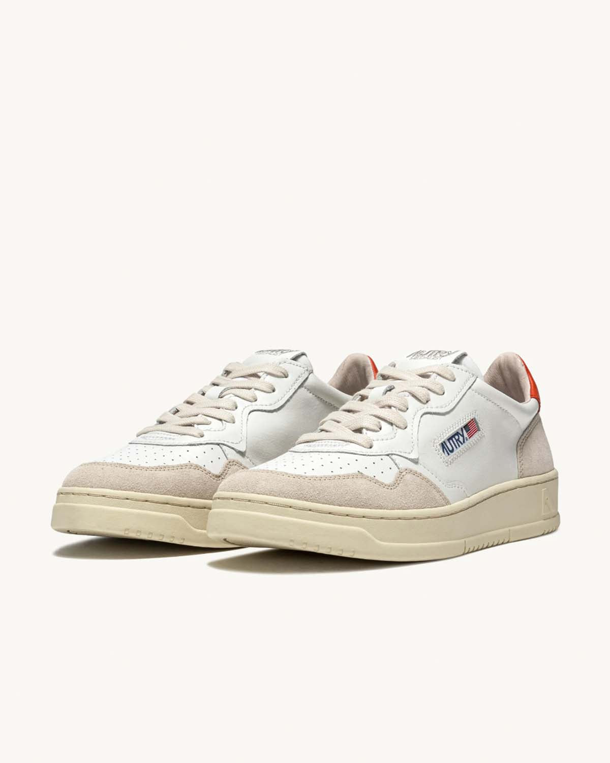 Hvite sneakers fra Autry. Medalist Low Man er inspirert av vintagedesignet fra 80-tallet, med en moderen vri. Et særegent design gjort unikt av overdelen i hvitt skinn med beige suede og den ikoniske logoen preget på en orange rygglapp.