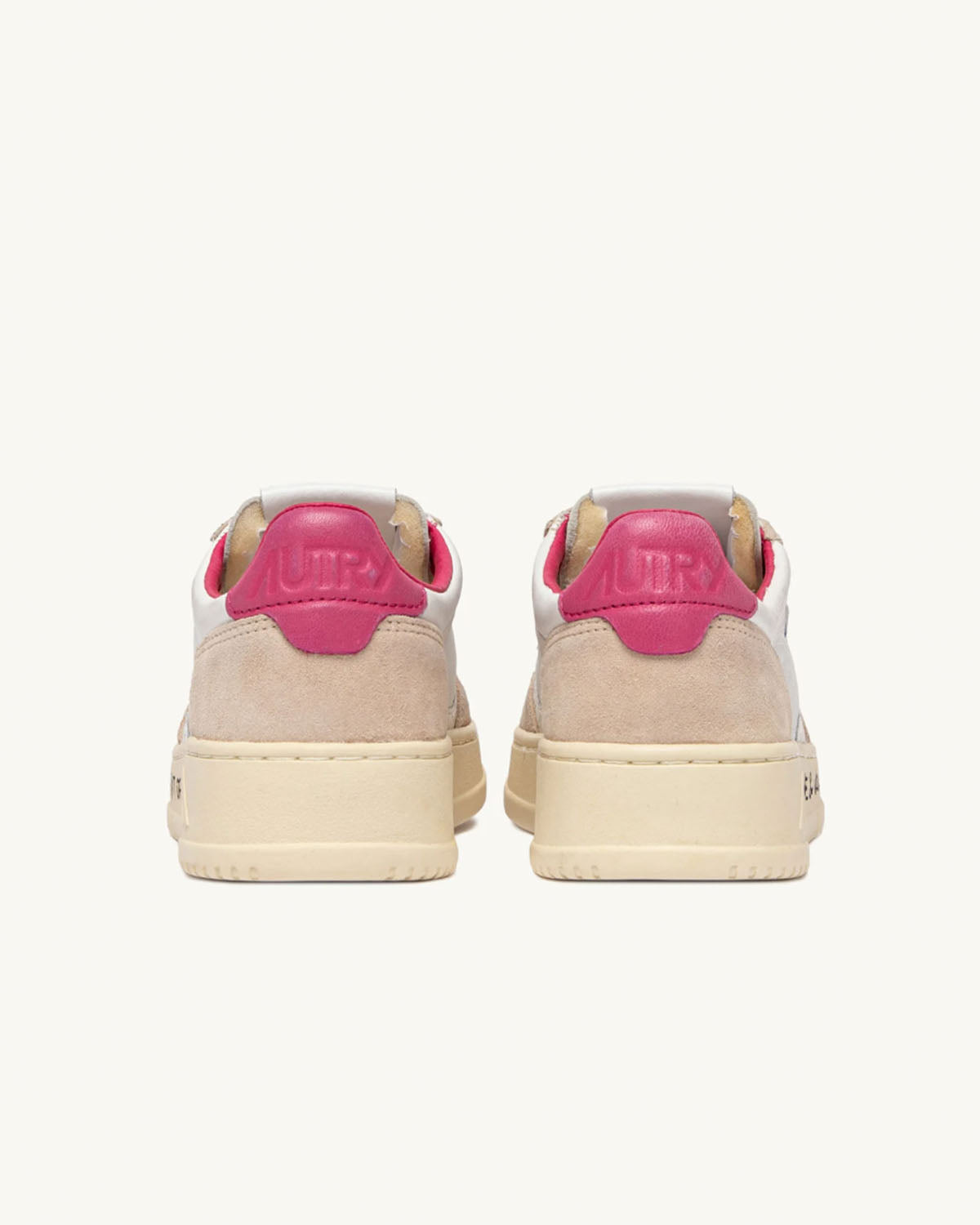 Hvite sneakers fra Autry. Medalist Low wom er inspirert av vintagedesignet fra 80-tallet, med en moderen vri. Et særegent design gjort unikt av overdelen i hvitt skinn med beige semsket skinn og den ikoniske logoen preget på en rosa rygglapp.