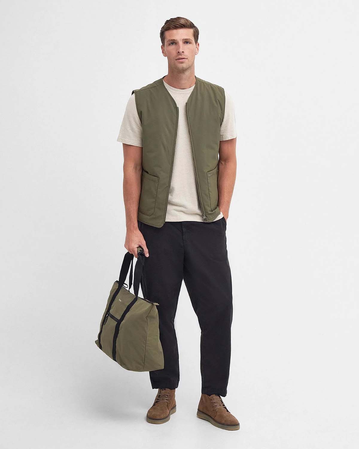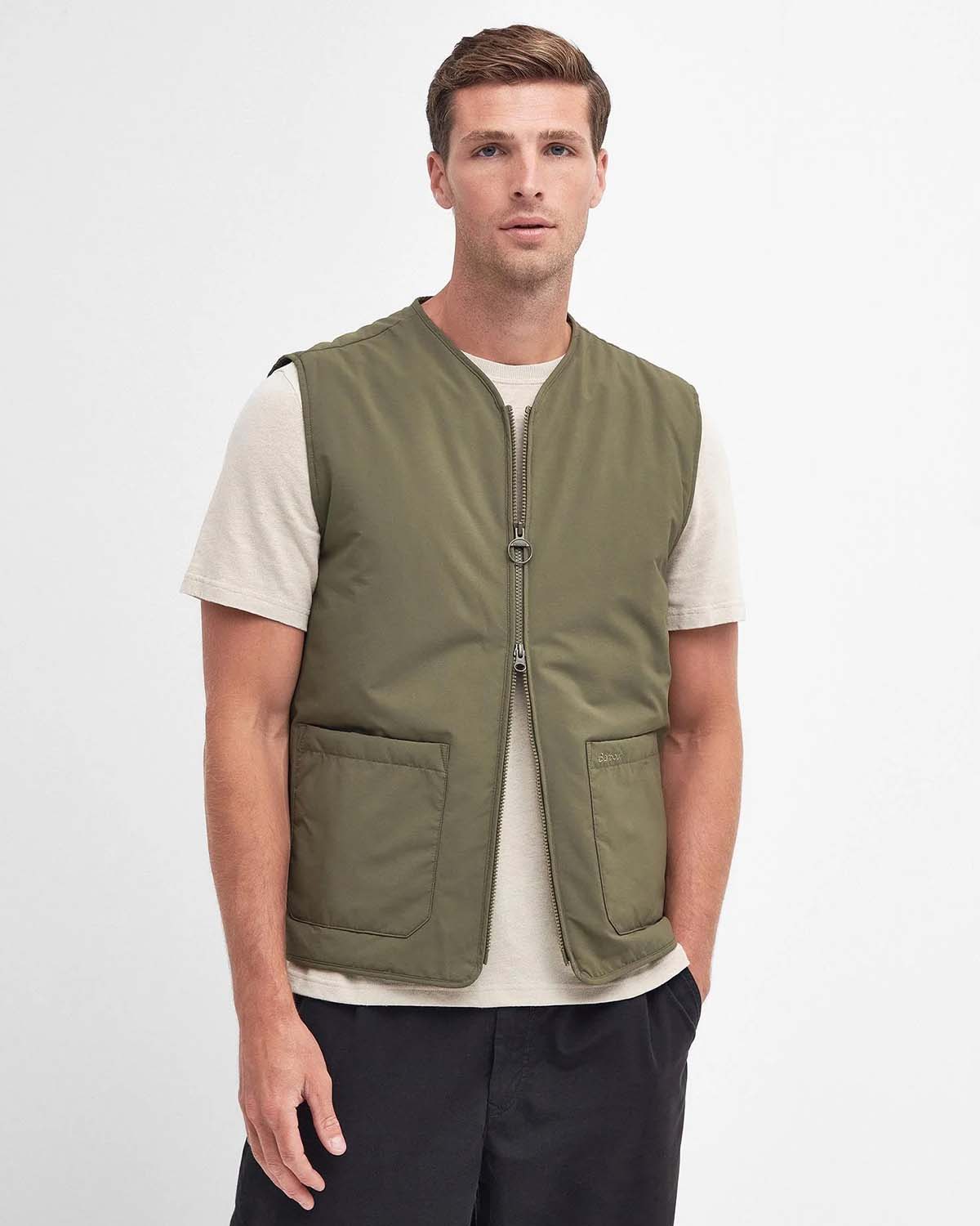 Barbour Harpen Gilet er et slankt plagg med mye stil, og kan brukes hele året. Den lette, polstrede vesten har glidelås foran, lappede lommer og Barbour-broderi på lommen for en signaturkant.