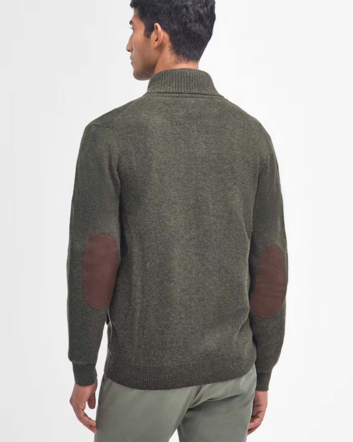 Denne tykke genseren er strikket i ren lammeull, har alcantara-albuelapper og signaturbroderi på brystet. Den klassiske passformen gjør dette plagget enkelt å ha over skjorter og t-skjorter.