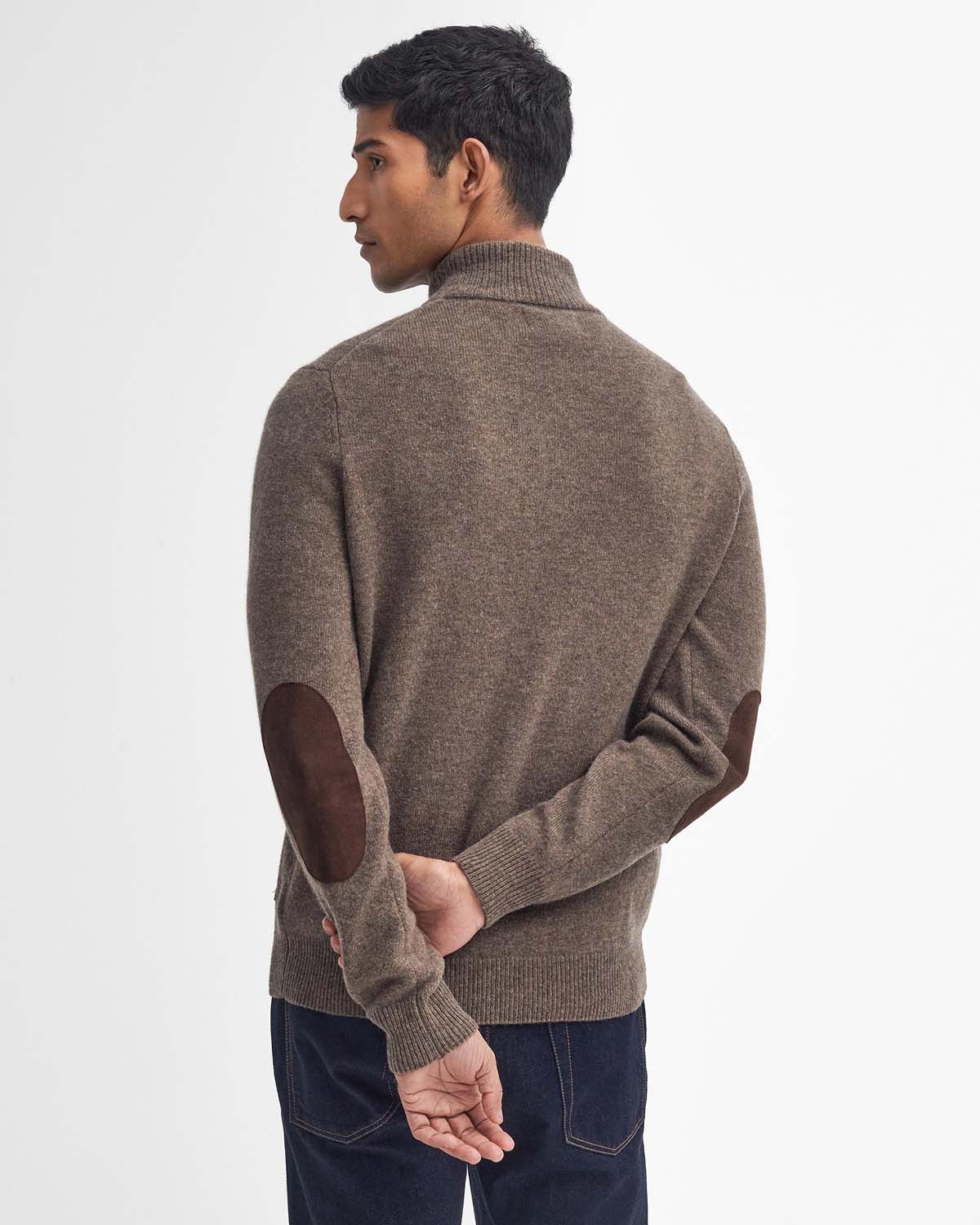 Denne Barbour-genseren er laget av 100 % ull og har skinnlapper på albuene som et nikk til livet på landet. Plagget er detaljert med knapper og glidelås i halsen og lange ermer, noe som gjør det perfekt for å holde varmen hele dagen.