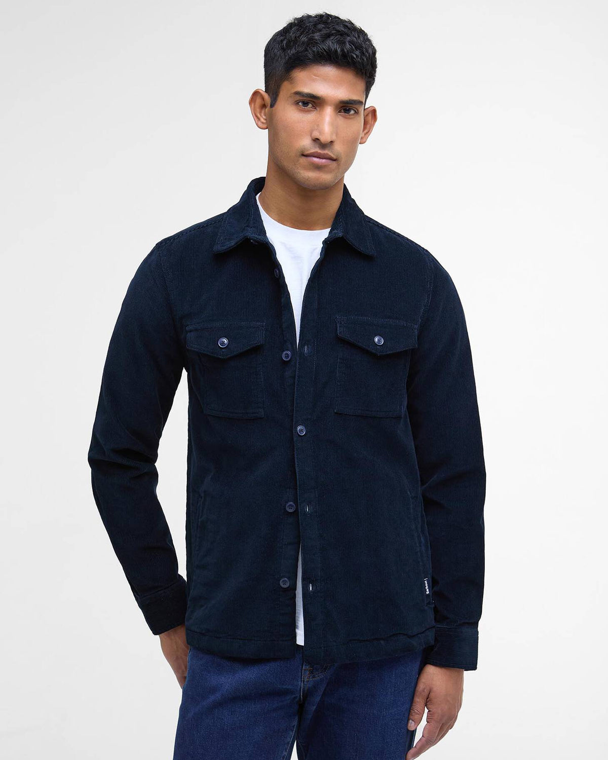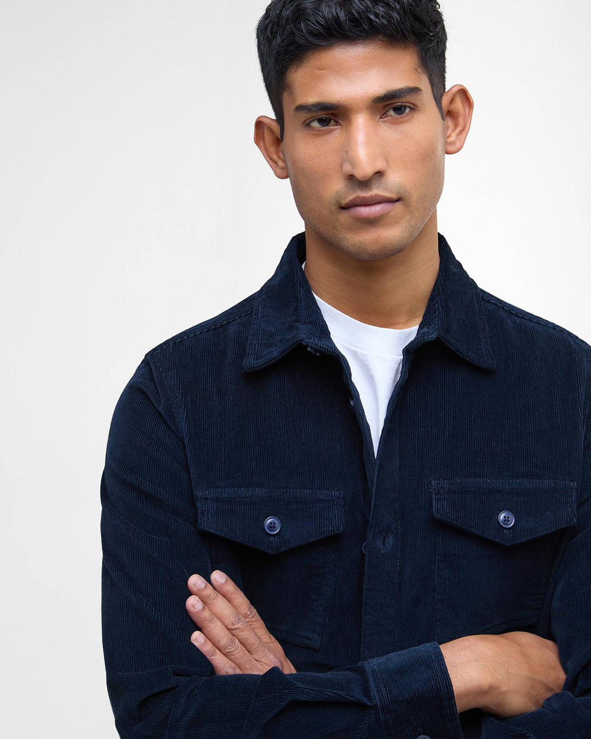 Blå skjorte i myk kordføyel fra Barbour. Cord Overshirt er like fin å style lukket som en skjorte så vel som en lett jakke.