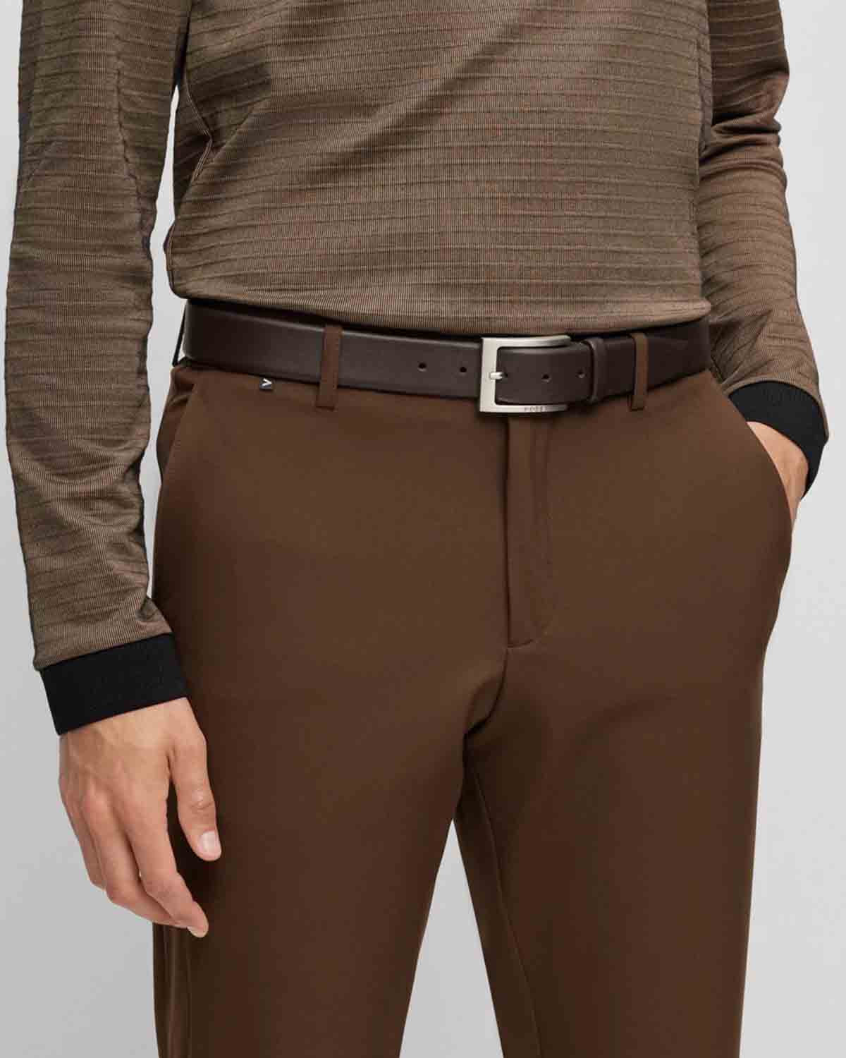 Et tidløst belte fra BOSS. Sikret med en nålespenne i børstet og polert finish, er dette raffinerte beltet laget i kuskinn med et rikt utseende.