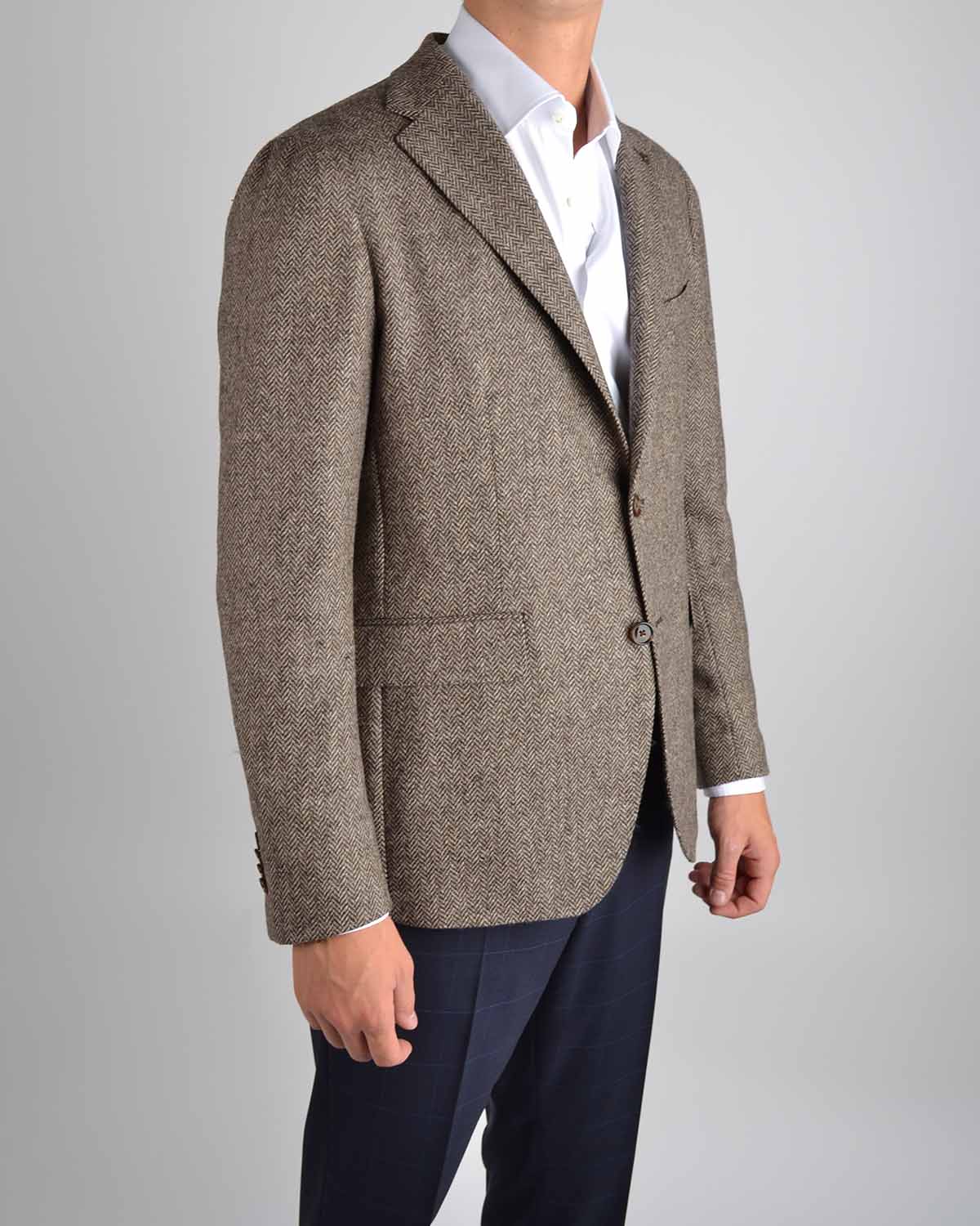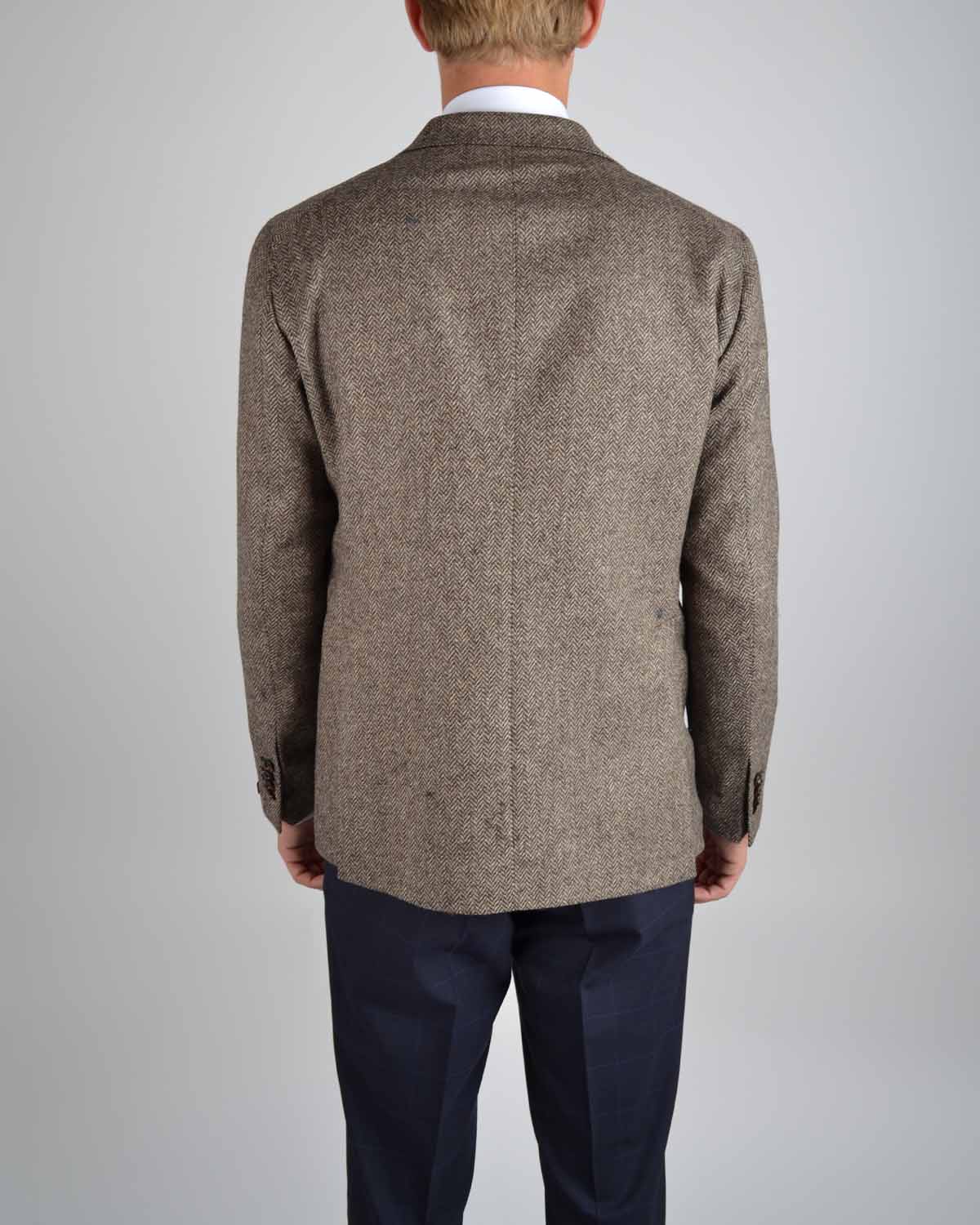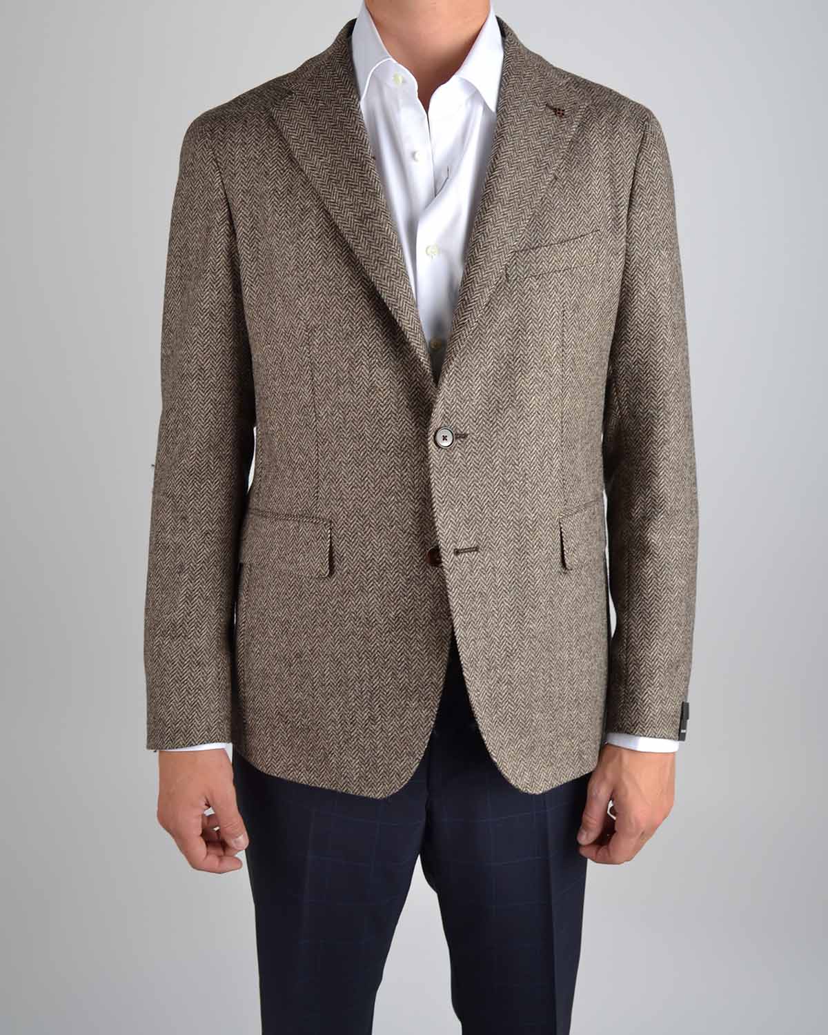 Brun ullblazer fra Tagliatore med fiskeben struktur.