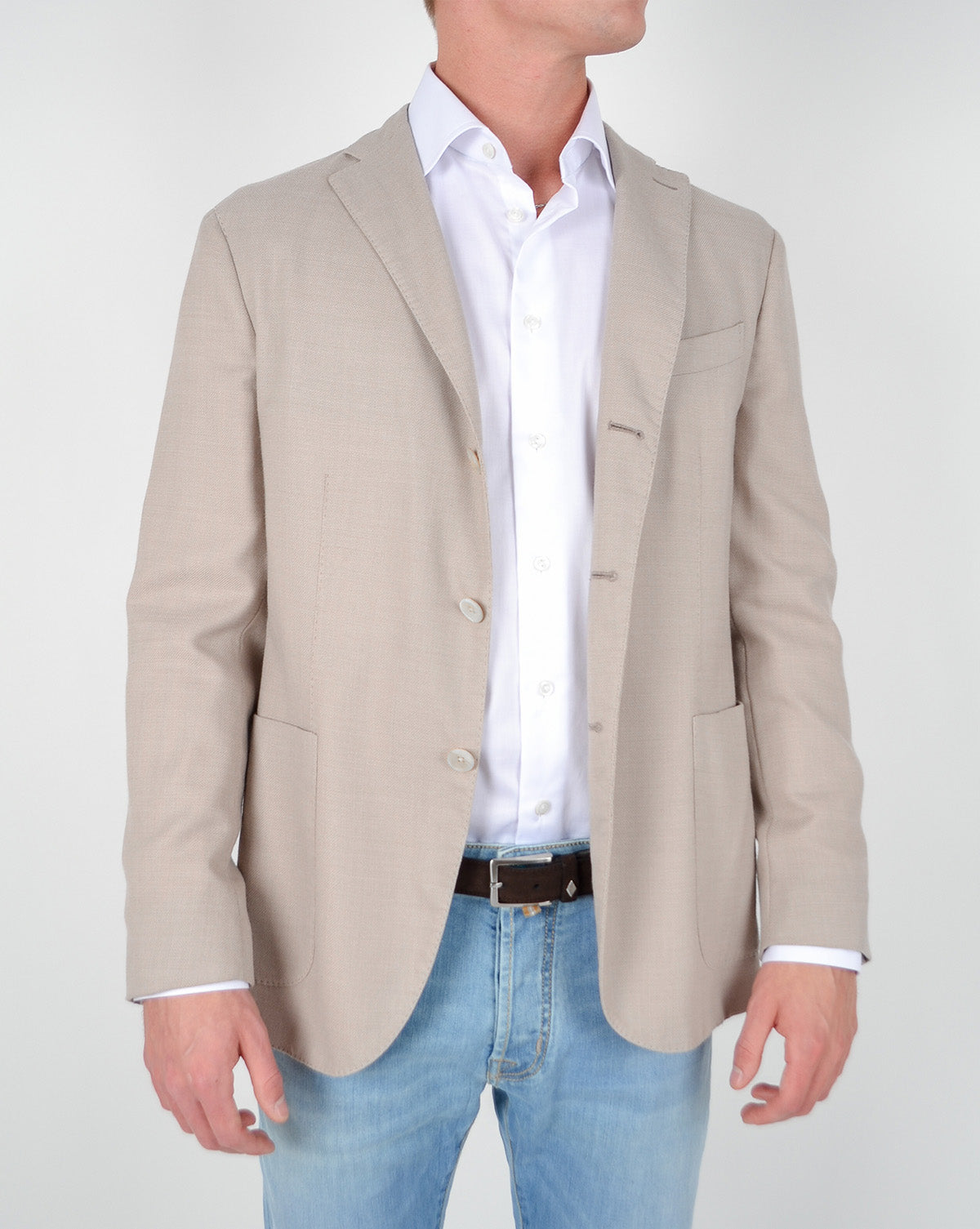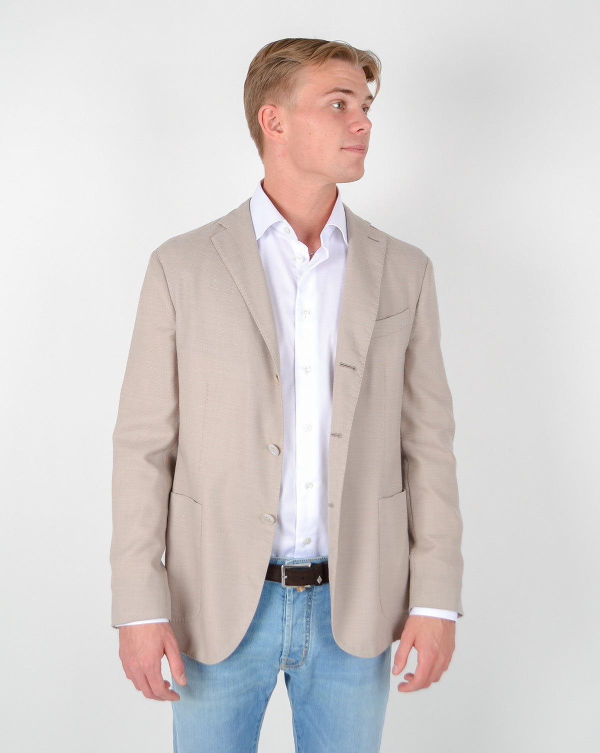 Lys beige enkeltspent blazer fra Boglioli, håndlaget i Italia.