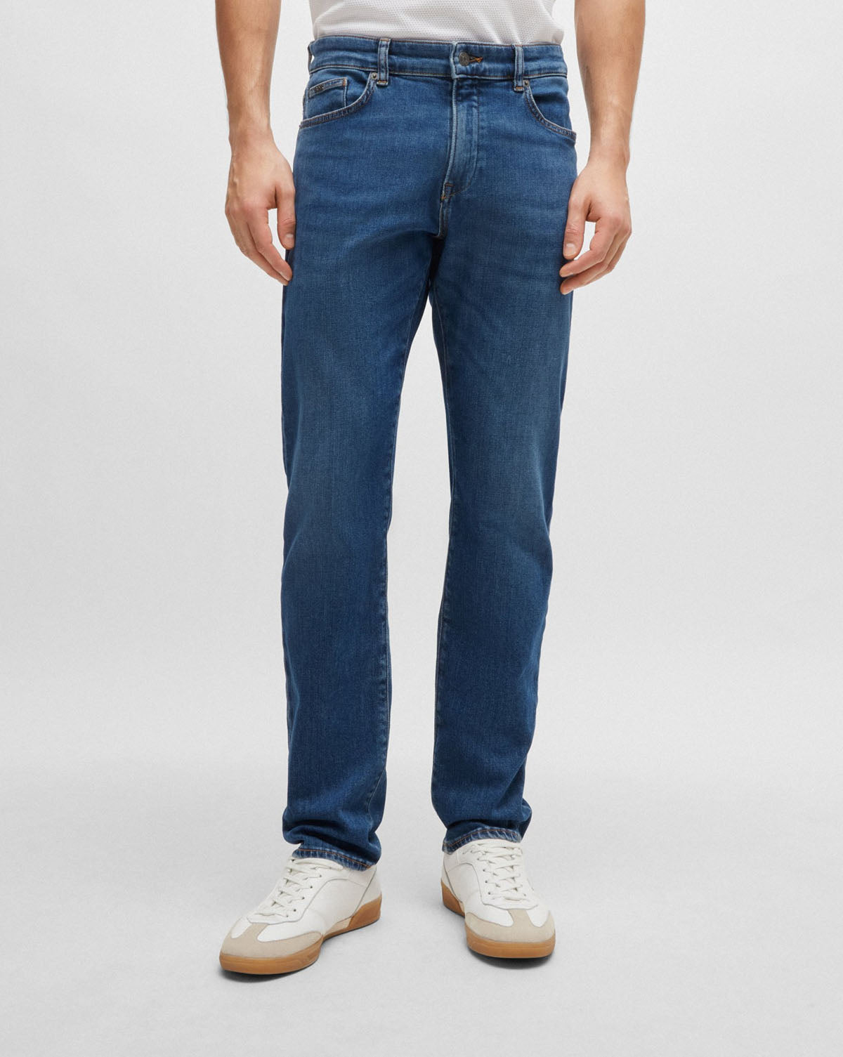 Jeans i blå komfort-stretch denim fra BOSS, skåret til en definert passform med signaturkanter.