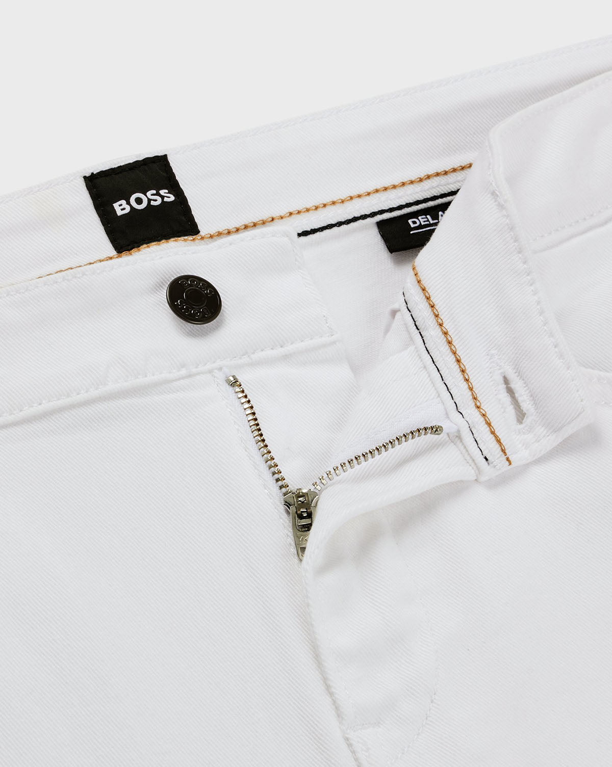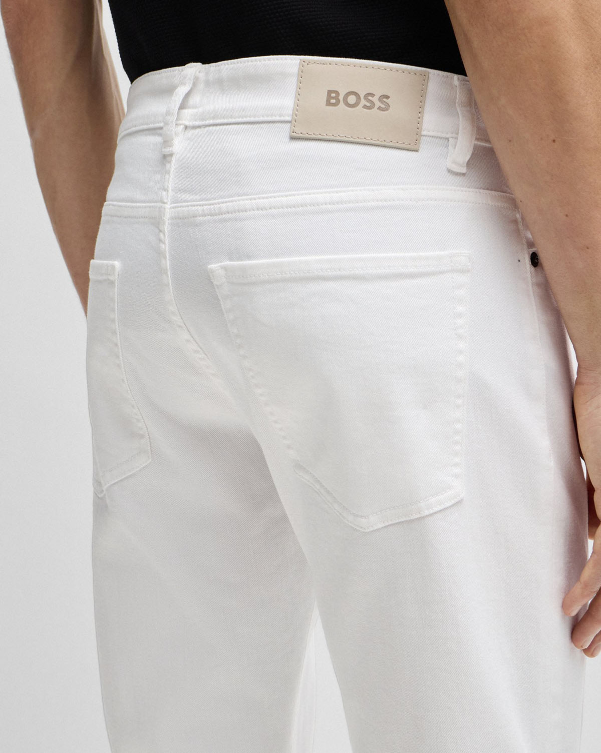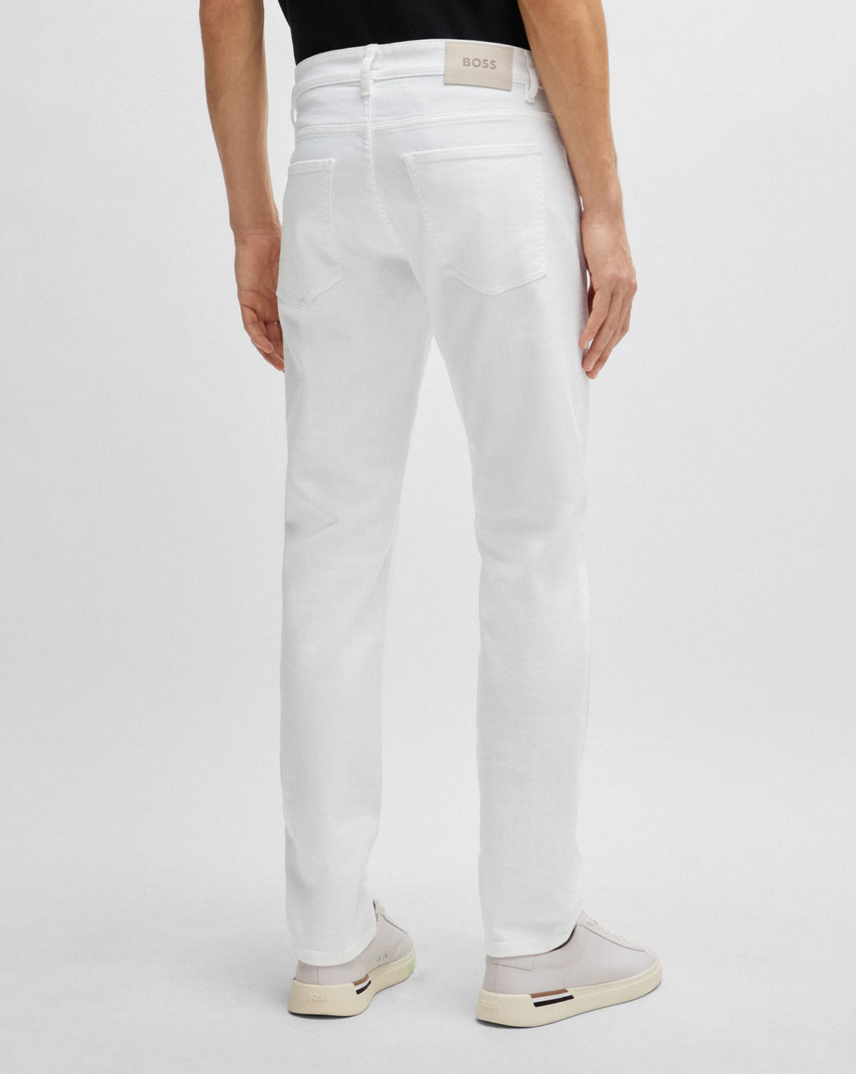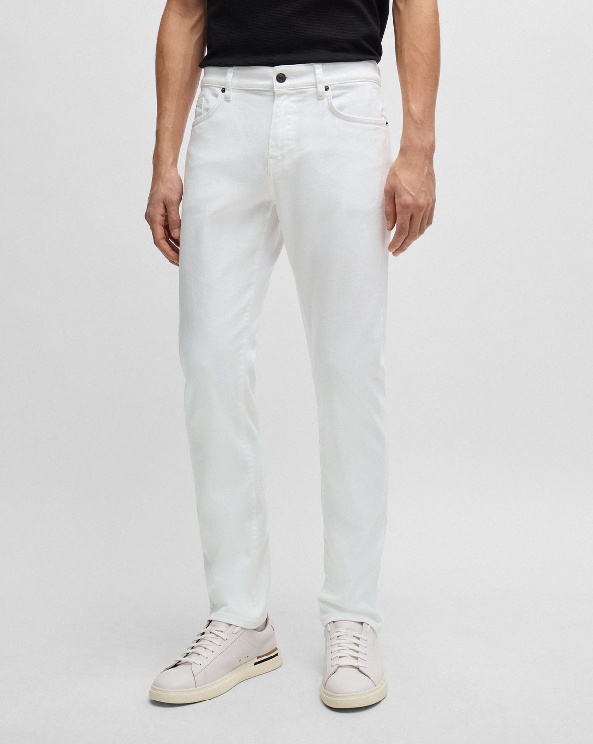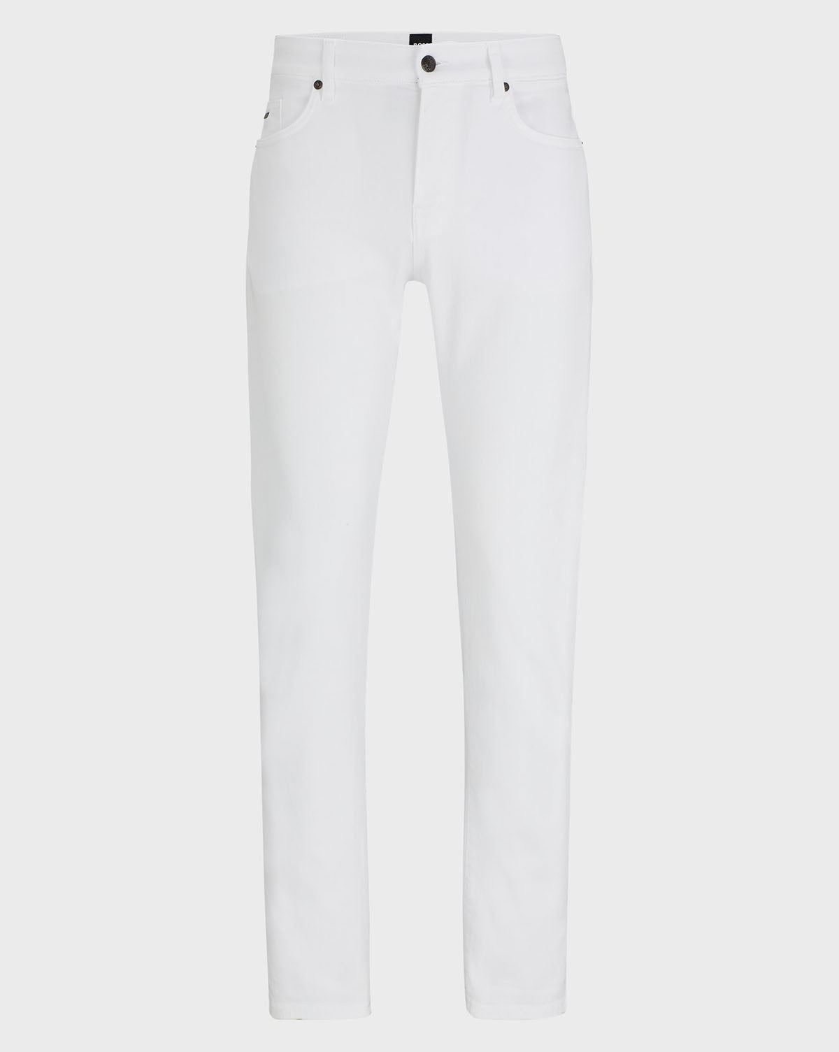Jeans med jevn vask i en slim fit passform fra BOSS, laget i hvit stretchdenim med et mykt kasjmirpreg.