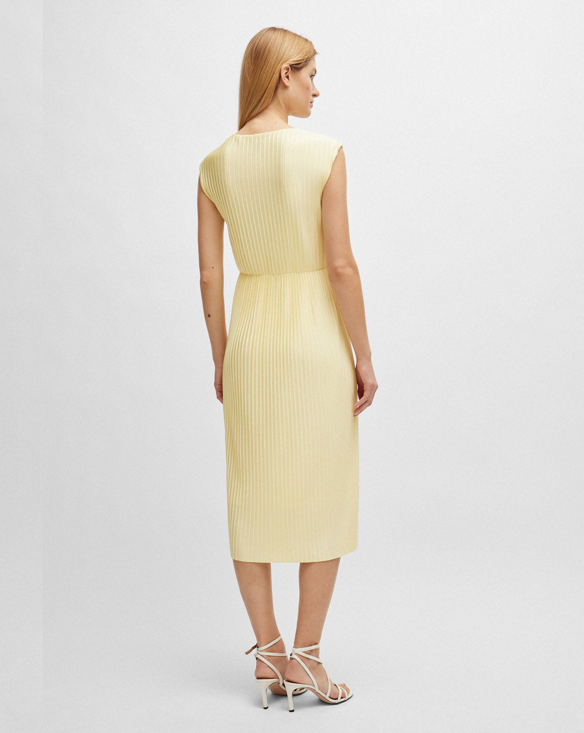En ermeløs kjole fra BOSS. Denne feminine kjolen har en utskjæringsdetalj ved halsen og er laget i høyglans stretchstoff med plissé-folder. Skap et uanstrengt elegant utseende med pumps eller flats.