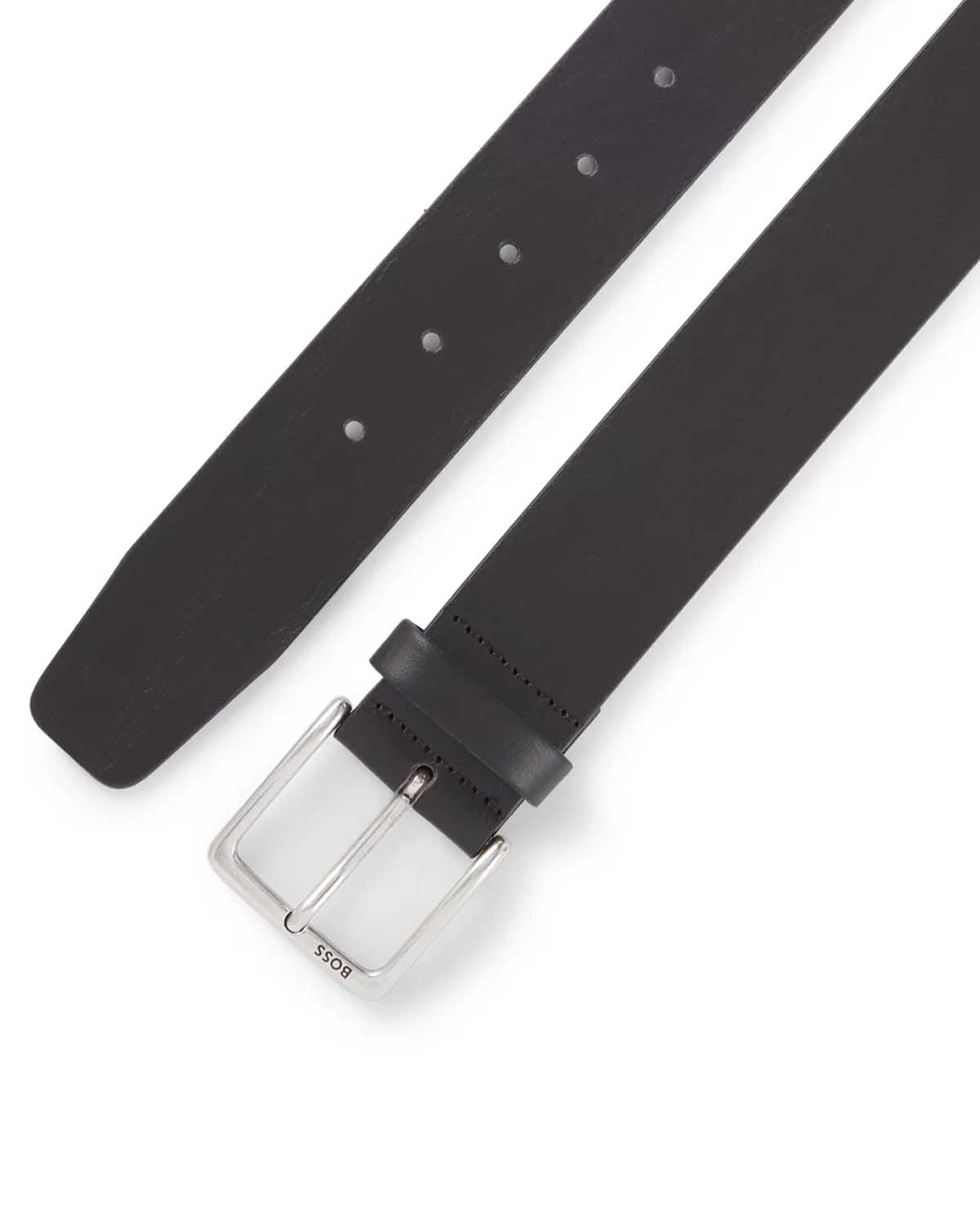 Et italiensk-laget belte av BOSS. Dette tilbehøret har en inngravert logo på spennen, og er laget i italiensk skinn. For best passform anbefaler vi å bestille et belte en størrelse større enn midjestørrelsen din.