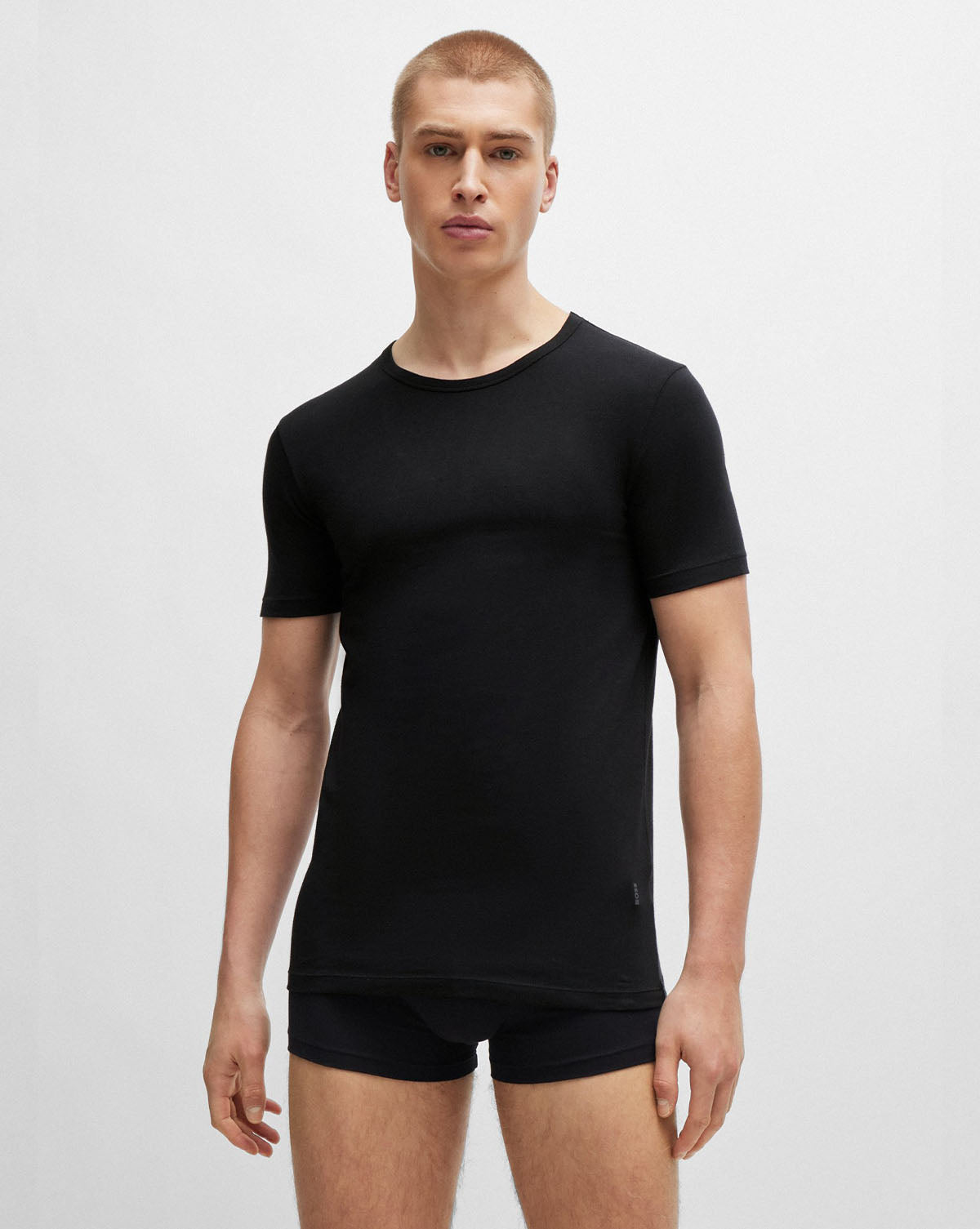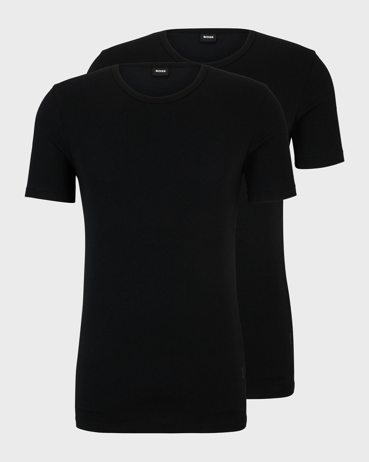 To kortermede t-skjorter fra BOSS. Disse supermyke t-skjortene er laget av stretchbomull med rund hals og trykt med en subtil BOSS-logo på venstre side. Den slanke passformen er ideell for pent lag under en hverdagslook.