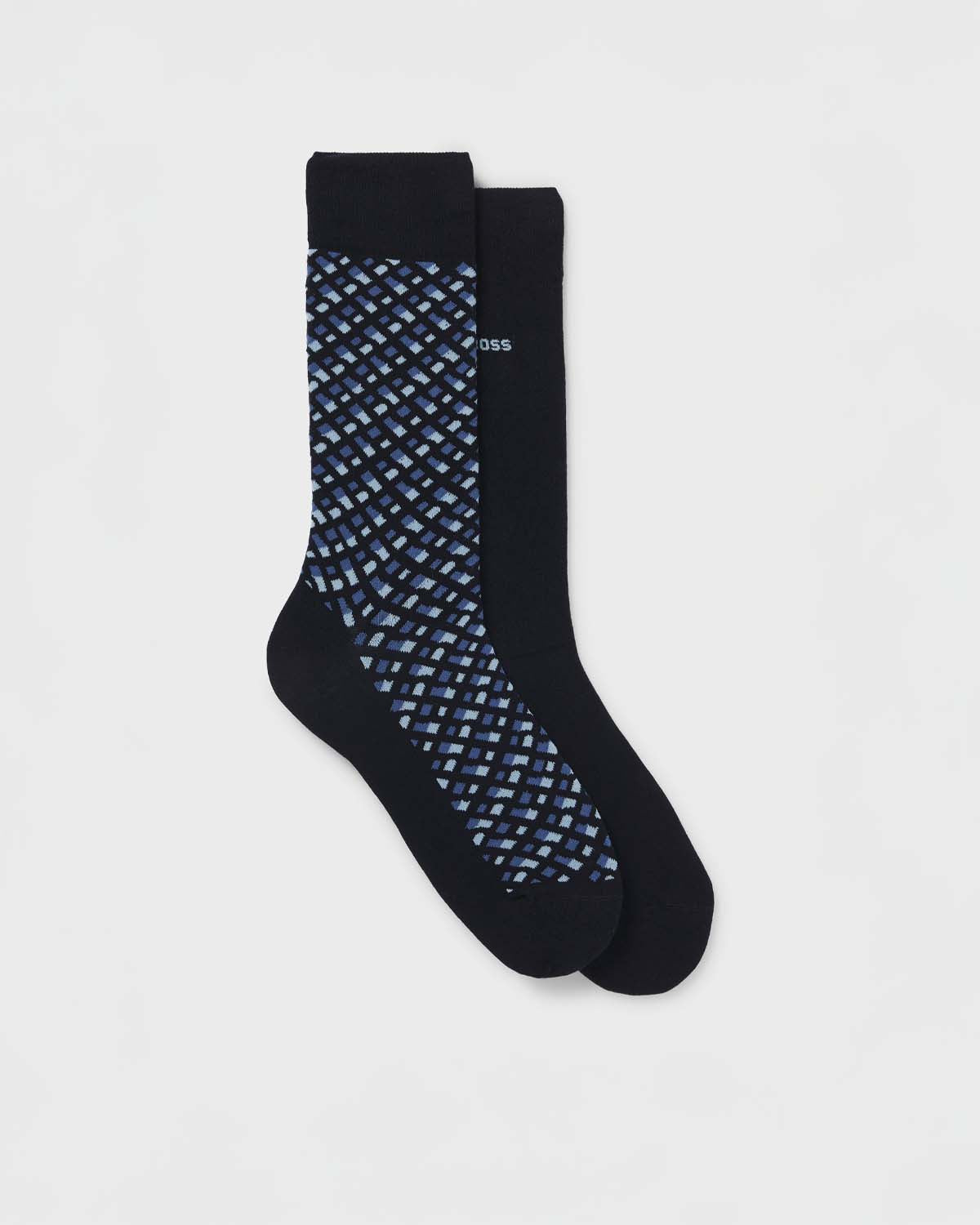 To par av ett ensfarget og ett med monogramsokker fra BOSS, kuttet til vanlig lengde i en kjemmet bomullsblanding med stretch.