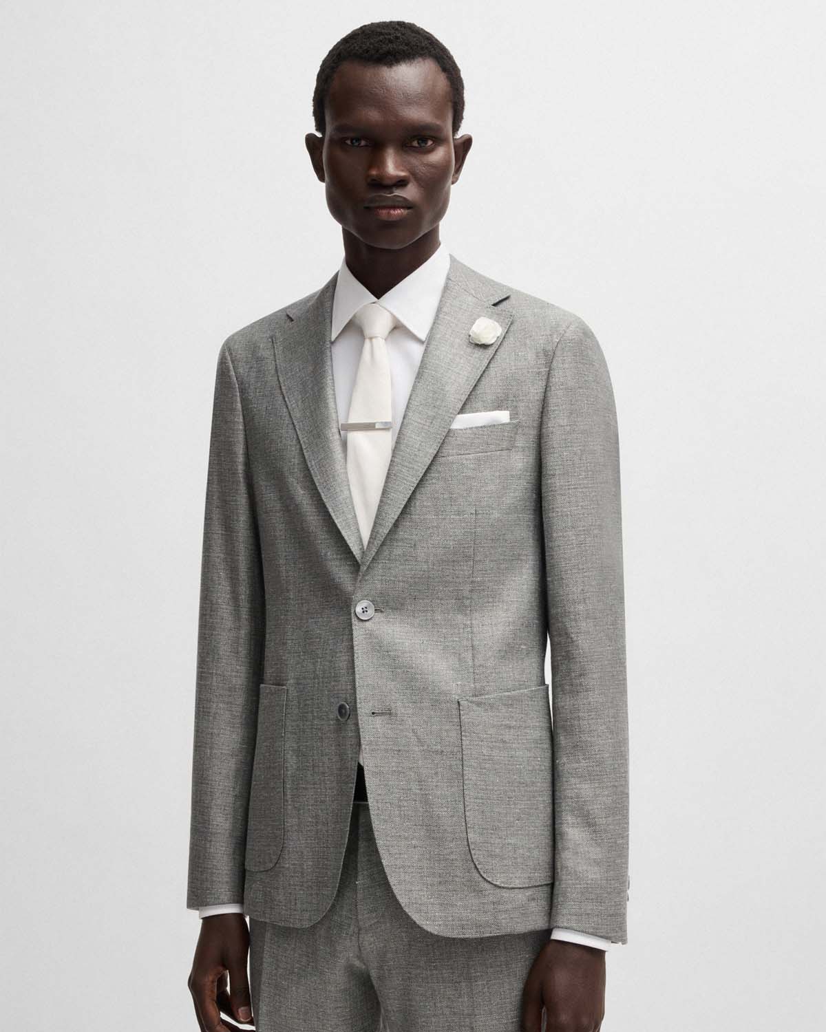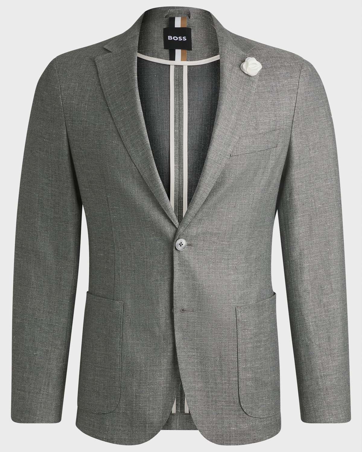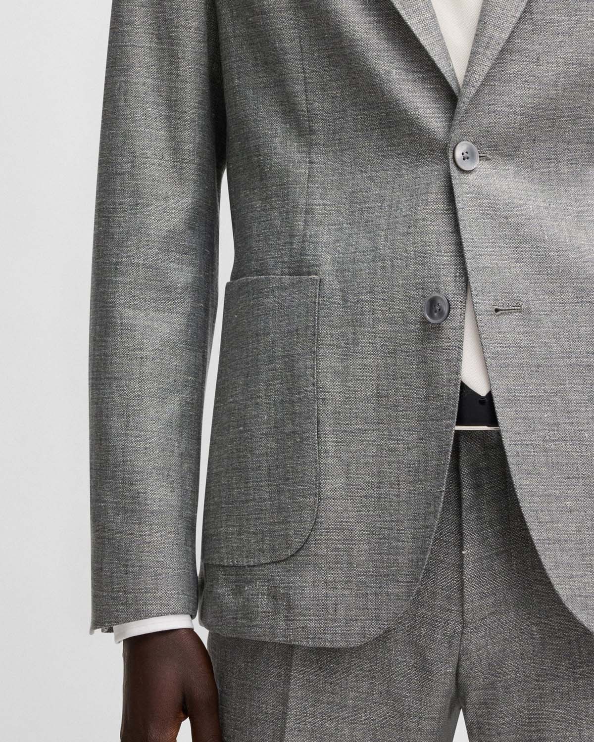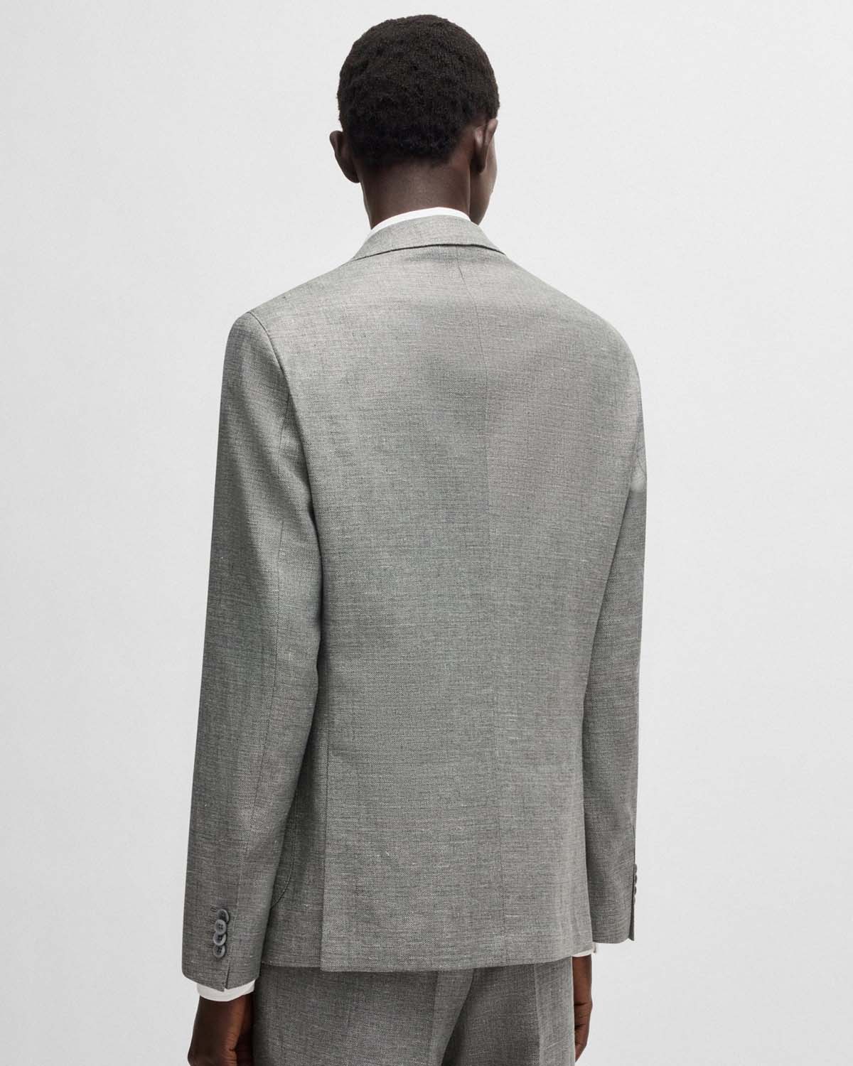 Med en ren passform og myke skuldre er denne BOSS Menswear dressjakken en allsidig investering. Blandet med lin og stretch for sommerlig komfort.