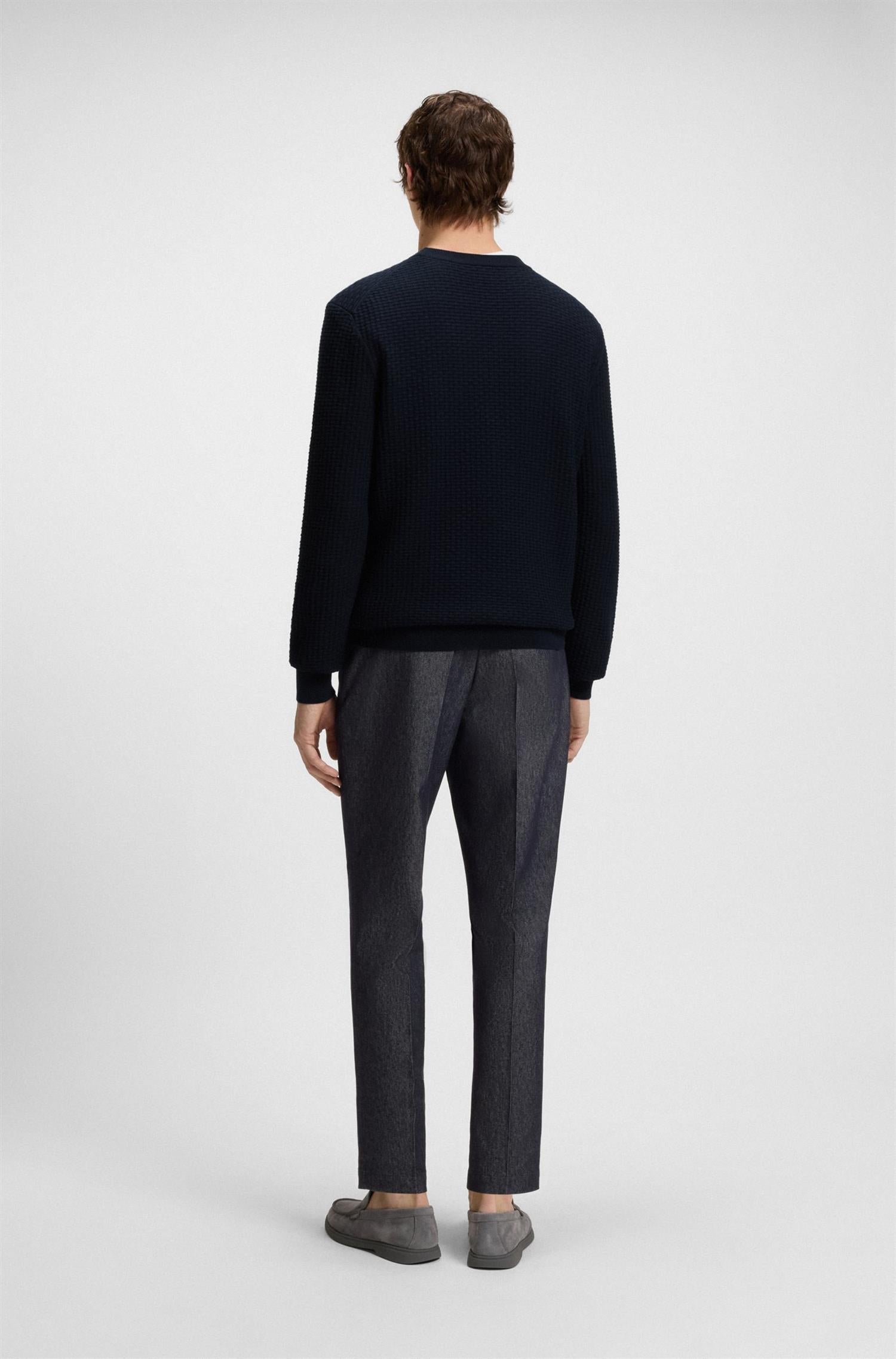 Denne BOSS Menswear-genseren er strikket med en kombinasjon av rike strukturer og er et essensielt lag for sesongen. Myk bomull. Rett passform. Dette plagget er laget med minst 60 % bomull utvunnet fra regenerativt landbruk. Regenerativt landbruk prioriterer bevaring og restaurering av naturlige miljøer, med sikte på å forbedre biologisk mangfold, opprettholde vannkvaliteten og forbedre jordhelsen.