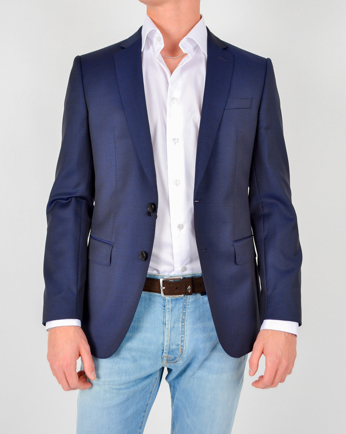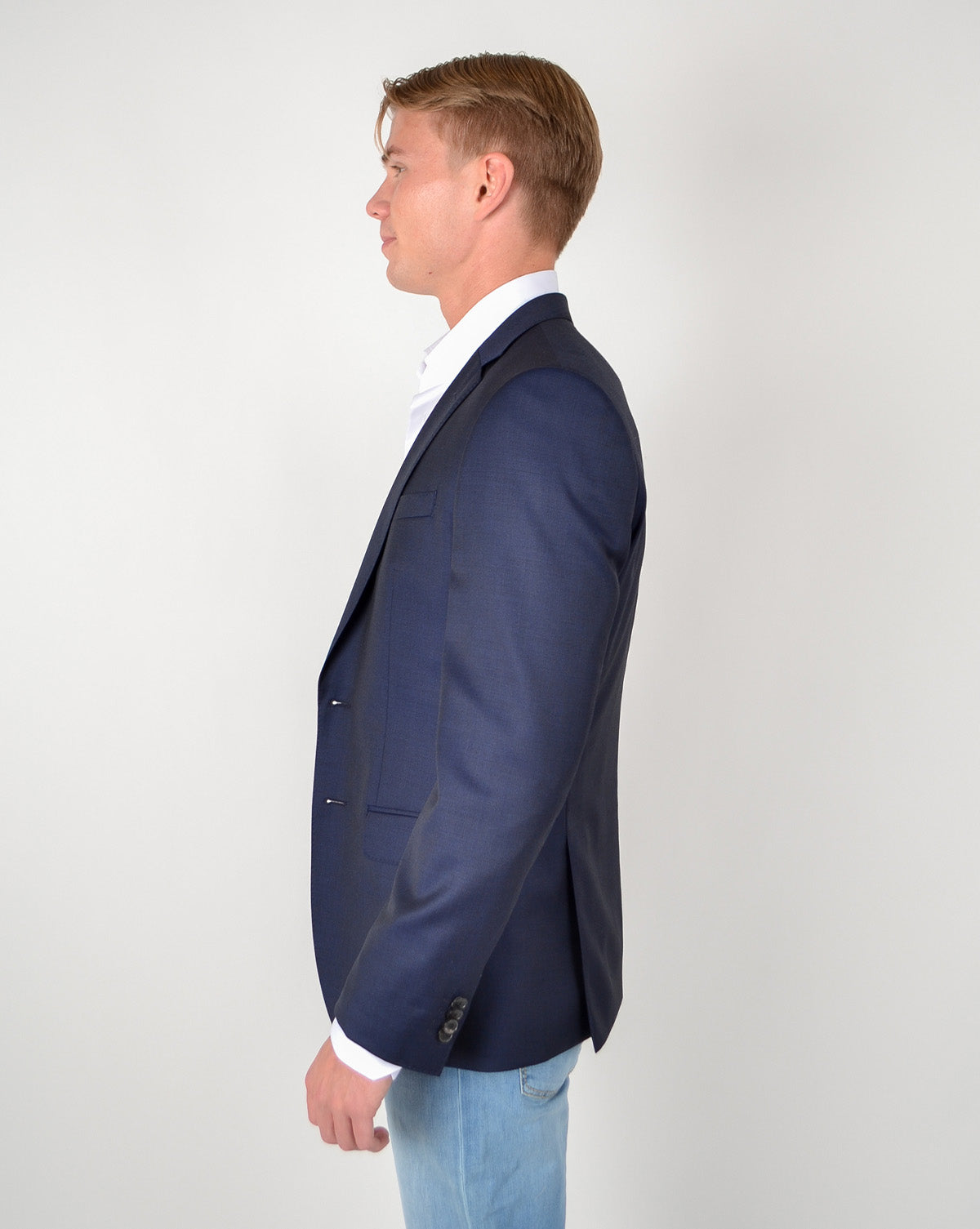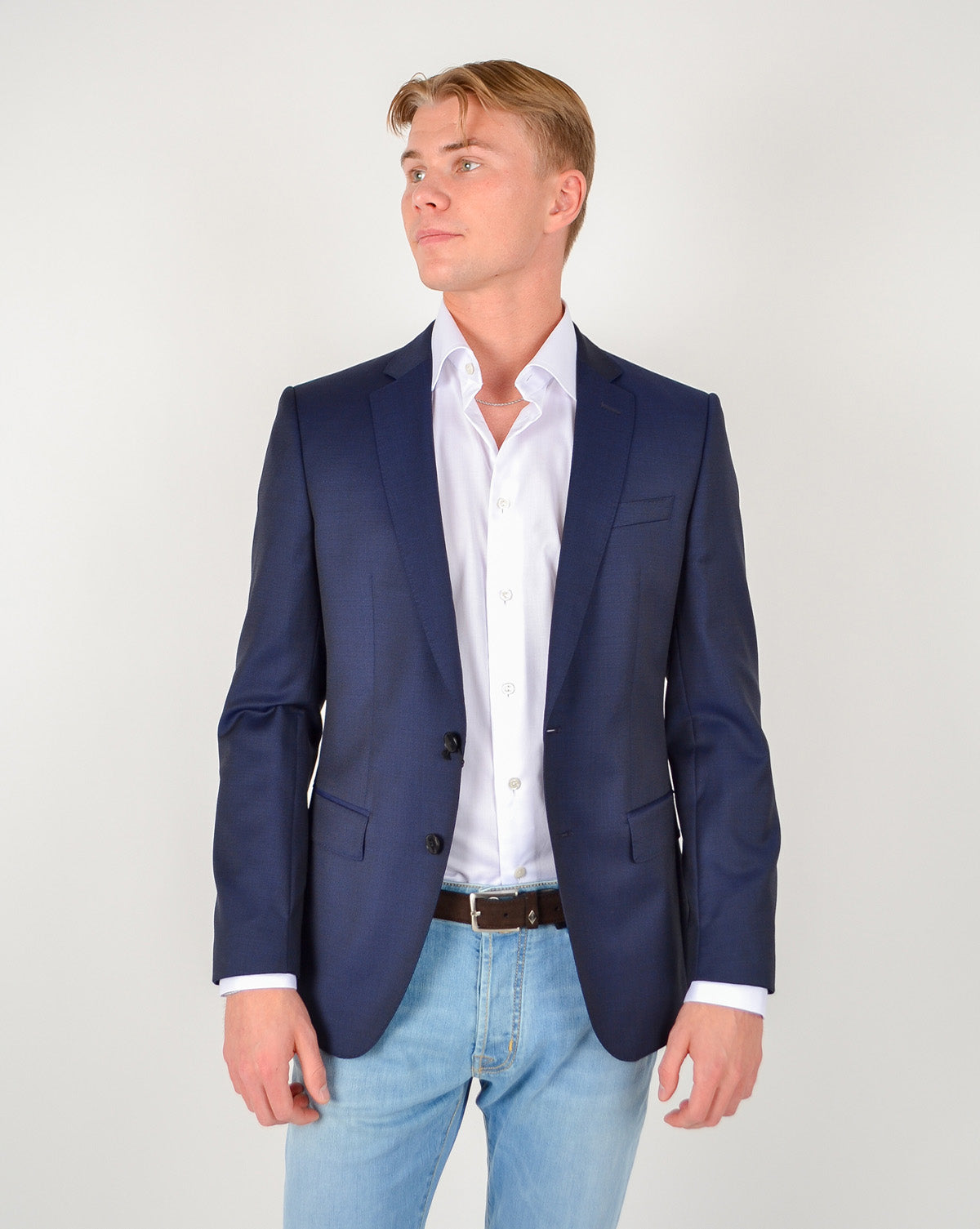 Den 2-knappers enkeltspente jakken har to midjepiler foran og passer utmerket på grunn av de to sideåpningene bak. Huge6 har også en brystlomme, to klafflommer og fire knapper på hver mansjett. Tone-i-ton-fôret sikrer komfort os stil.