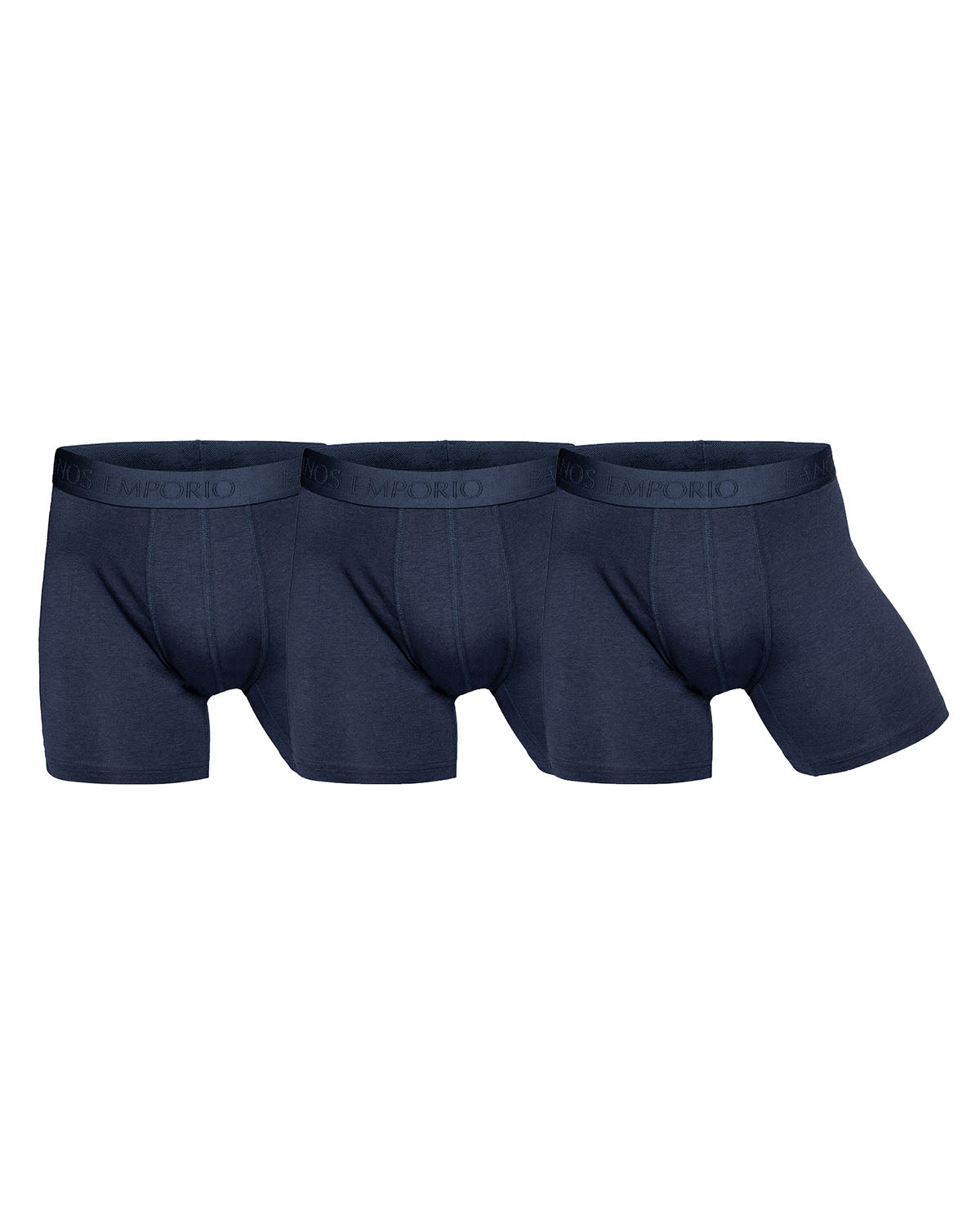 Tre mørkeblå boksere i myk kvalitet fra Panos Emporio. Base Bamboo Boxer kommer i stilrent design med detaljer ton-i-ton.