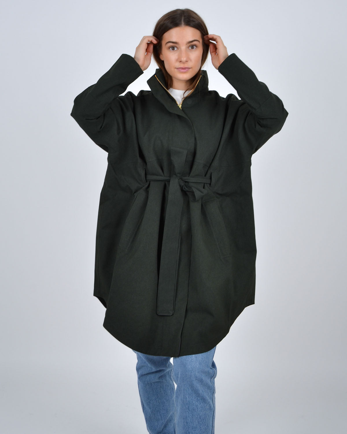 Den populære Bris Poncho fra norske BRGN by Lunde & Gaundal har kommet i den lekre grønntonen "Rosin"! Bris Poncho har blitt en av merkets mest populære jakker og er både kul og praktisk på samme tid. Regnjakken er både vann- og vindtett og har skjult hette i krage samt belte i midjen.