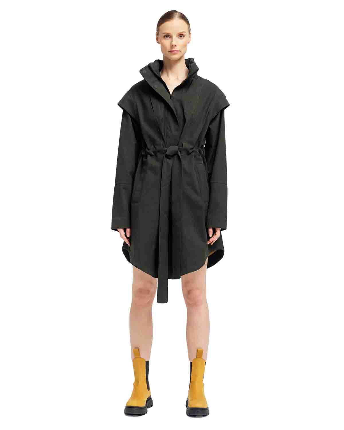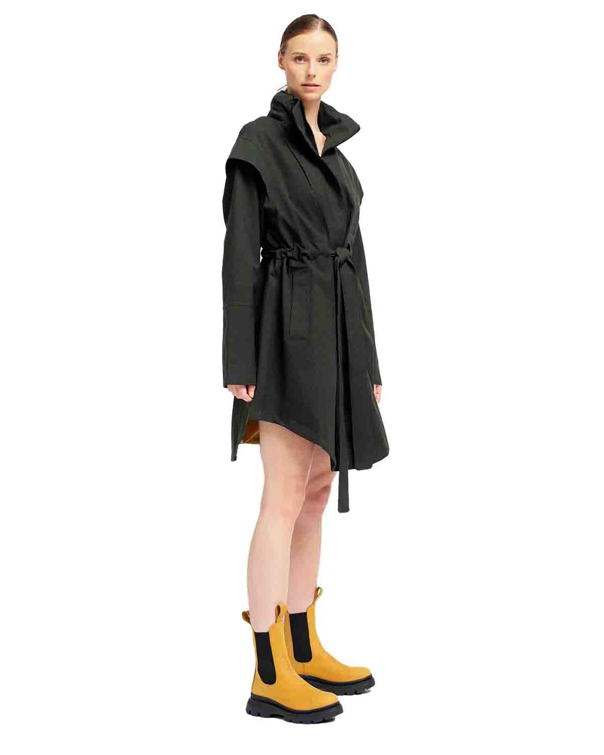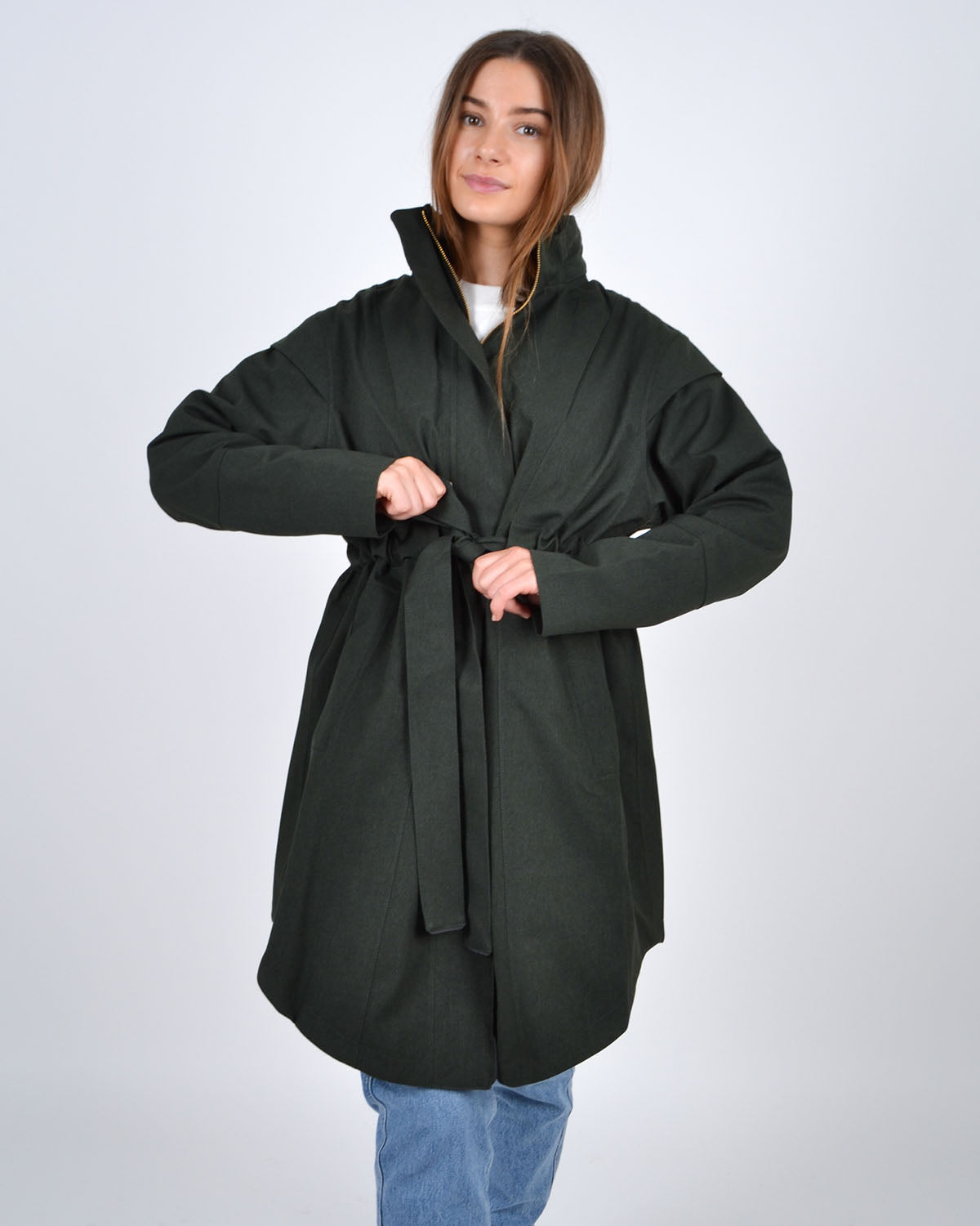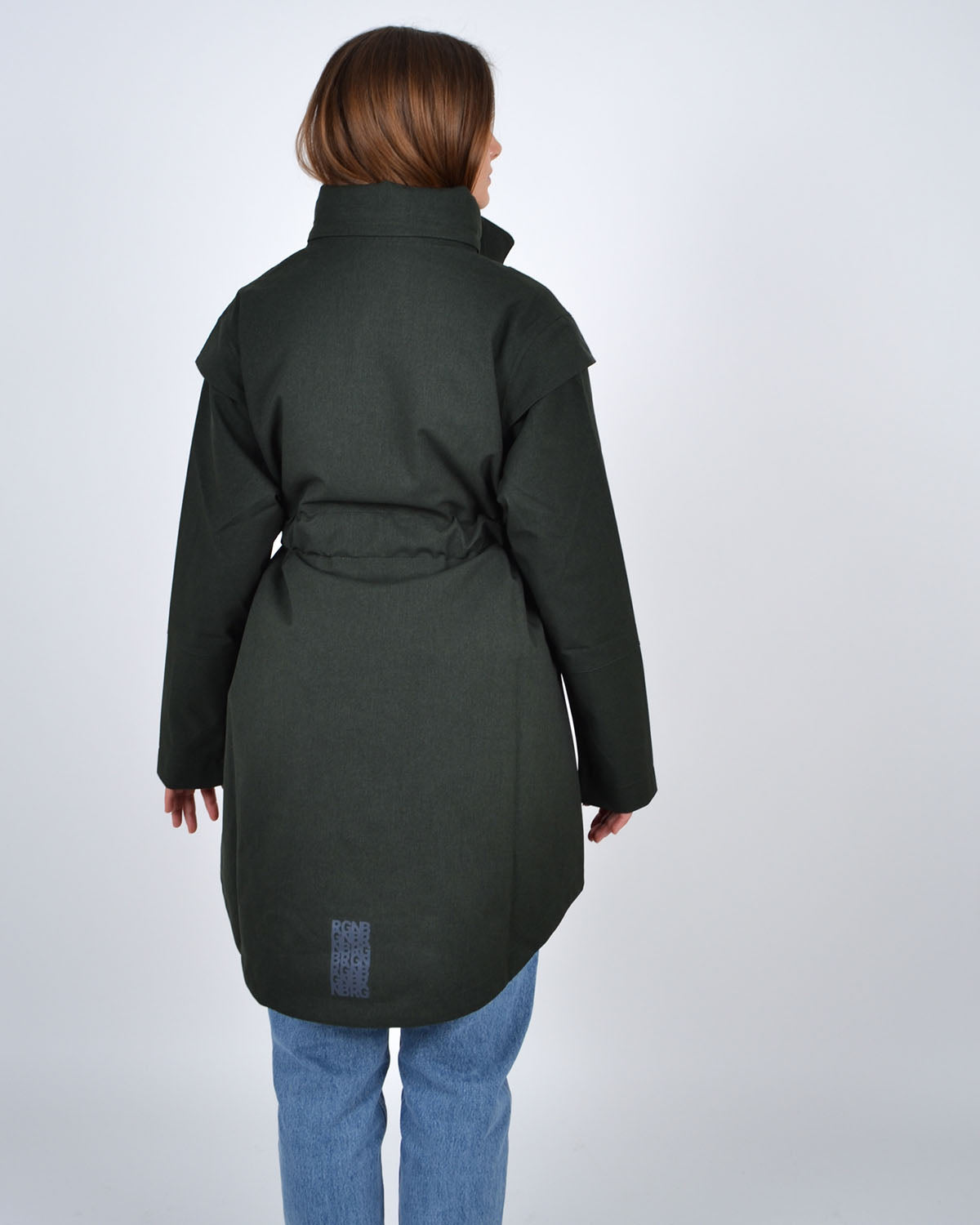 Monsun Coat fra BRGN ble fort en favoritt hos oss i fjor, og nå er den tilbake i denne mørke, delikate grønnfargen! Jakken er vann- og vindtett, og er designet med cap sleeves samt belte i midjen som skaper en tøff fasong. Med skjult hette i krage, enkle sidelommer og brystlommer samt glidelås og magnetiske knapper er den også prakitsk i tillegg til å være fin!