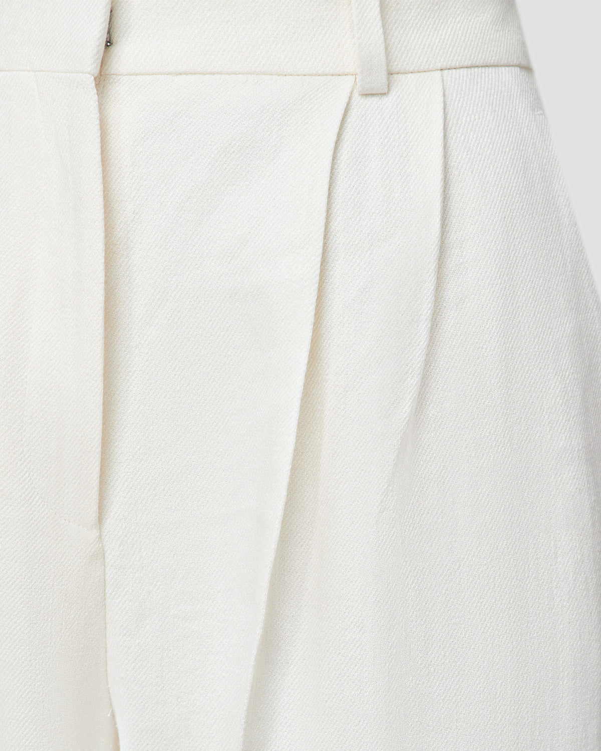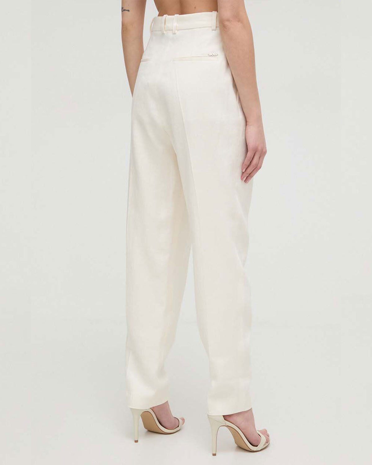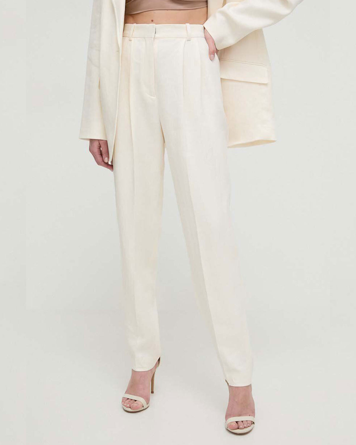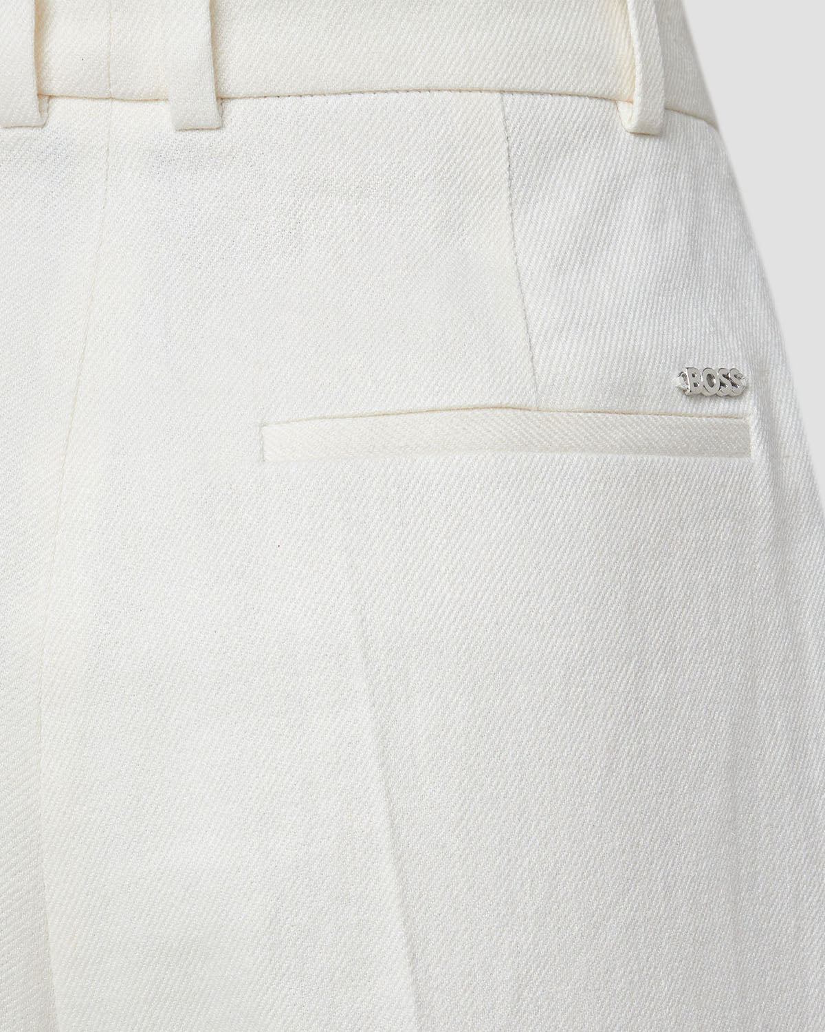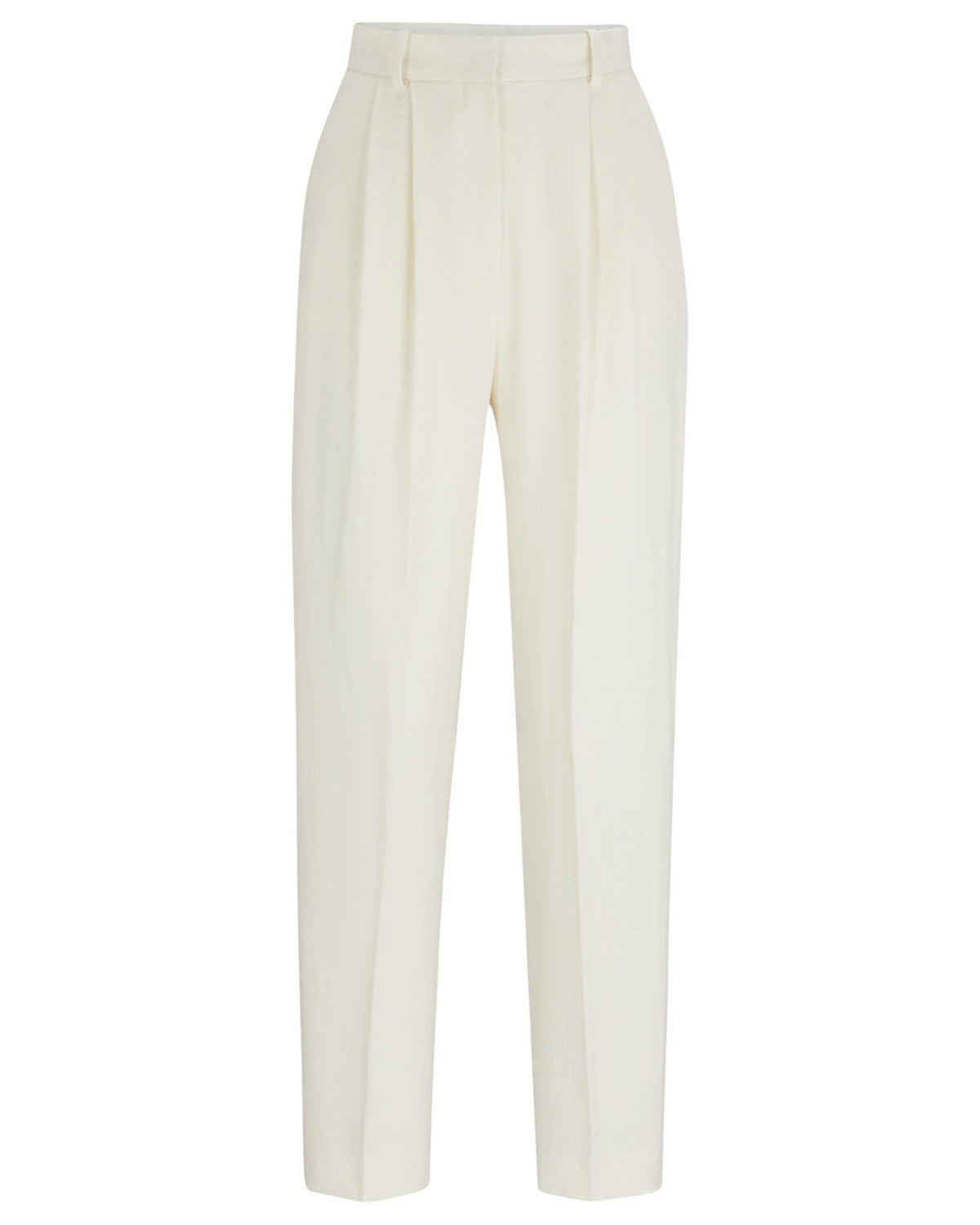 Dressbukse til dame fra BOSS Womenswear i linblanding. Buksen har en høy midje med folder foran og avsmalnende ben.