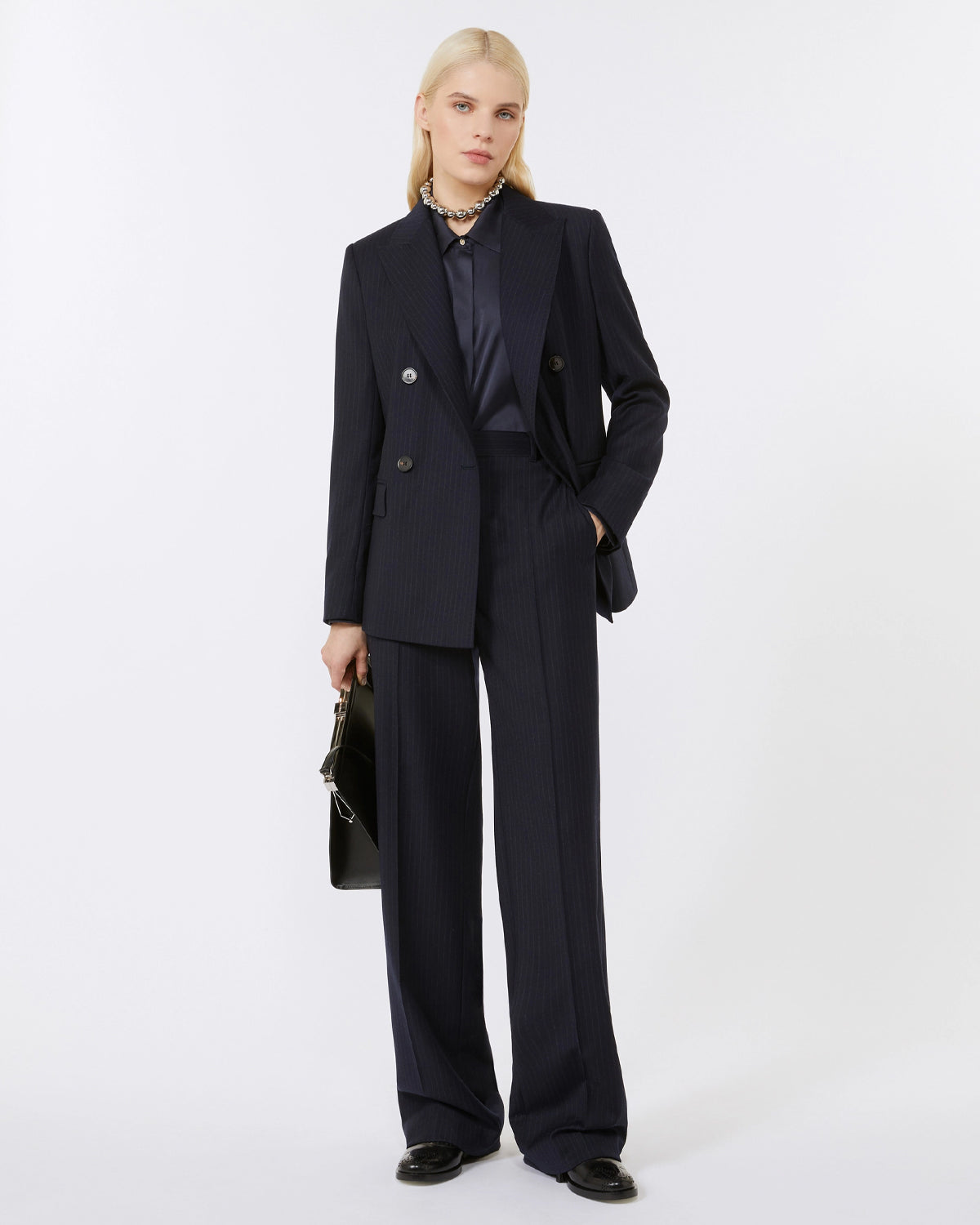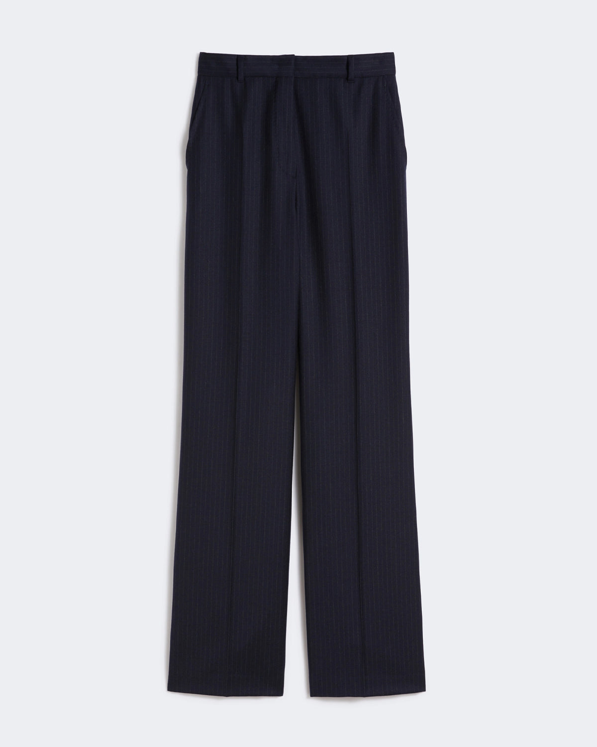 Dameflanellbukser med en slim-fit silhuett inspirert av herreklær. Designet er moderne og sofistikert, laget for moderne eleganse.