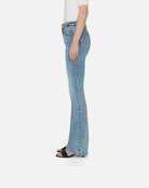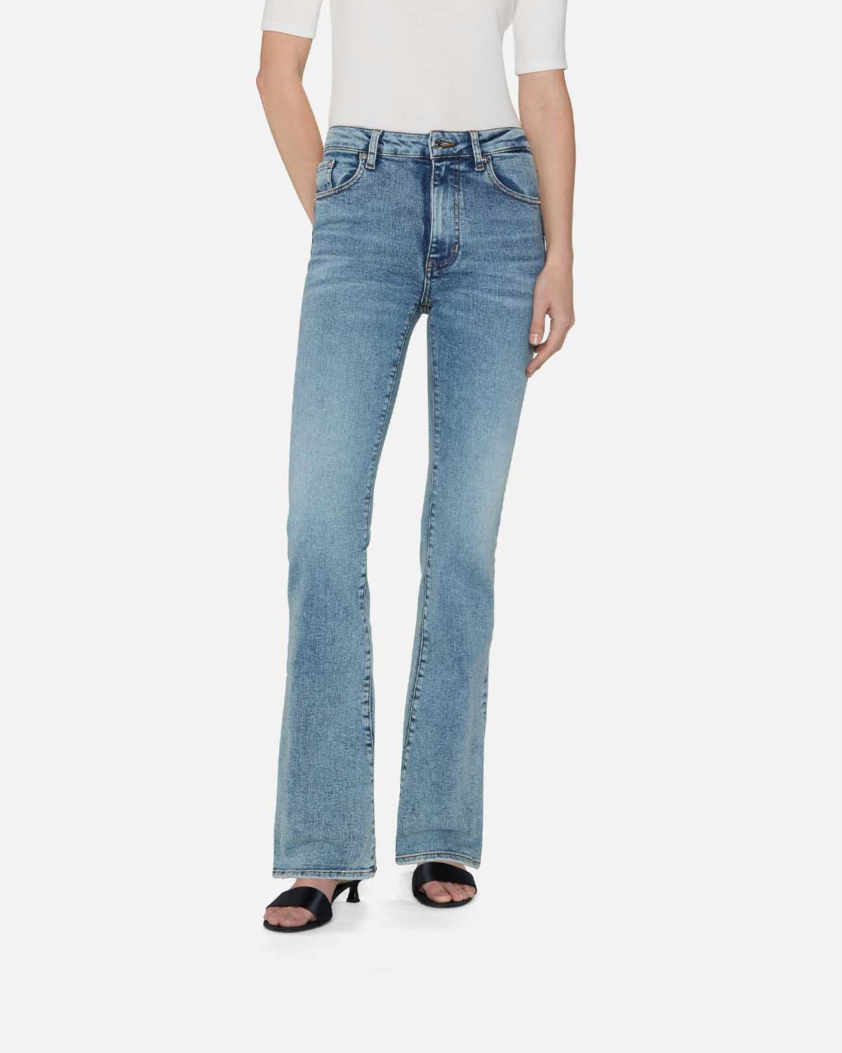 Denne jeansen har en høy, hel innersøm og går over i et ekte bootcut-snitt. Laget i superelastisk denim for komfortabel bruk hele dagen.
