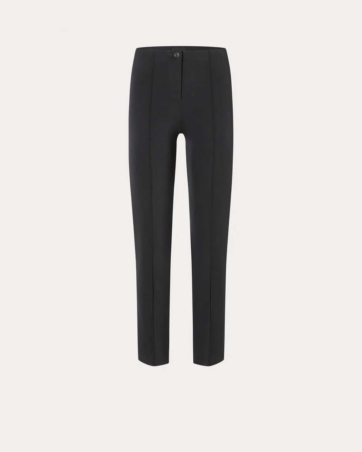 Cambio Ros Pants Black. Sort dressbukse fra Cambio med strikk i midjen. Buksen har en smal passform med god stretch og press nedover langs bena. Ingen lommer i front, jukselommer bak og lukkes med knapp og glidelås i front. Fin bukse som kan brukes til enhver anledning.