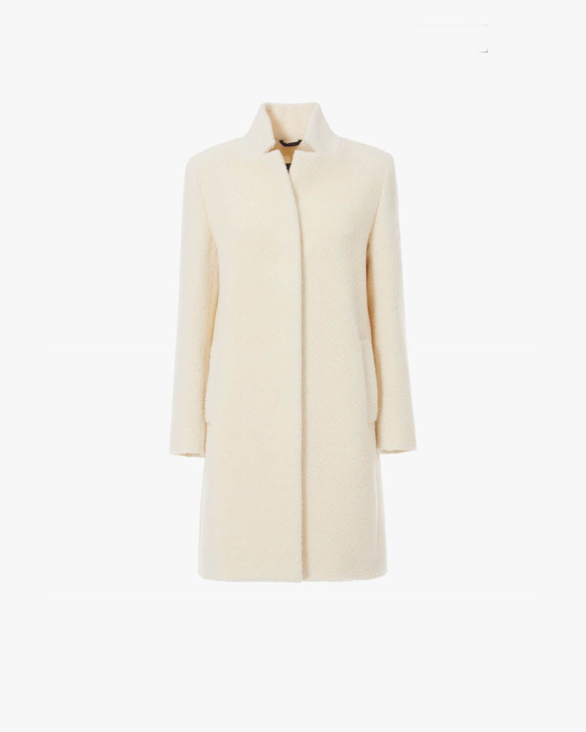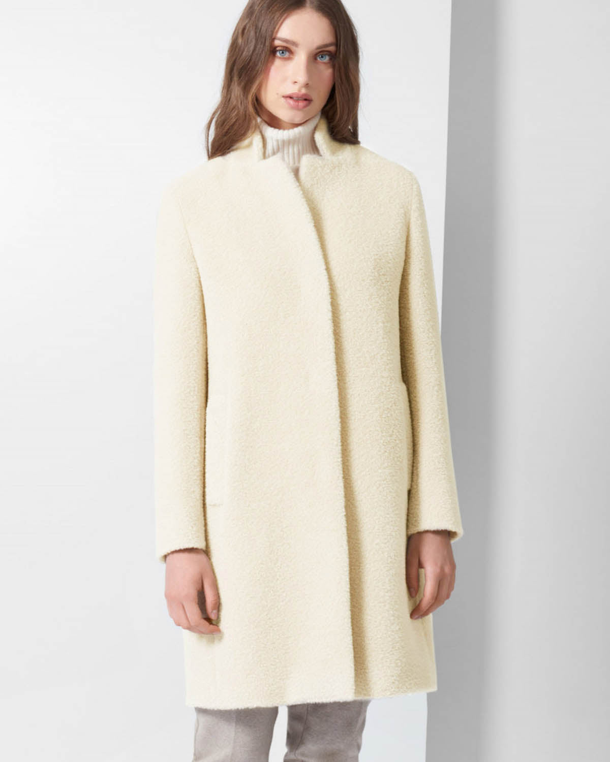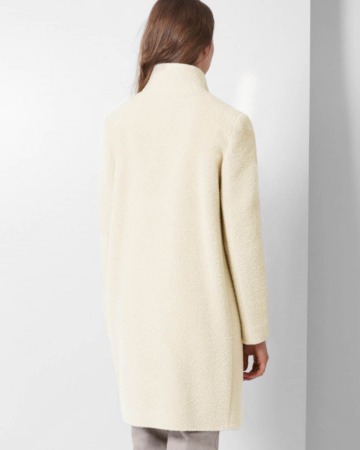 Hvit ull- og alpakkakåpe med omvendt jakkekrage fra Cinzia Rocca.