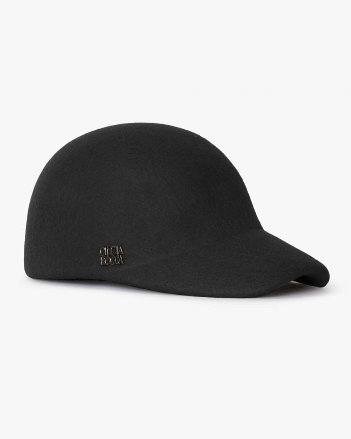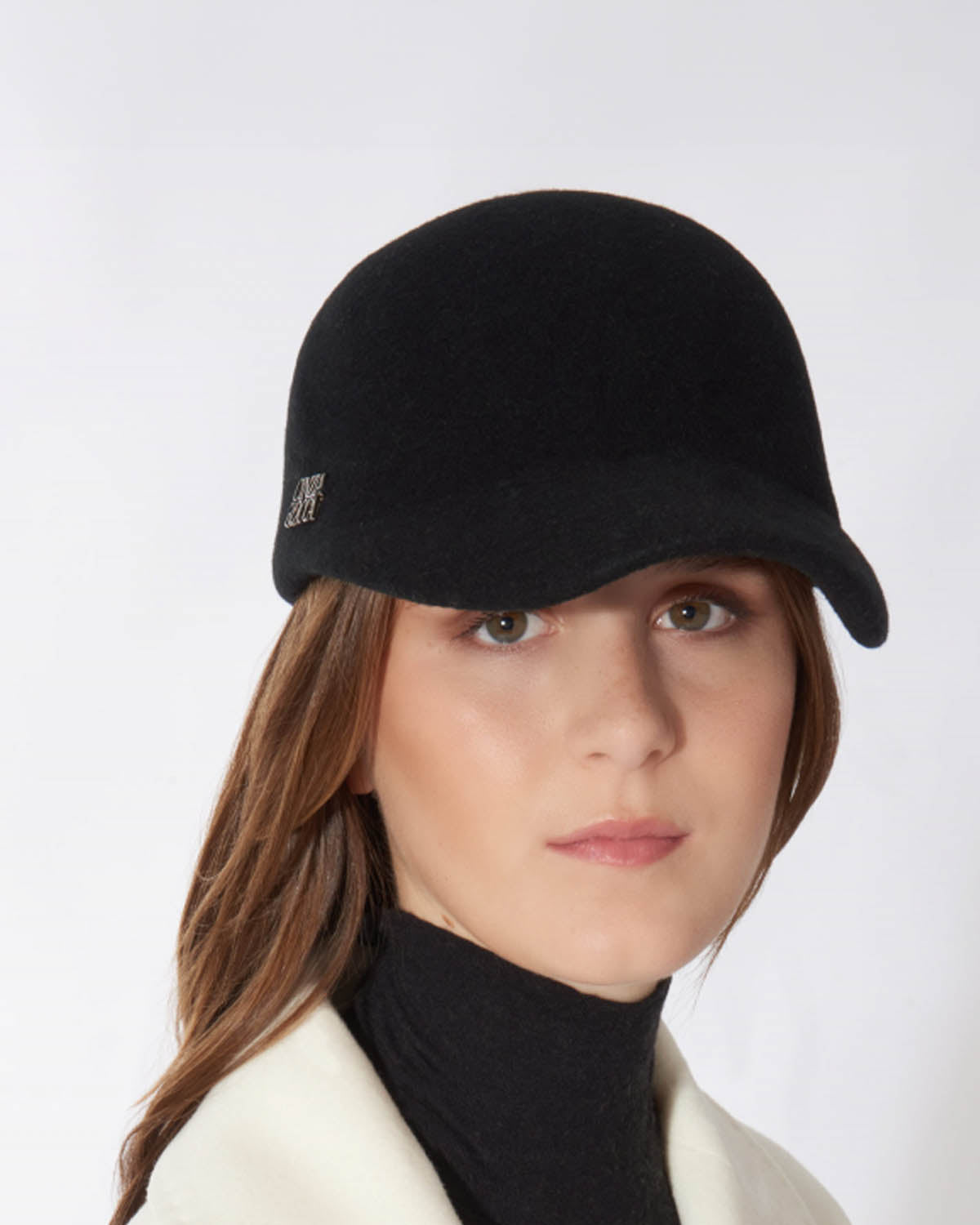Sort baseballhatt i ullfilt fra Cinzia Rocca.
