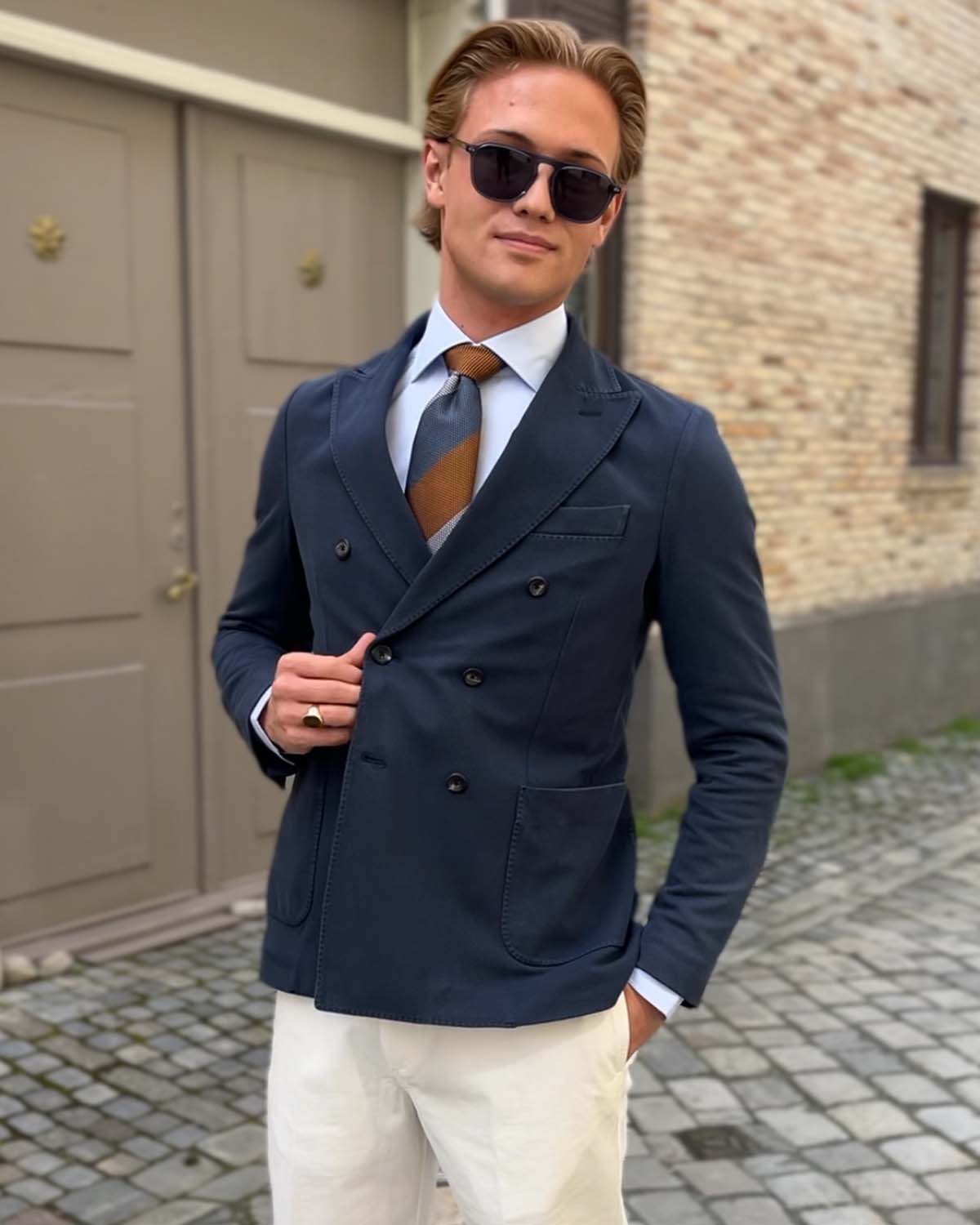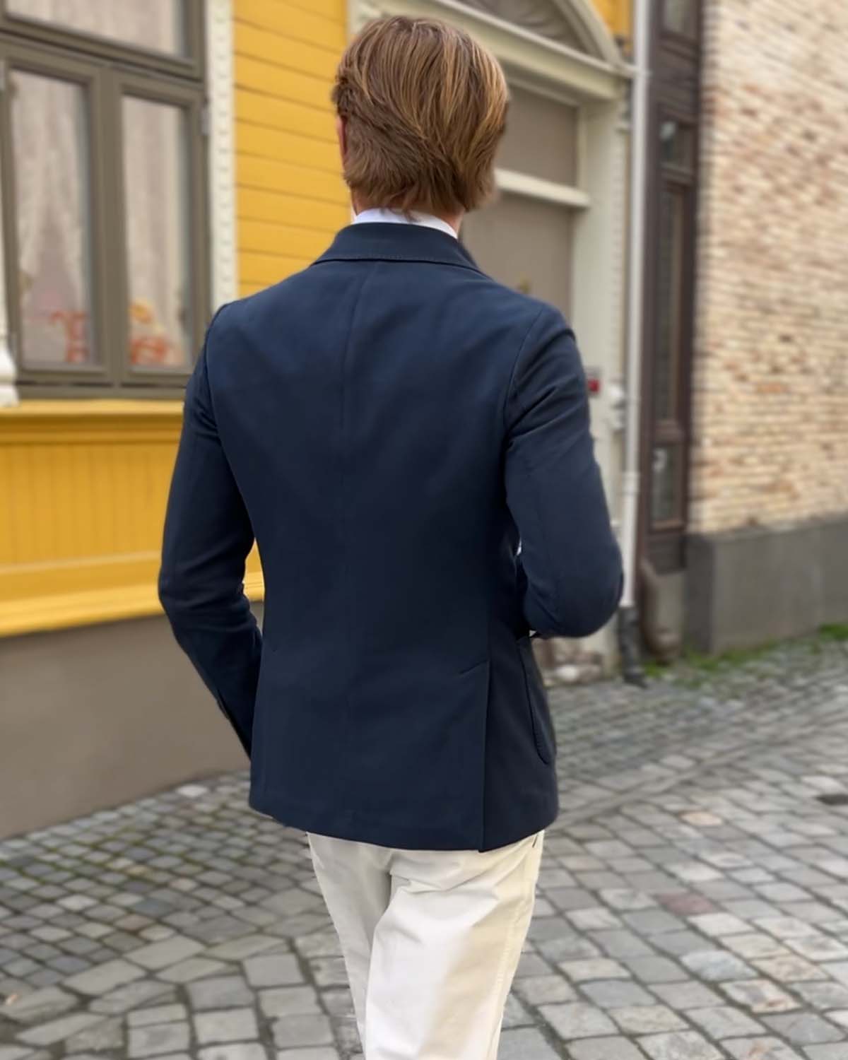 Casual dobbeltspent blazer fra Circolo i marineblå med spisse slag og to påsydde lommer.