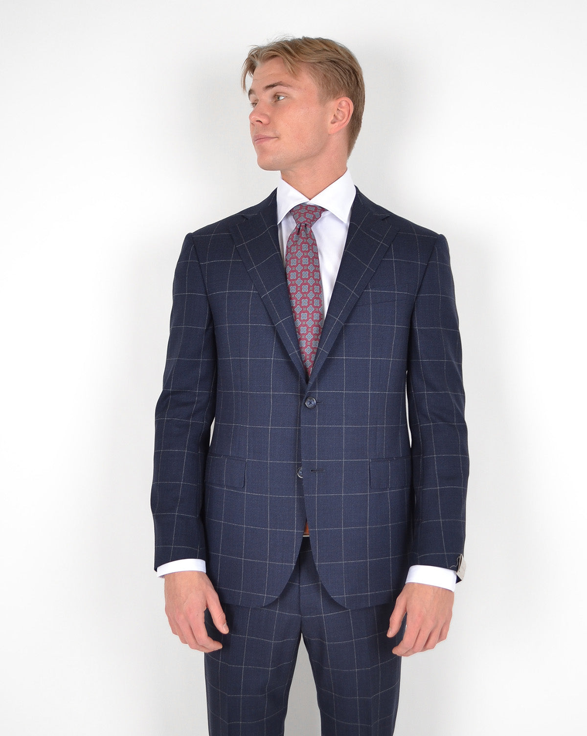 Stilren og elegant dress fra Corneliani med blå ruter. Dressen er laget i ren ullkvalitet med en klassisk passform.