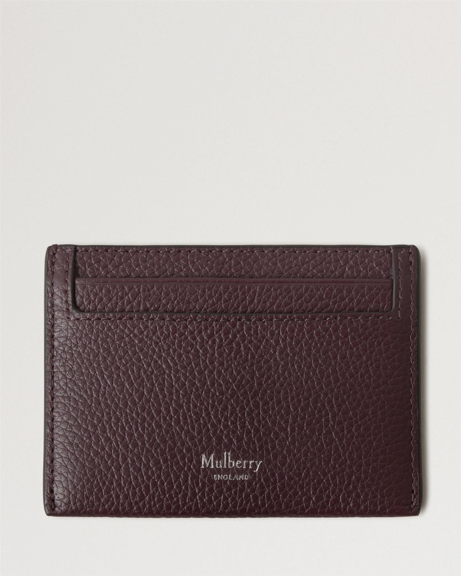 Continental Credit Card Slip Black Cherry fra Mulberry er en burgunder kortholder med sølvfargede logodetaljer. Lommeboken har fire rom til kort samt et rom i midten som er praktisk til sedler, kvitteringer.