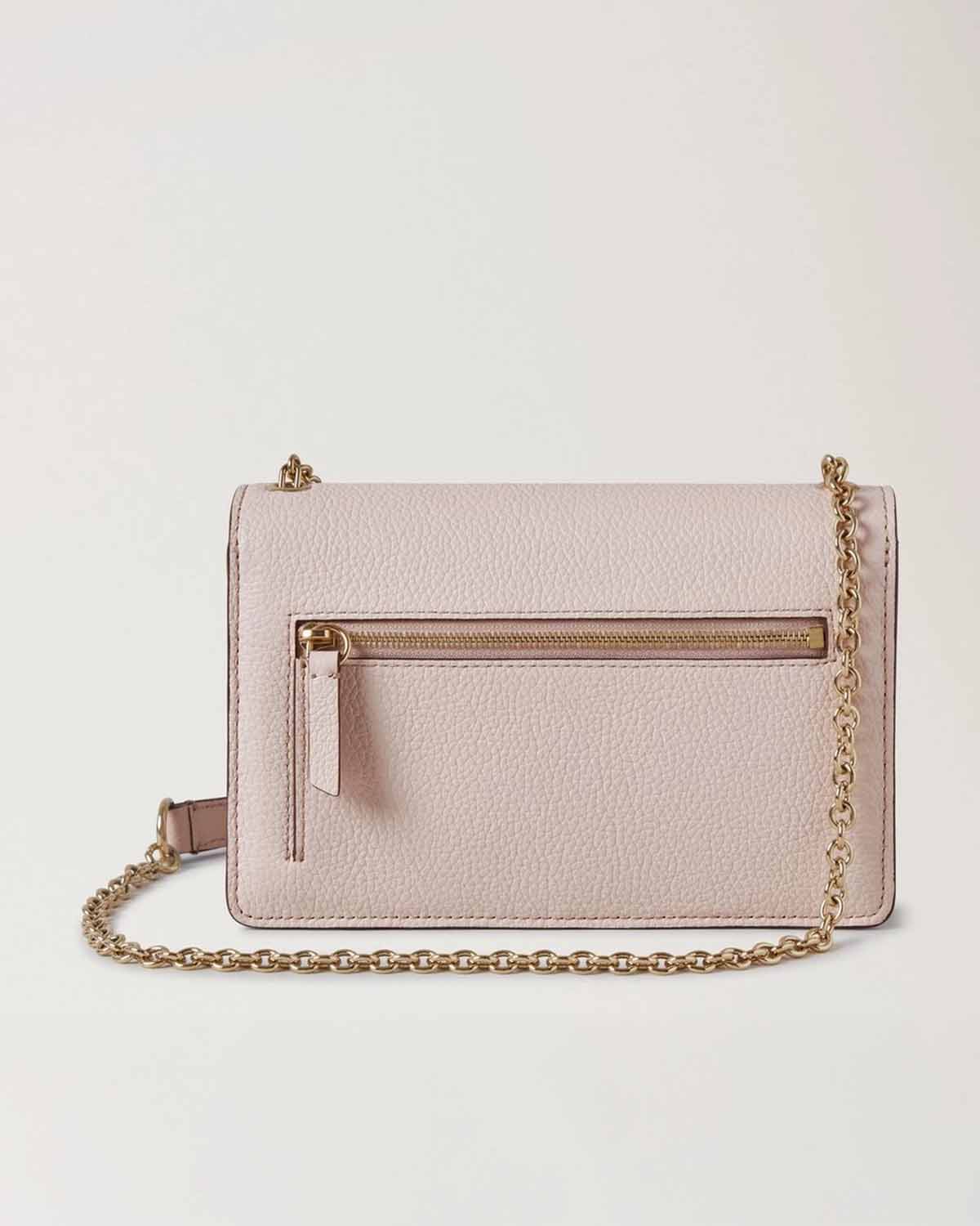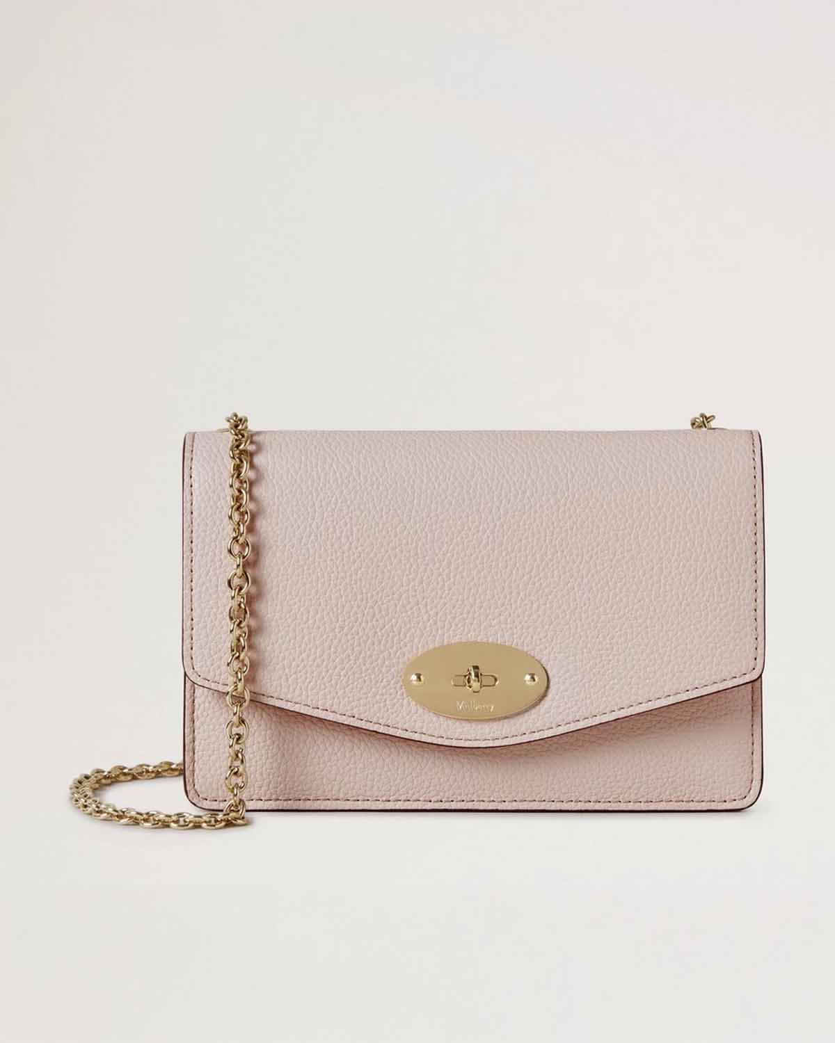 Small Darley i lys rosa er en klassisk veske som hyller deres ikoniske Postman's Lock. Den elegante konvoluttsilhuetten kan forvandles til en clutch takket være den avtakbare kjedereimen.