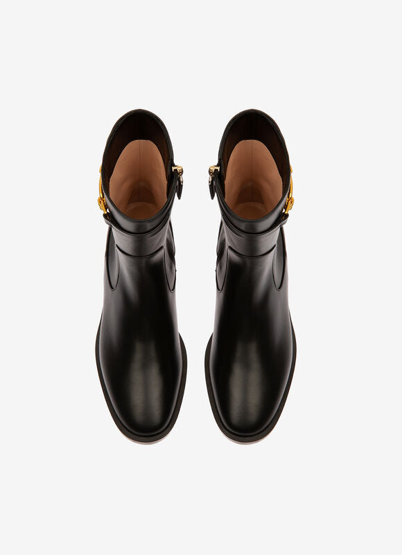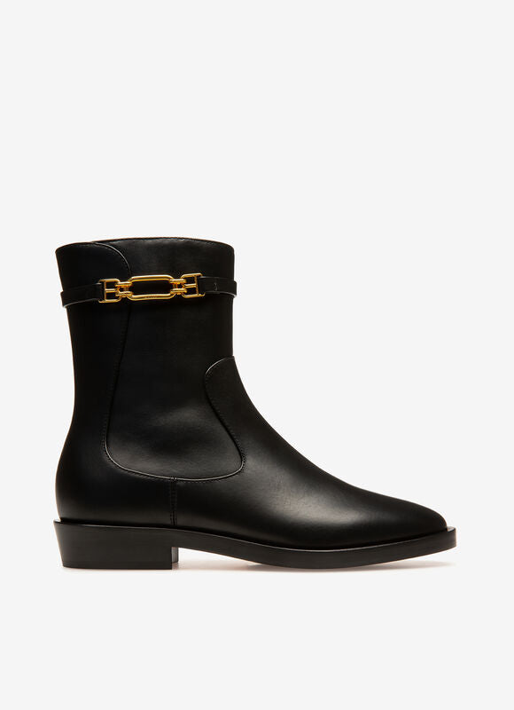 Dema Flat/00 fra Bally er en klassisk skolett i kalveskinn med 1851 Bally hardware-detaljen på skaftet.
