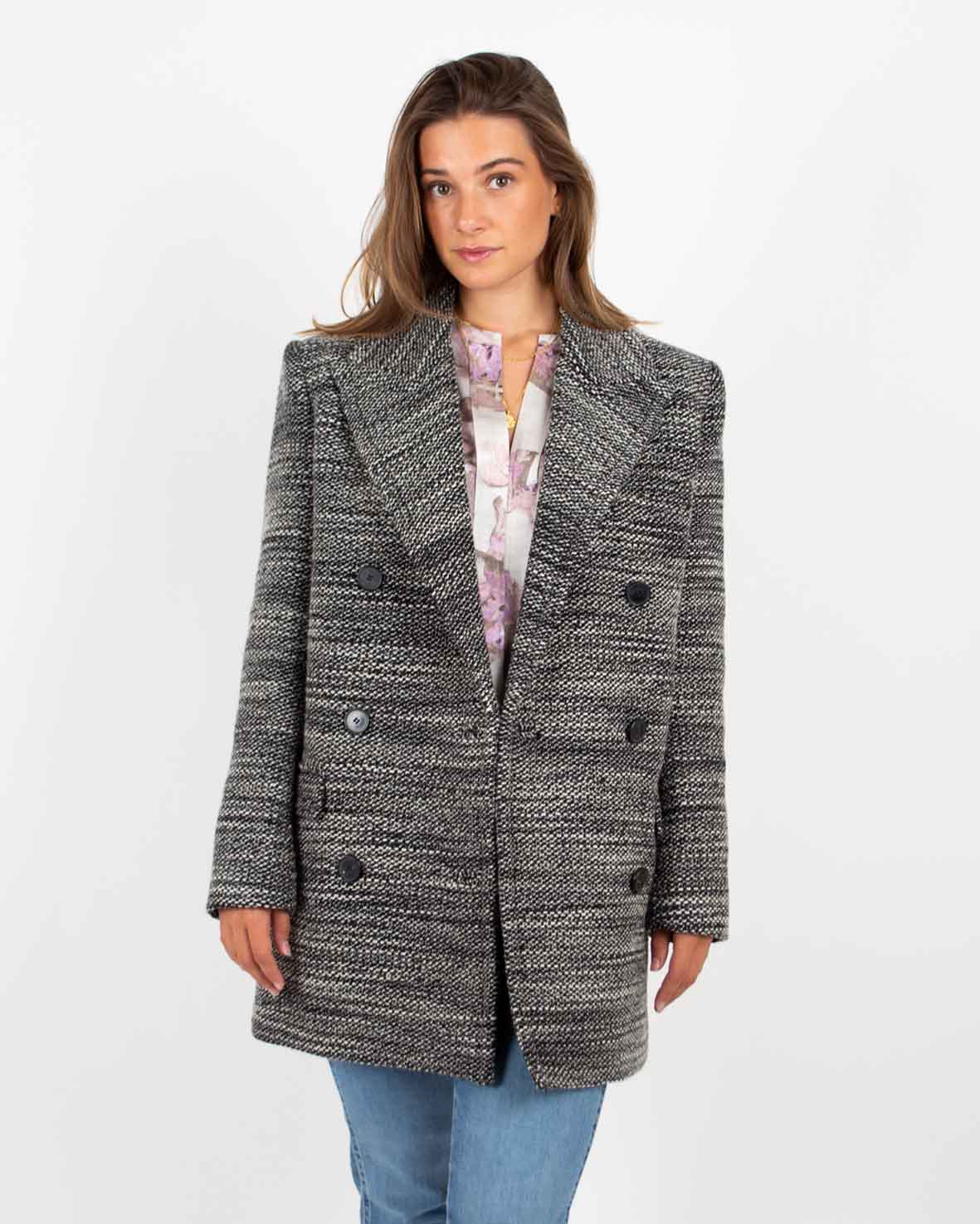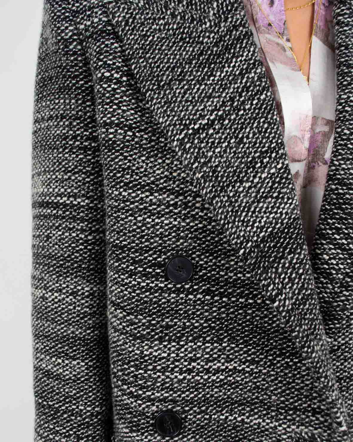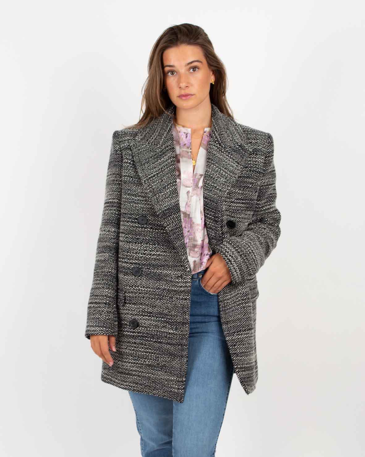 Lekker dobbeltspent jakke til dame fra Iro. Chamie Coat er en tøff jakke med en god lengde i svarte og hvite farger. Jakken er nydelig til en tidløs hverdagslook eller over en kjole.