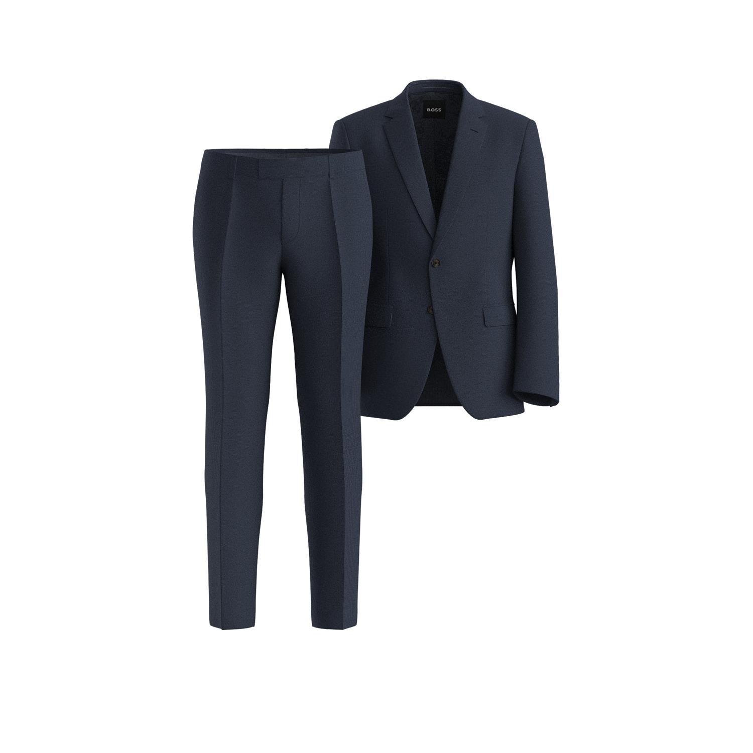 Denne navy dressen fra BOSS har en klassisk passform. Buksen er rett uten legg og jakken er en to knapps med klaff lomme.