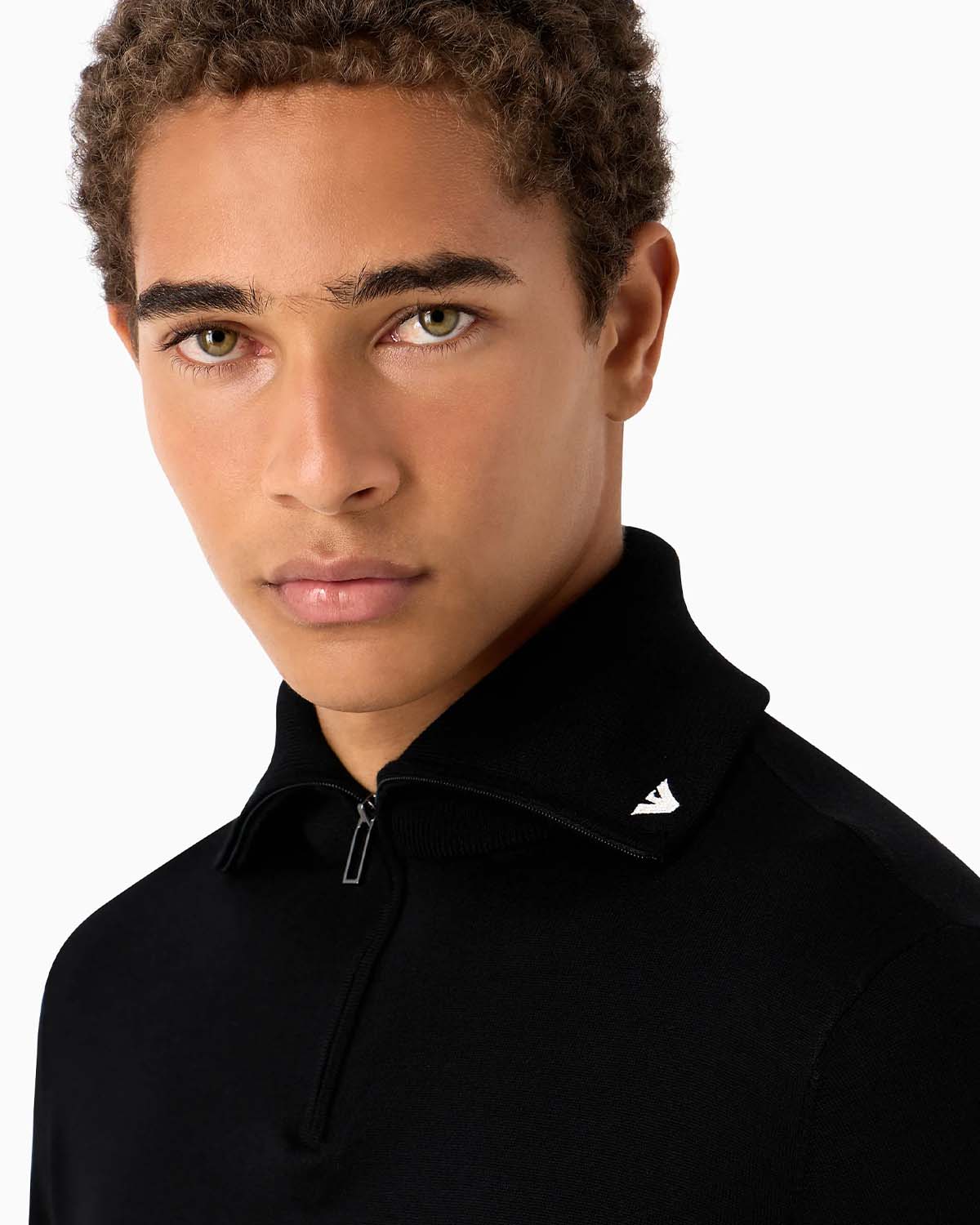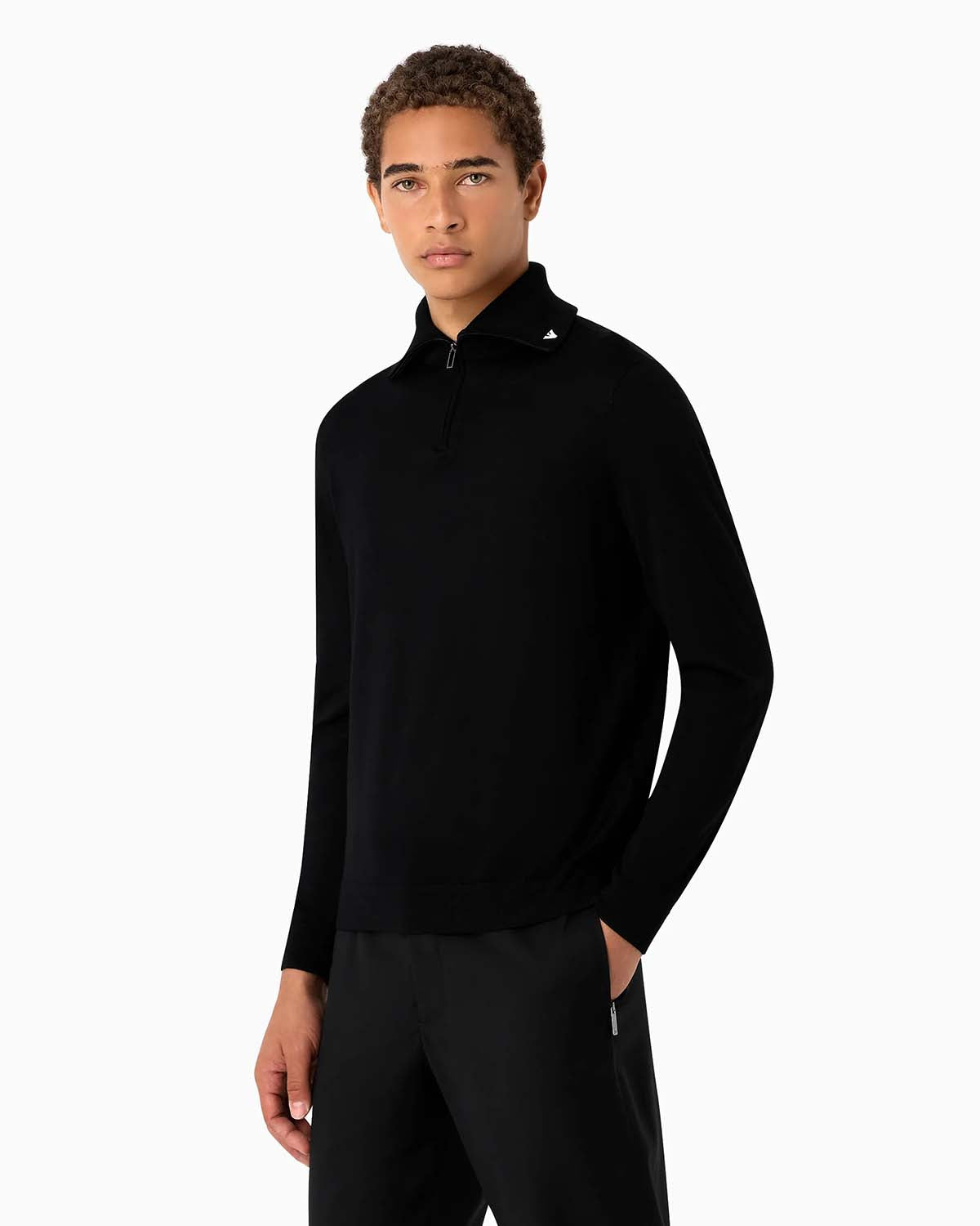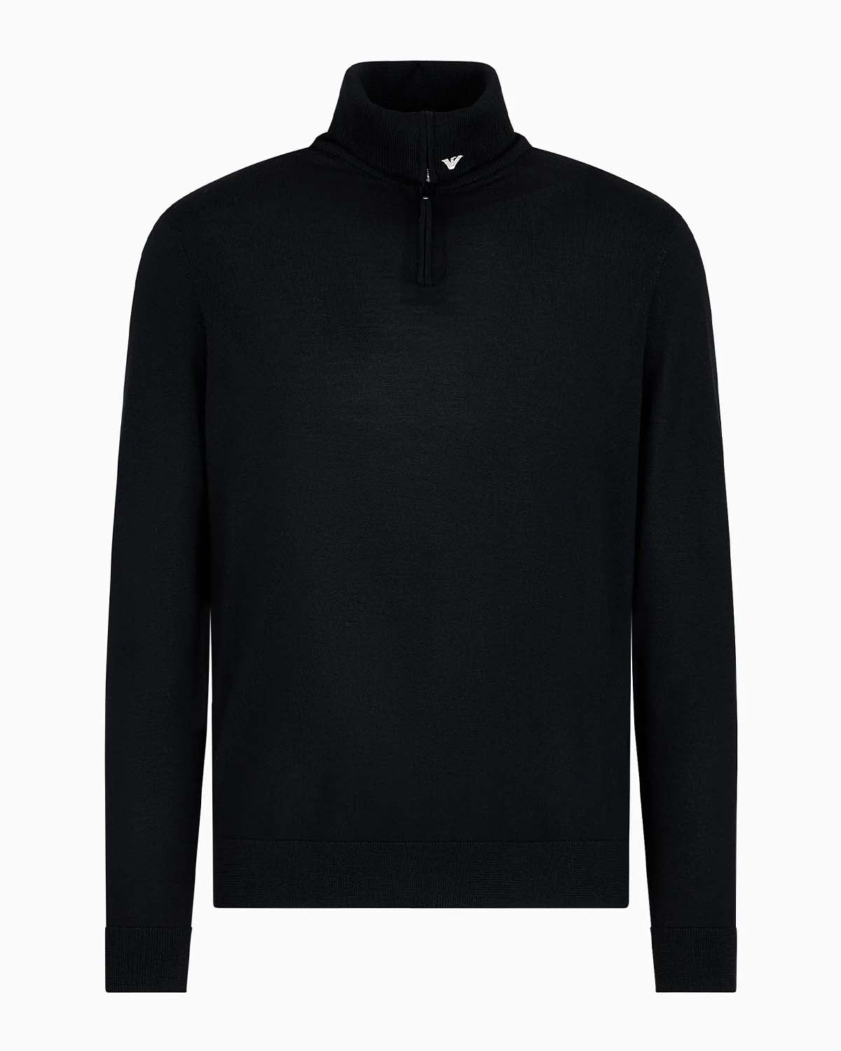 Genser laget av ensfarget ren virgin ull fra Emporio Armani. Knitted Pullover har mock-hals med glidelås, lange ermer, logobroderi og ribbestrikkede mansjetter og kant.