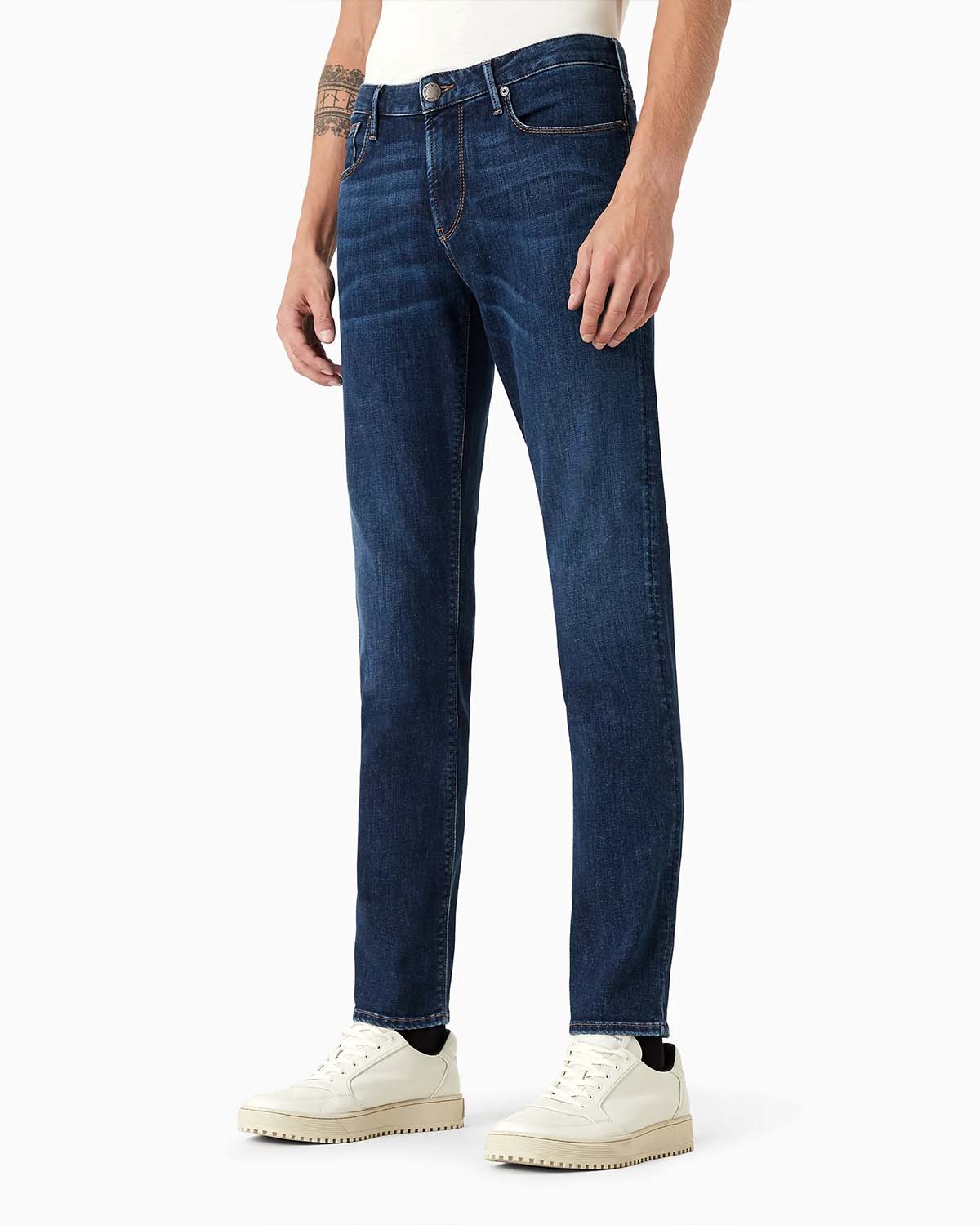 Disse slim fit-jeansene er laget av stretch-bomull-twill denim. De har også lav midje, smale ben og glidelås.