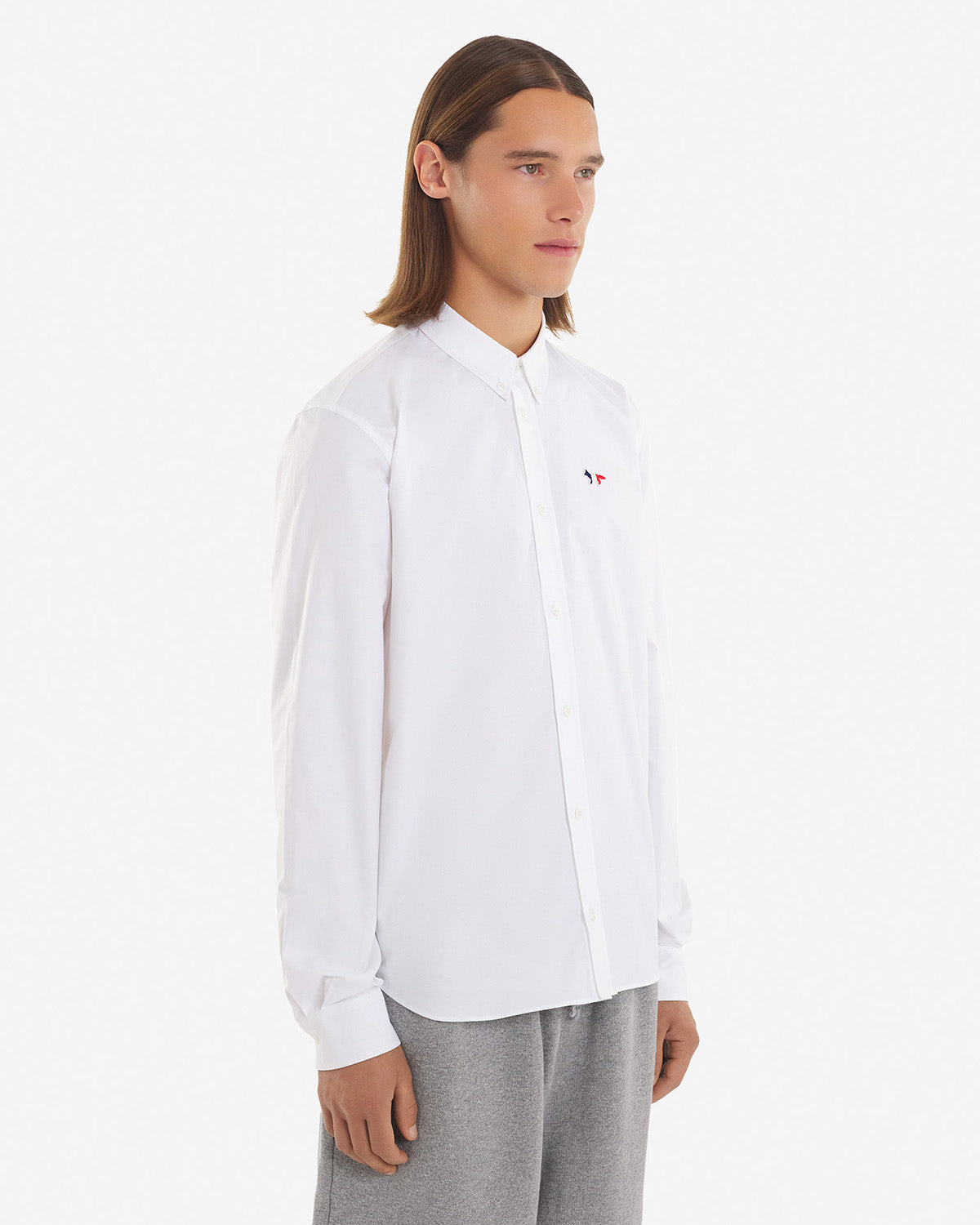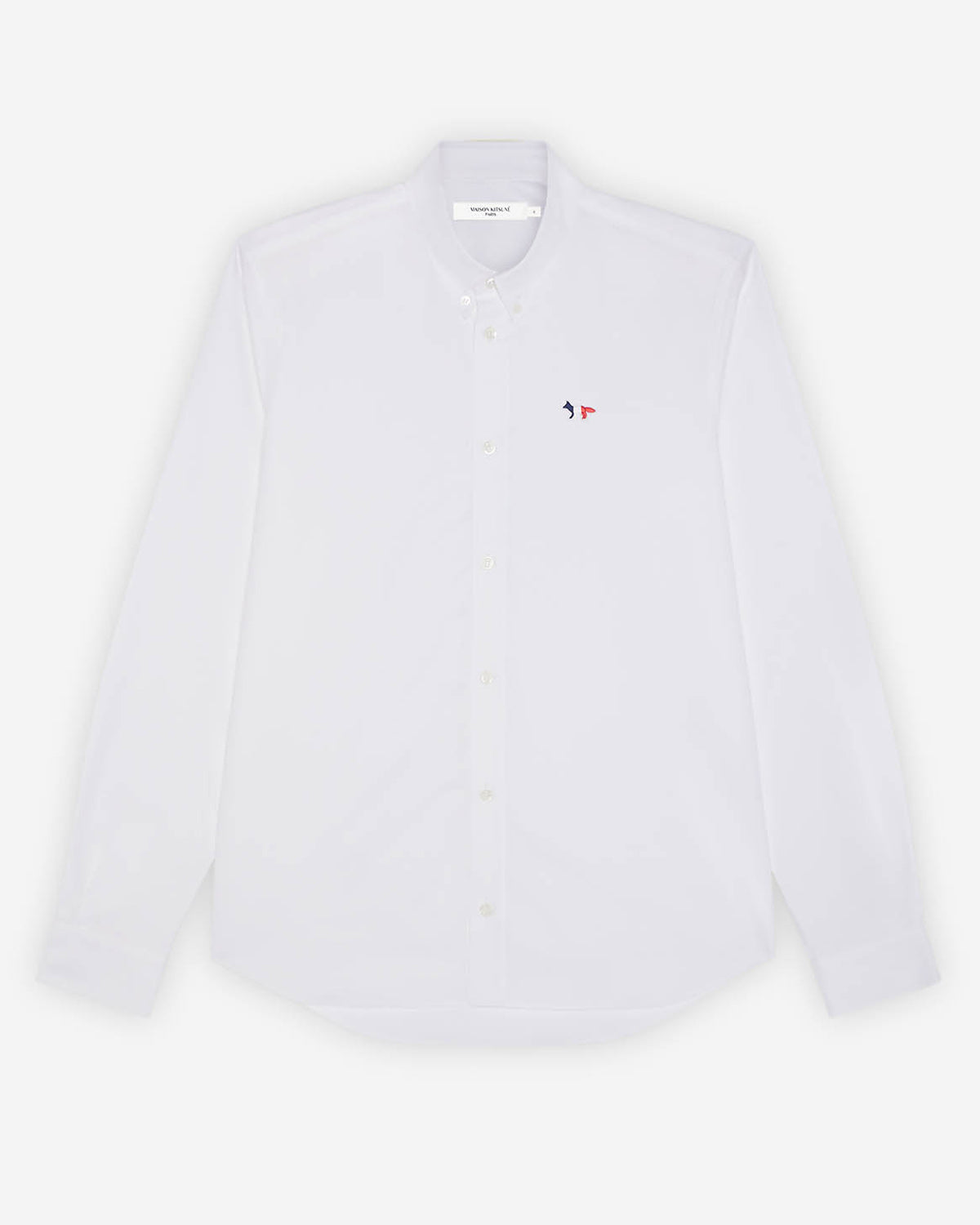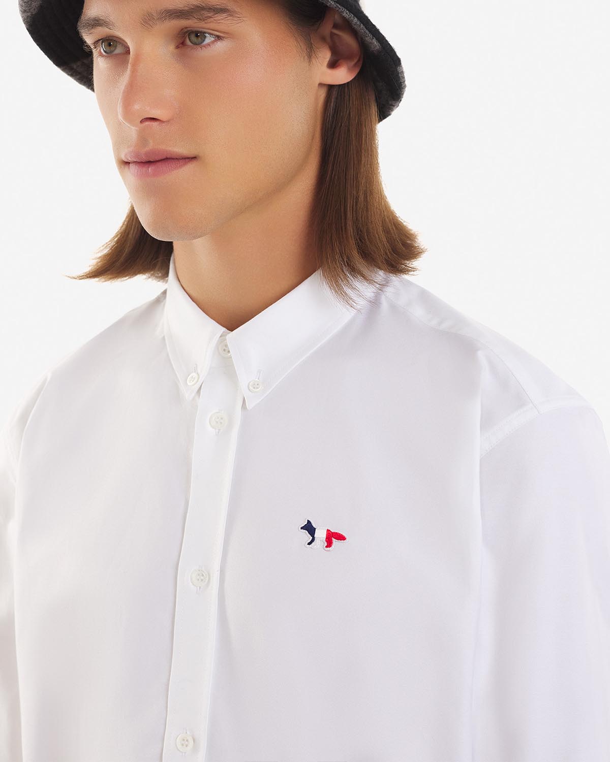 Hvit skjorte i bomullspoplin fra Maison Kitsuné. Tricolor Fox Patch Classic Shirt har button down-krage, knappelukking foran og fullføres med brodert Tricolor Fox-lapp på brystet.