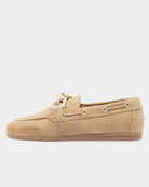 Daisy er en raffinert nytolkning av båtskoen, formet med en lavere profil og flat såle for å gjenspeile elegansen til en ballerinasko. Laget av premium LWG-sertifisert semsket skinn, har den håndsydde mock tådetaljer, firkantede skinnslisser tredd gjennom metallmaljer og en polstret hælkappe for ekstra komfort. Innsiden er fôret med Neotech for høy slitestyrke og varig fargefasthet, mens en slank yttersåle i termoplastisk gummi gir fleksibilitet og letthet. En moderne sommer-essensiell med en subtil feminin vri.