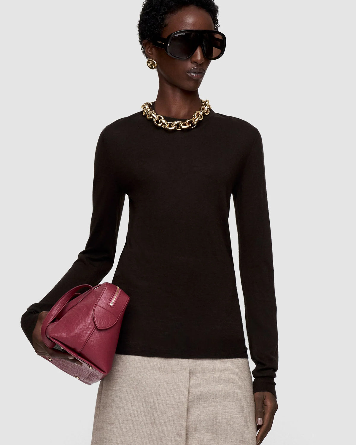 Cashair Round Neck Genser har en vanlig passform, laget av lett kasjmir. Denne JOSEPH signaturstrikken er myk, delikat og semitransparent, og har ribbestrikket hals, fald og mansjetter.