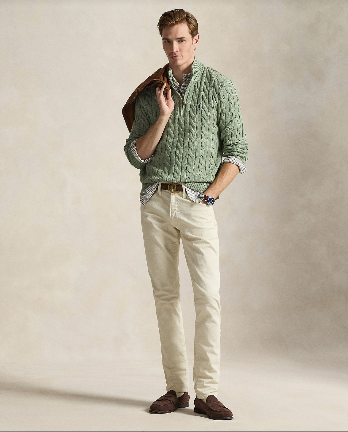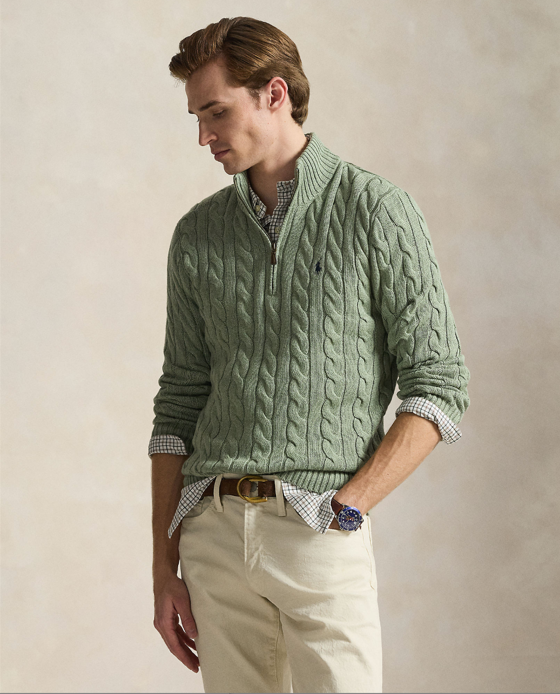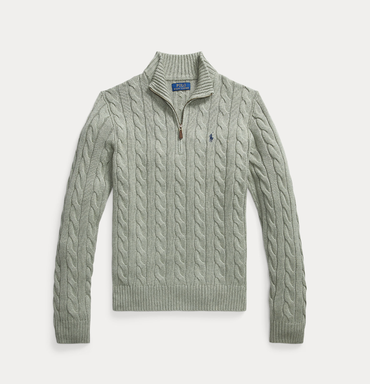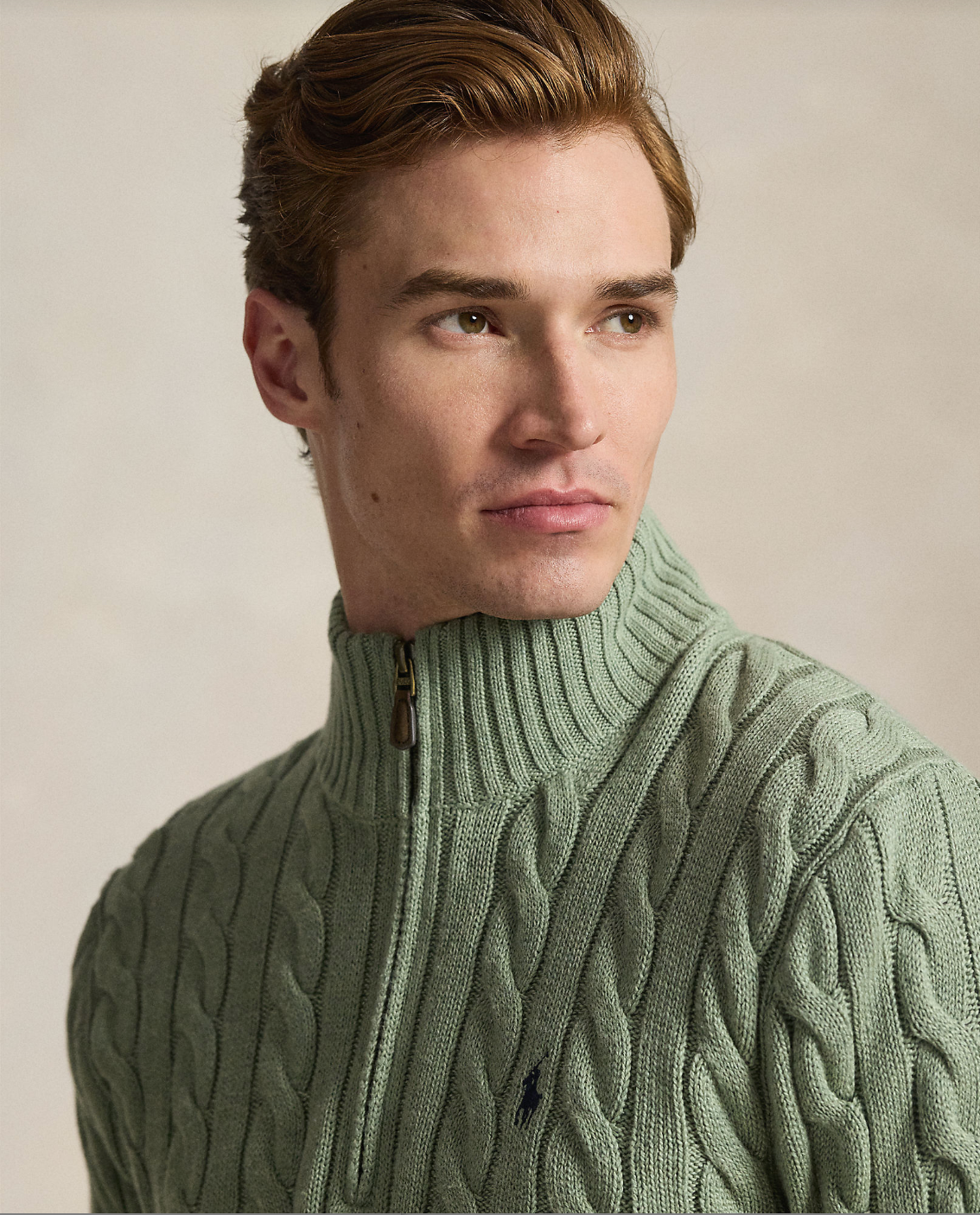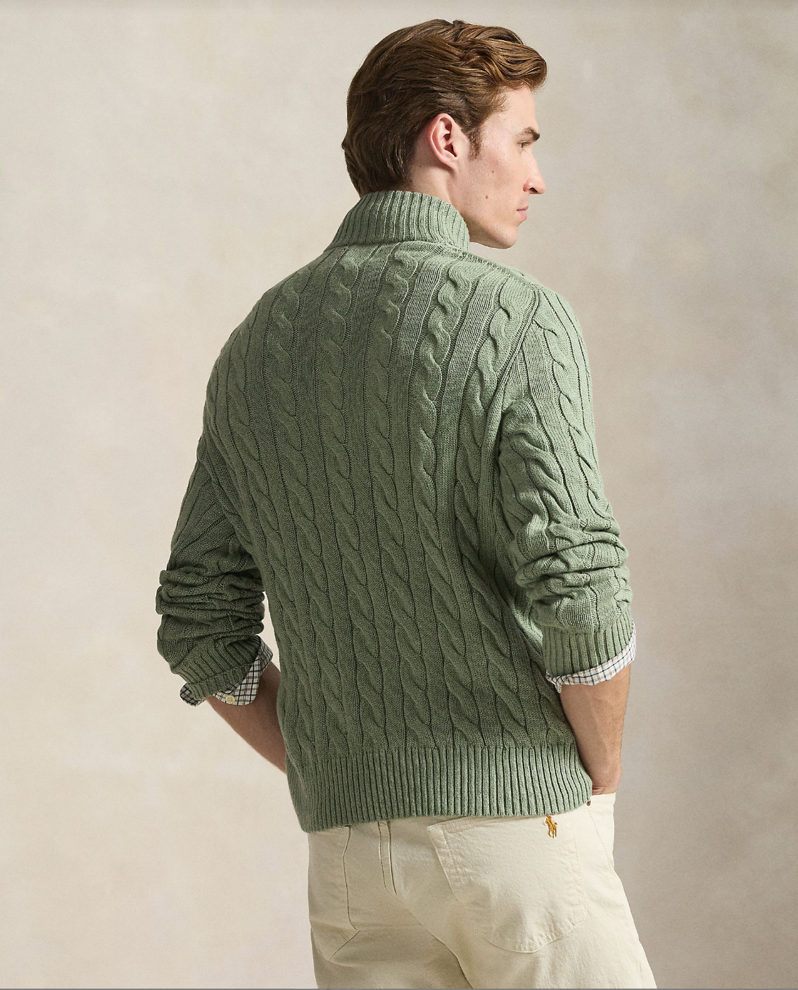 CABLE-KNIT COTTON QUARTER-ZIP SWEATER