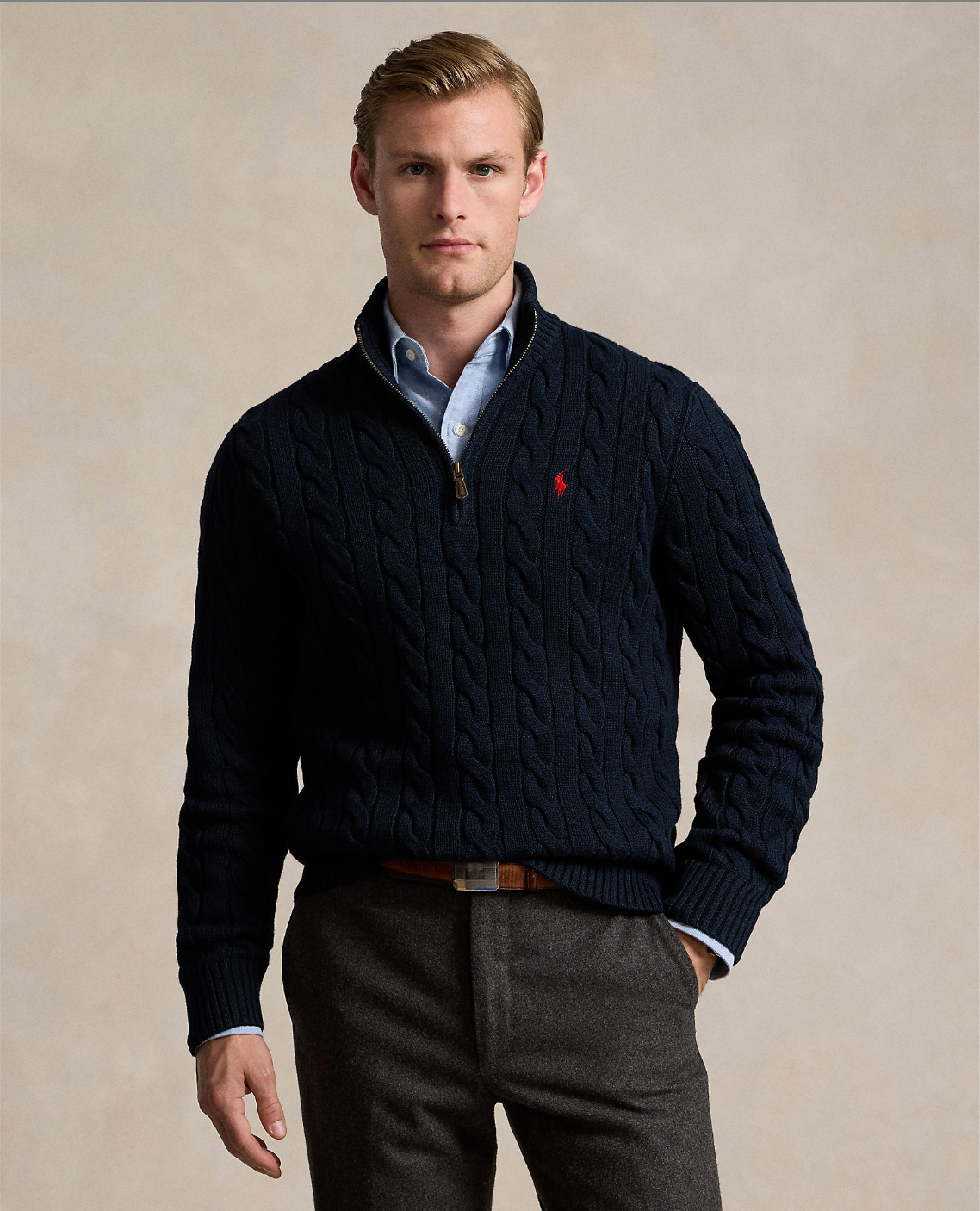 CABLE-KNIT COTTON QUARTER-ZIP SWEATER