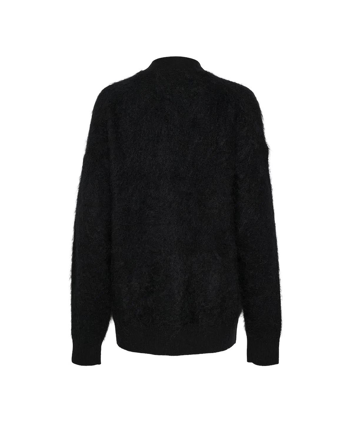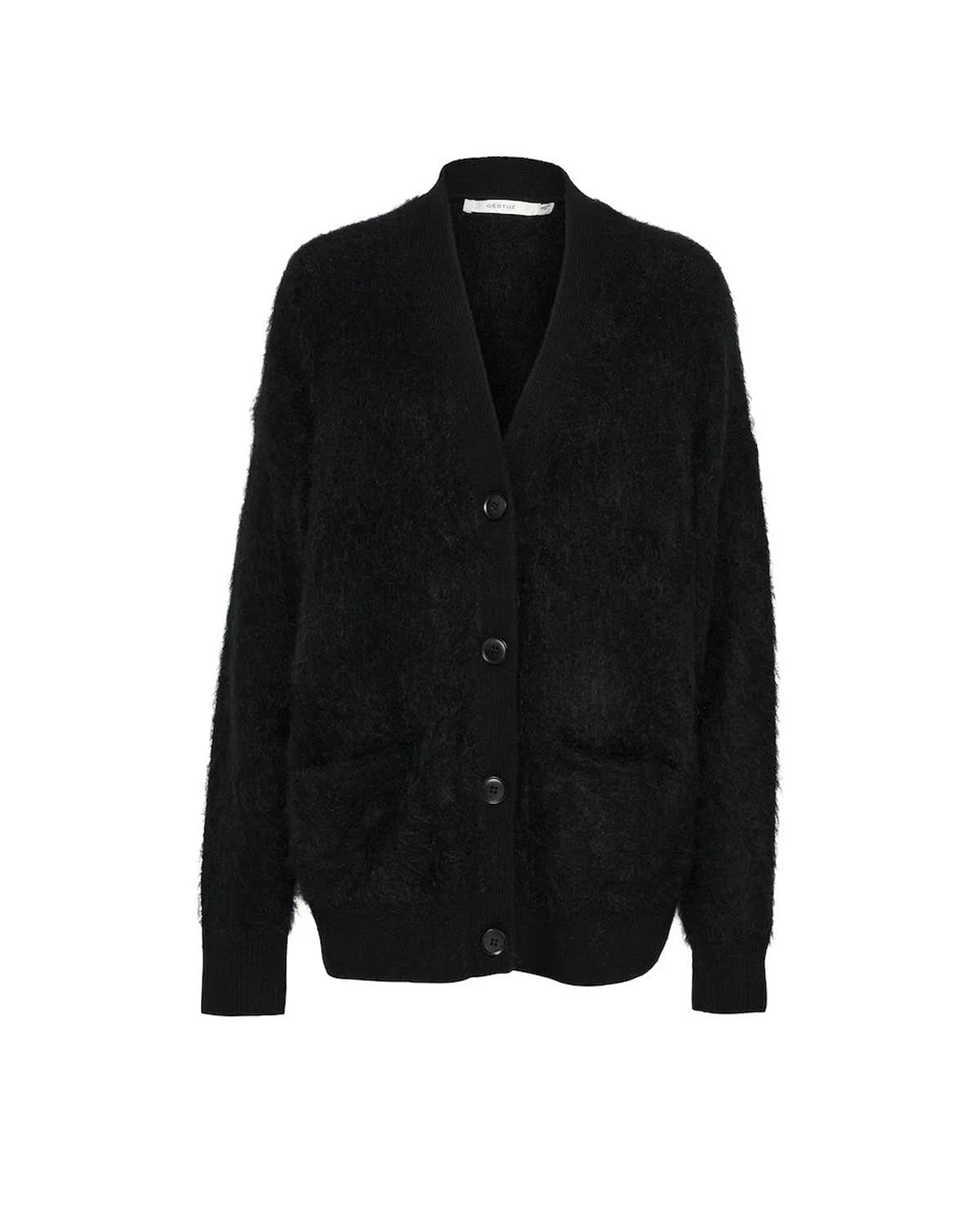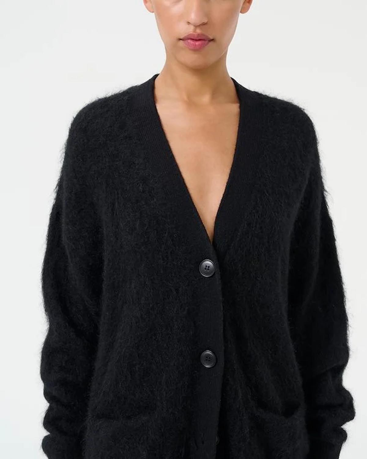 Sort, loose fit cardigan fra Gestuz i en blanding av mohair og ull.