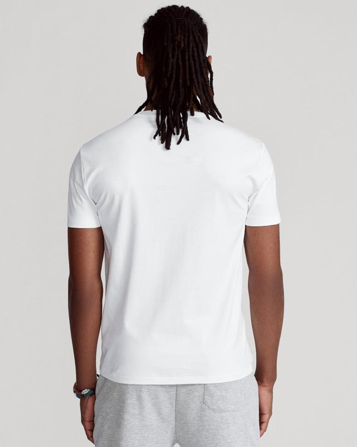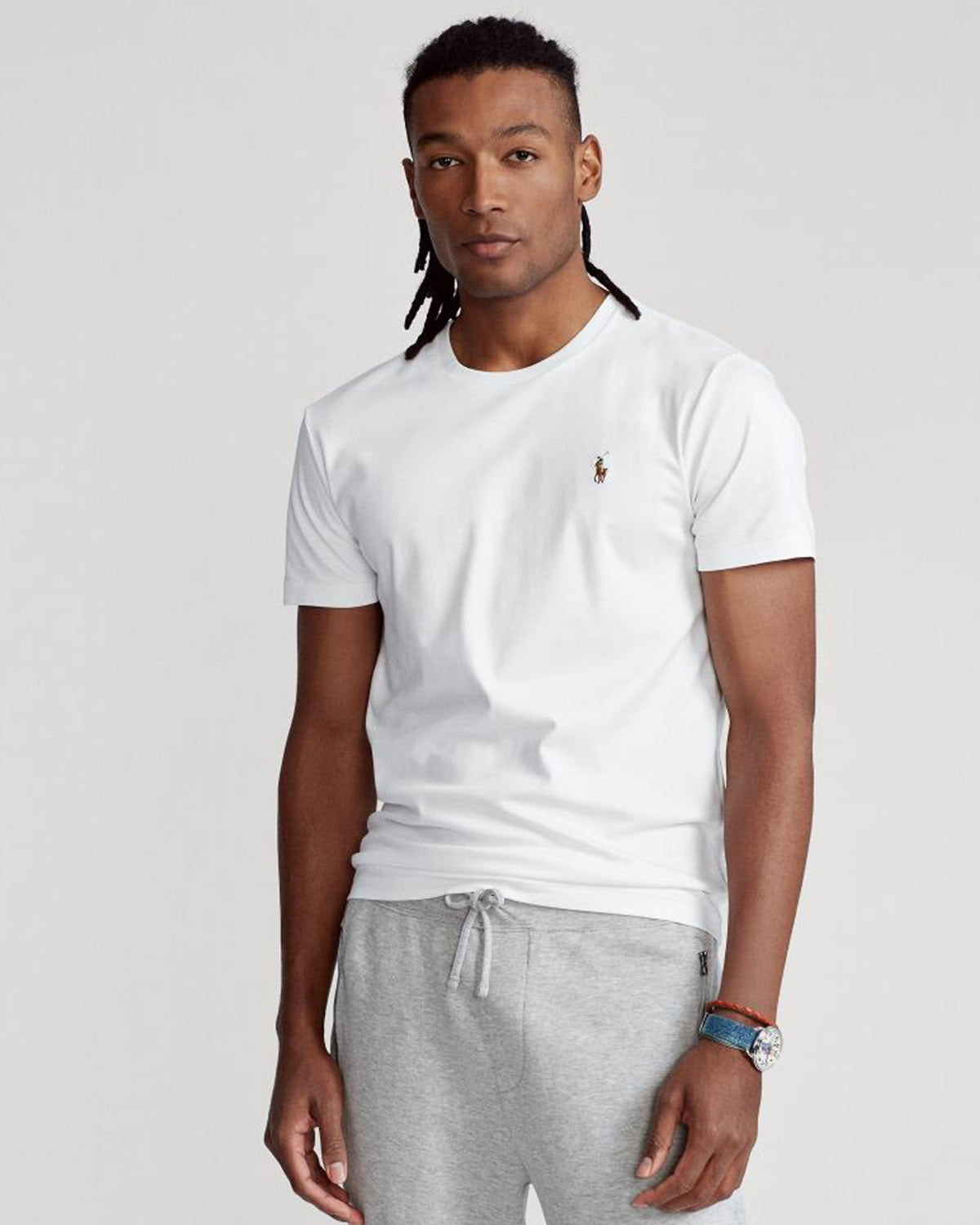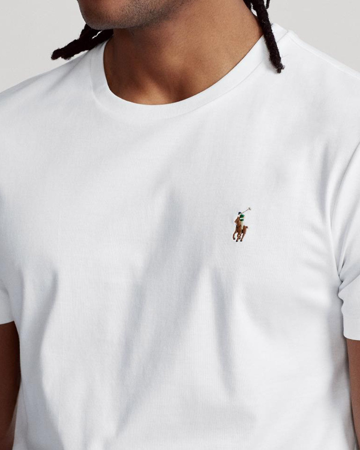 Hvit t-skjorte fra Polo Ralph Lauren laget i ultramyk bomull. Custom Fit Soft Cotton Tee har den velkjente polospilleren brodert på brystet.