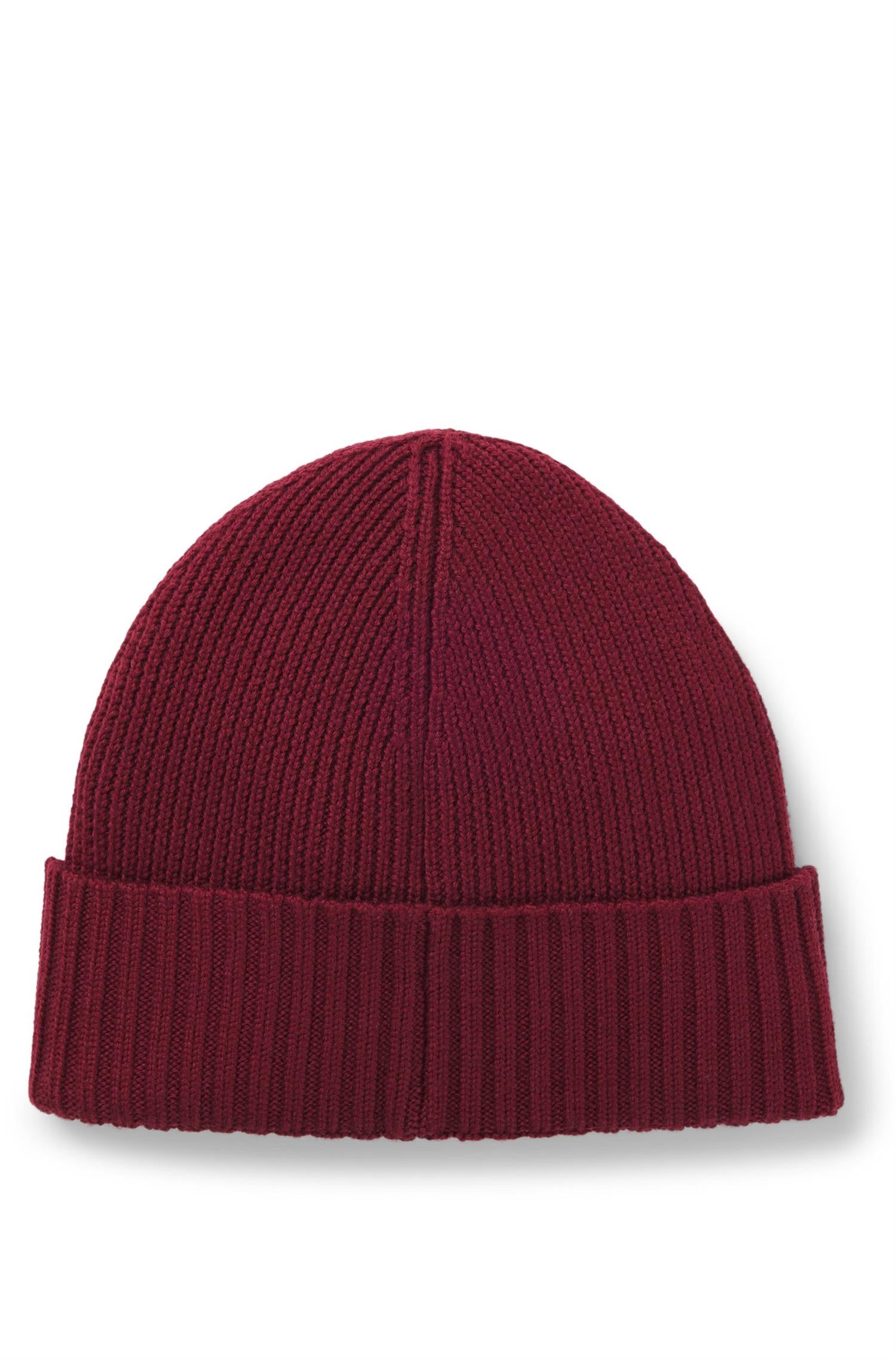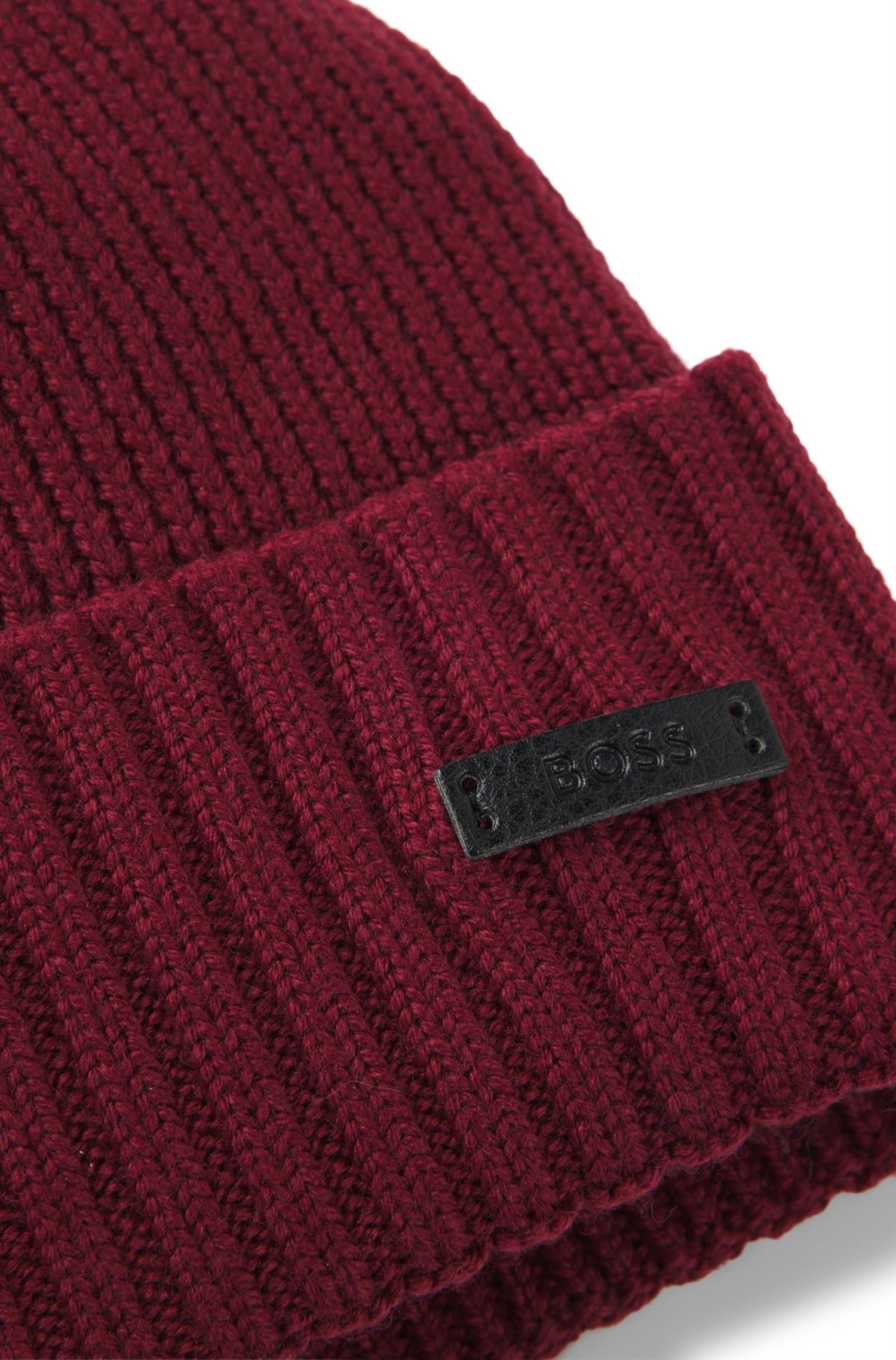 Lue med logoetikett i syntetisk belagt stoff fra BOSS. Denne luen er strikket med ribbestruktur i mykt garn. Syntetisk belagt stoff, noen ganger referert til som kunstskinn, er et stoff designet for å ligne ekte lær, og/eller vise et matt, blankt, glatt eller teksturert, belagt utseende.