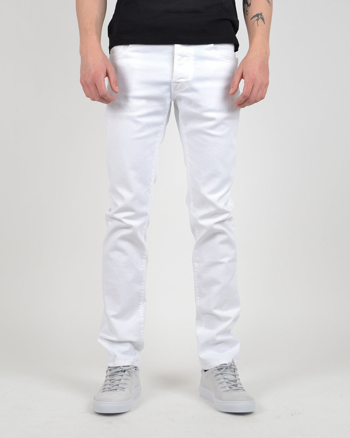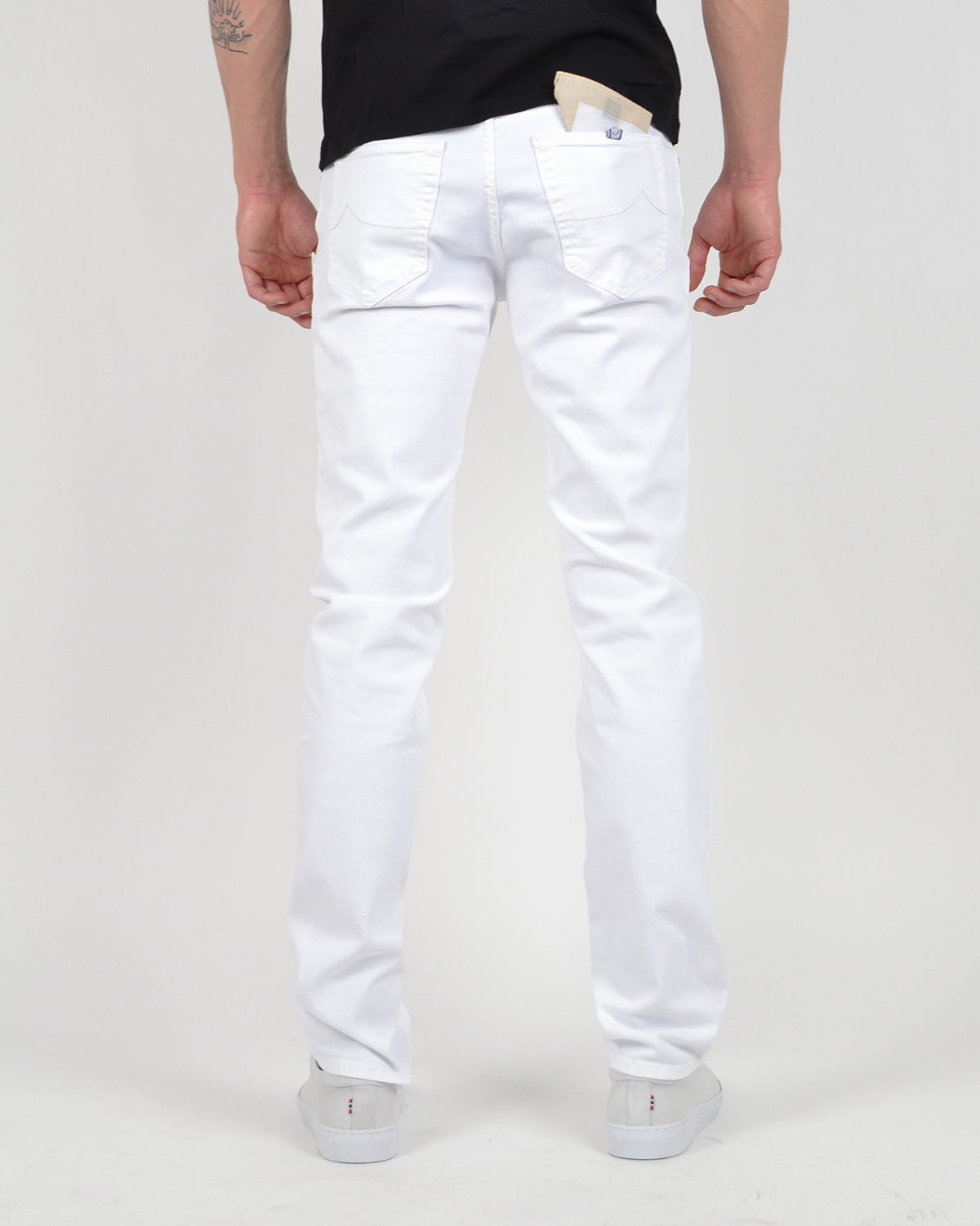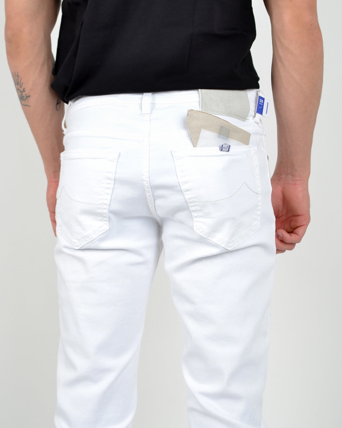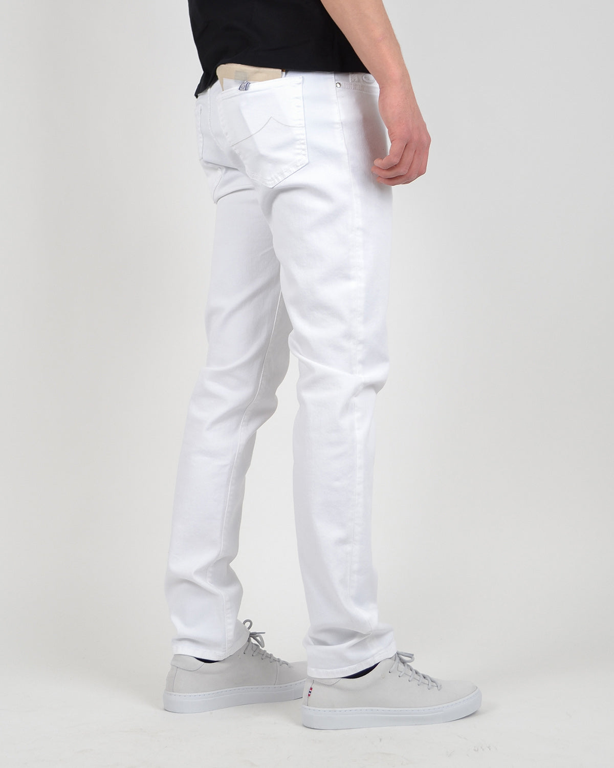 Bukse med fem lommer, smal passform og lav midje fra Jacob Cohën. Bard er produsert i bomullskvalitet med stretch. Kommer med kontrasterende skinnpatch med hestehår og broderi bak på linningen.