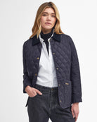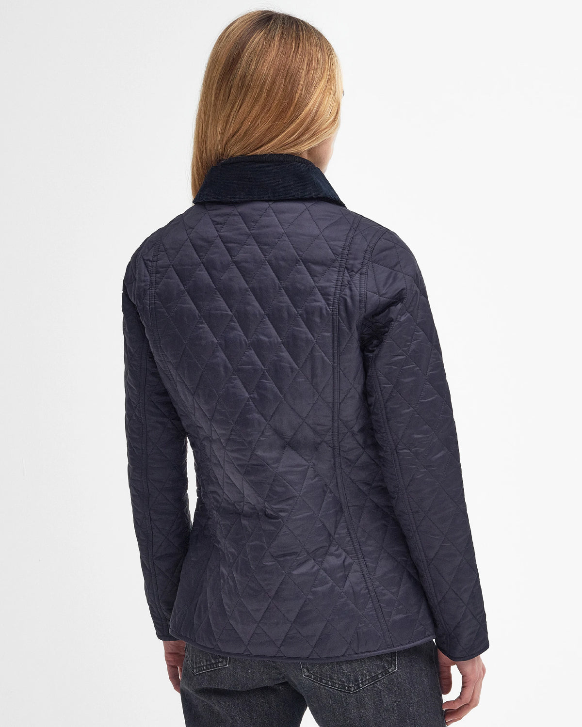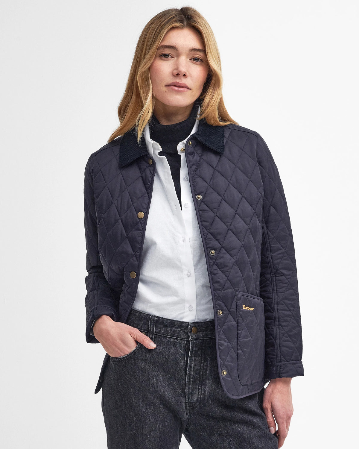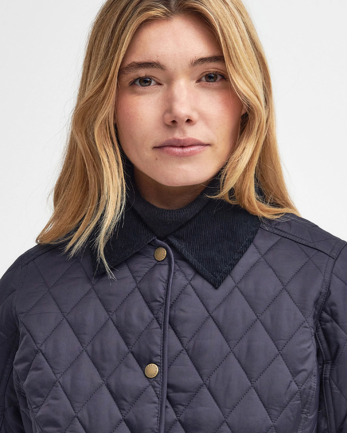 Denne stilige quiltede damejakken er designet med flatterende sømmer for en vakkert feminin silhuett. Den sit-down snørekragen og det diamantkviltede ytterstoffet skaper Barbours signaturutseende.