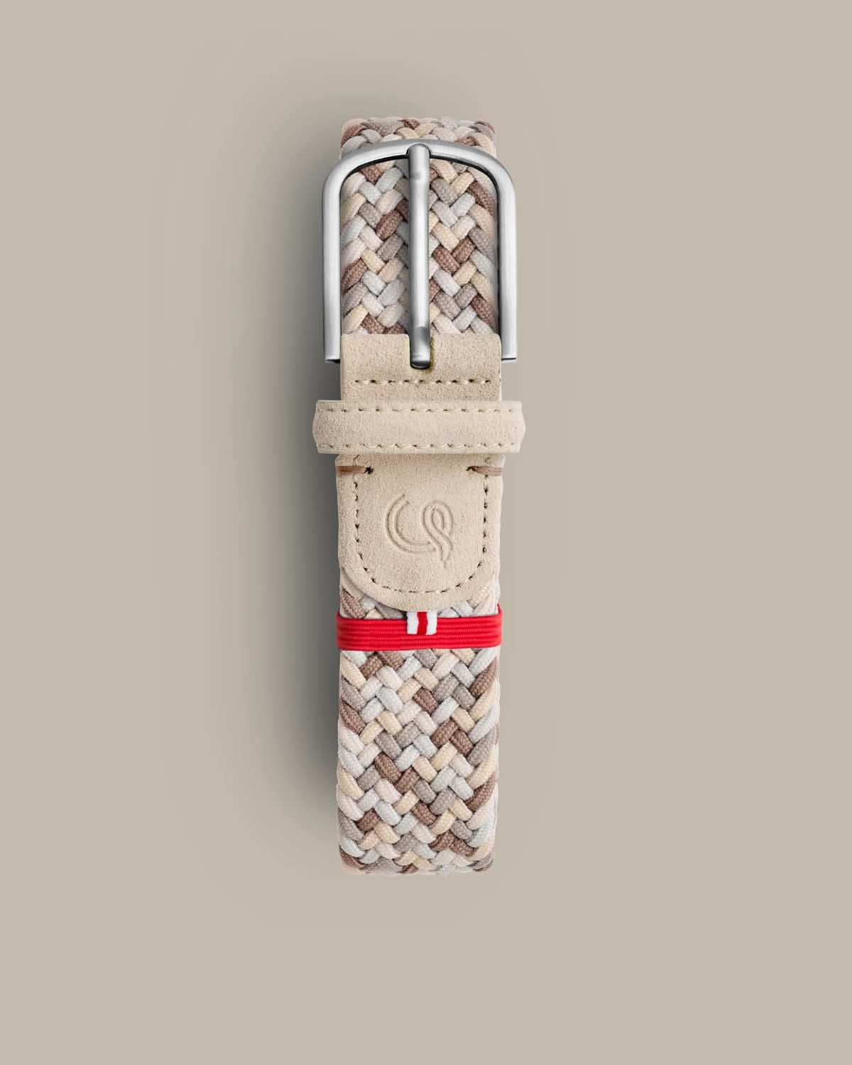 Santa Monica-beltet, laget av semsket skinn og flettet i en blanding av beige.