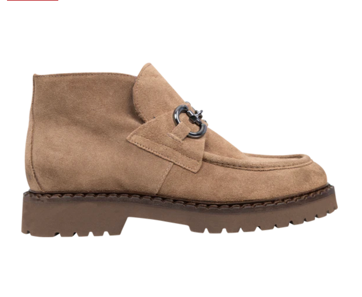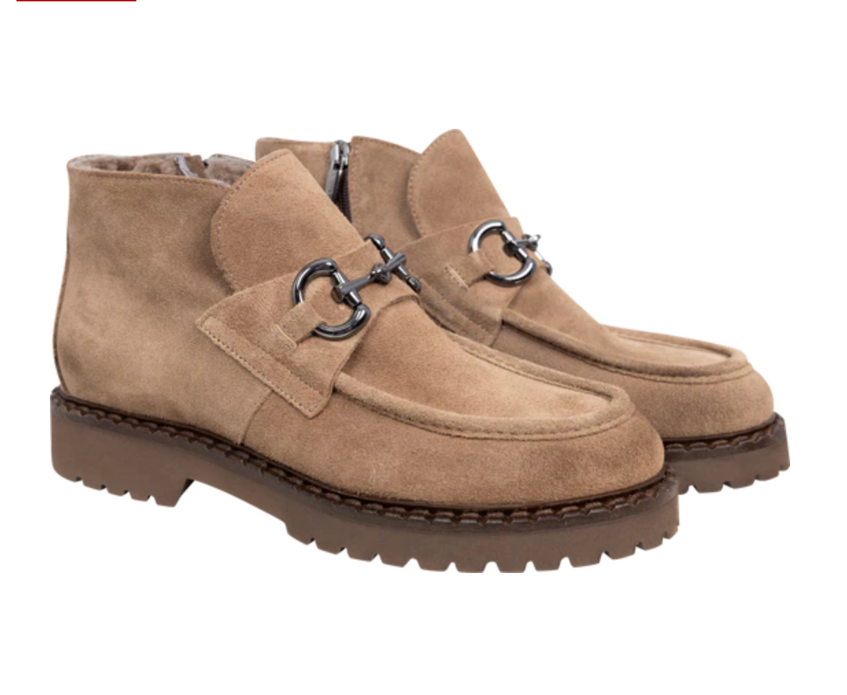 Høye loafers med skinn innvendig og glidelåslukking på innsiden. Skoenen har er i luksuriøst semsket skinn med en chunky og moderne silhuett. Den robuste sålen gir et kraftig uttrykk og godt grep, mens metallspennen foran tilfører et sofistikert preg. En sko som skiller seg ut og gir et edgy løft til ethvert antrekk.