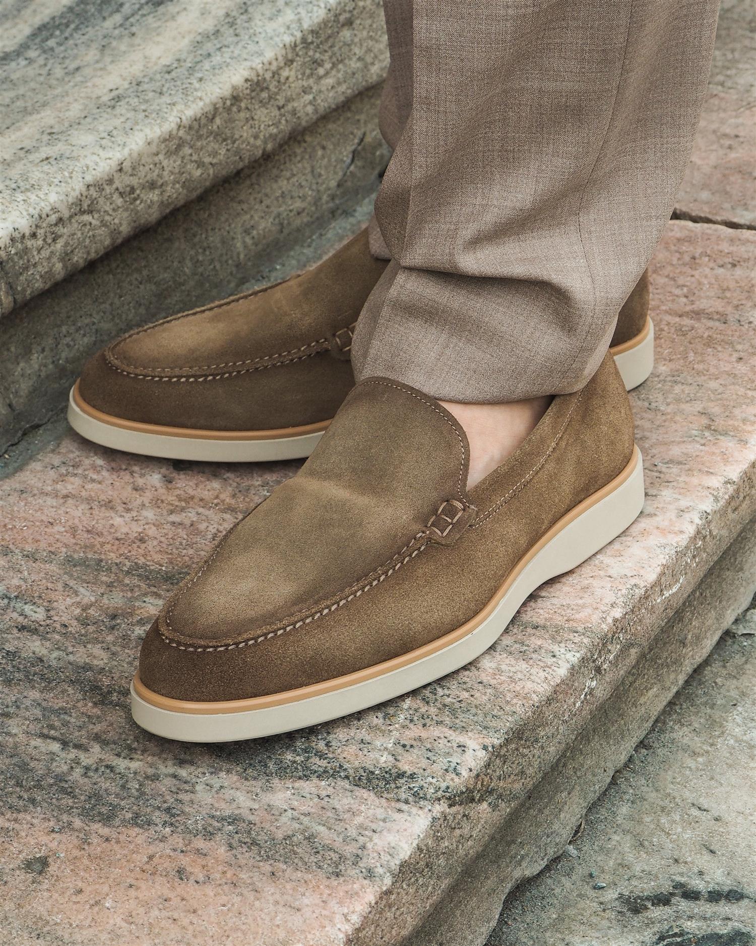 Brune loafers i semsket skinn fra Magnanni. Perfekt å kombinere med en beige blazer for et elegant, men avslappet sommerantrekk, eller for å piffe opp et par lyseblå jeans.
